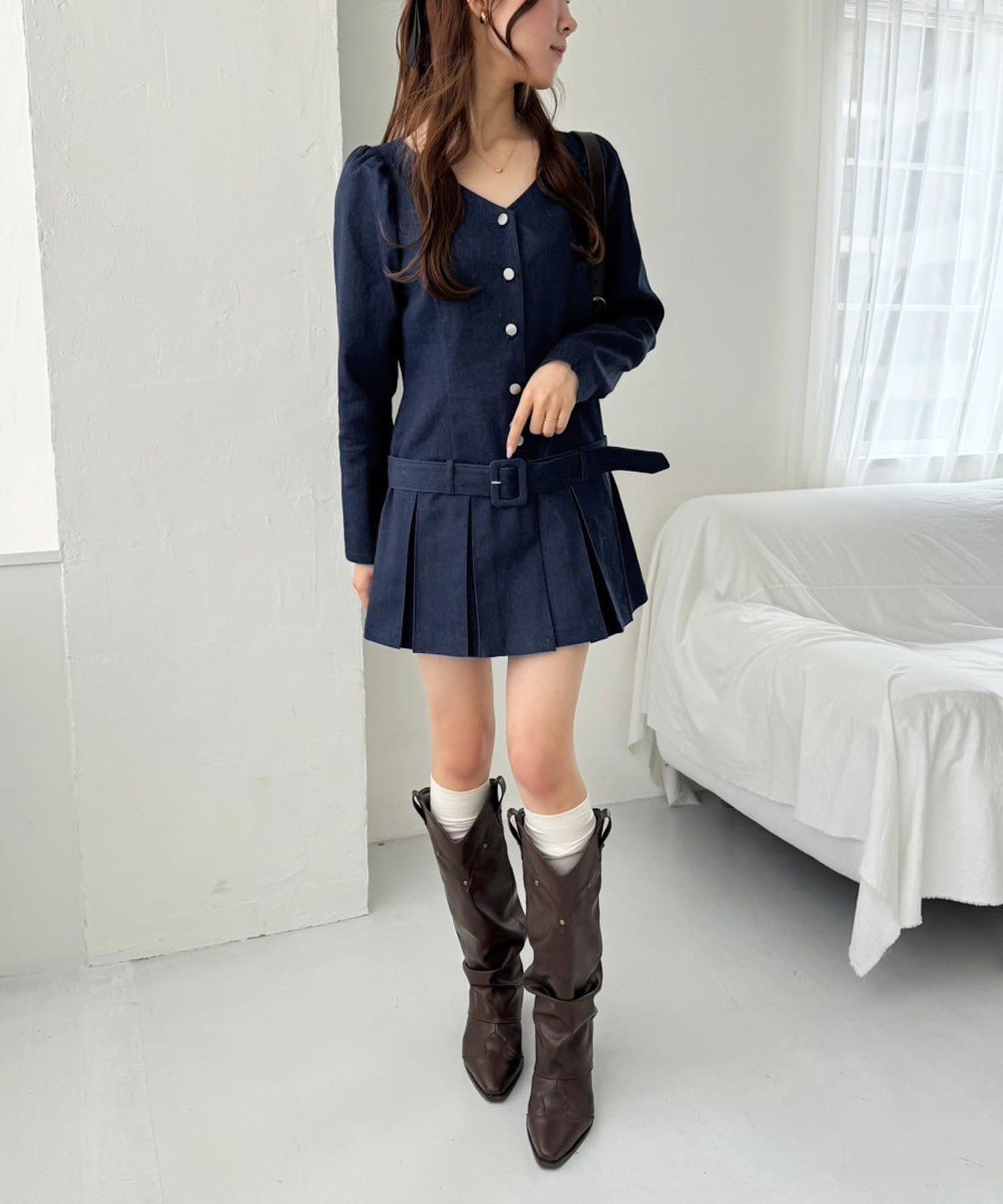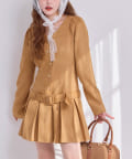 ウエストラインは程よくフィットし、裾はプリーツでゆるやかなAラインシルエットに。