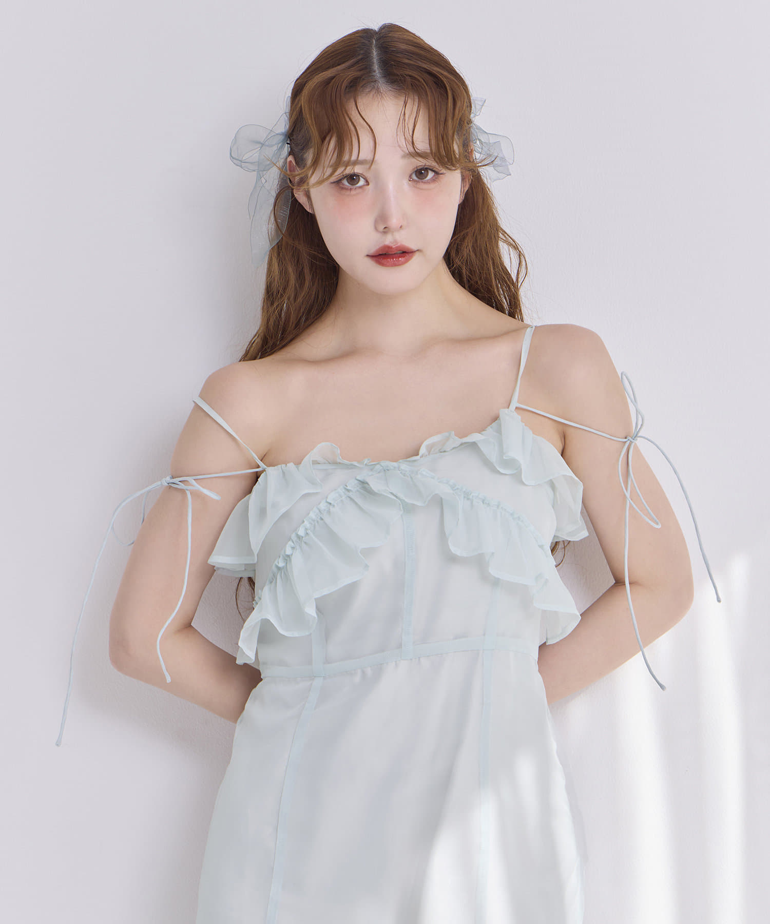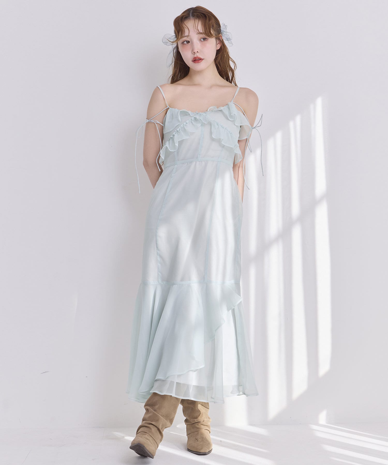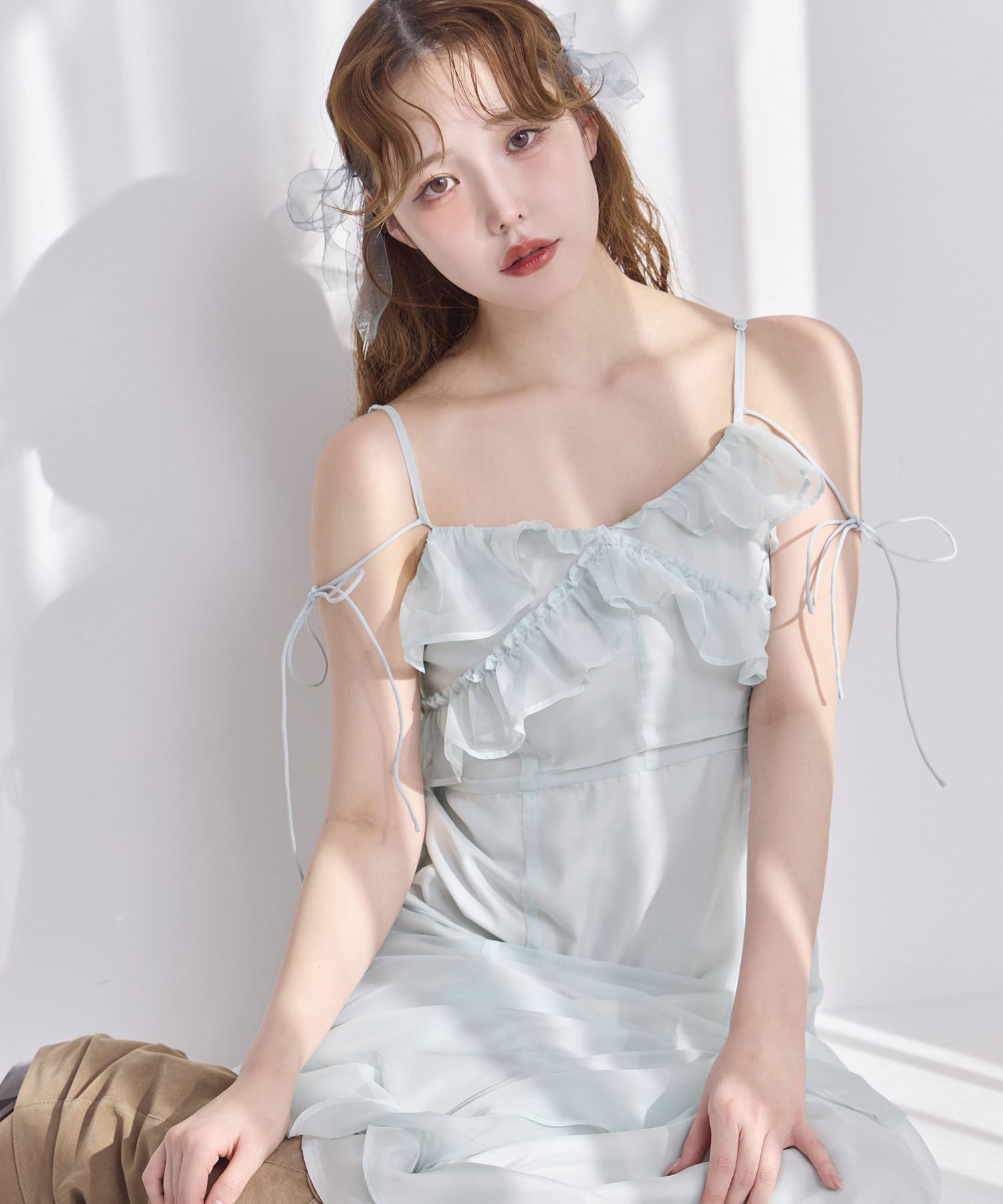 程よい透け感が上品な印象を与えてくれるキャミワンピース