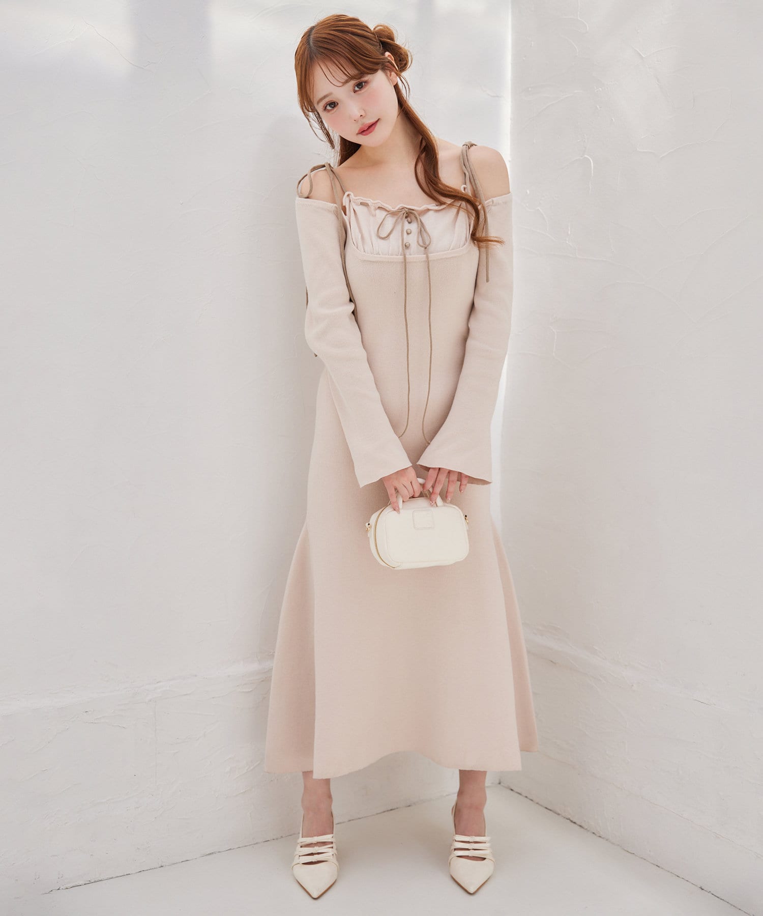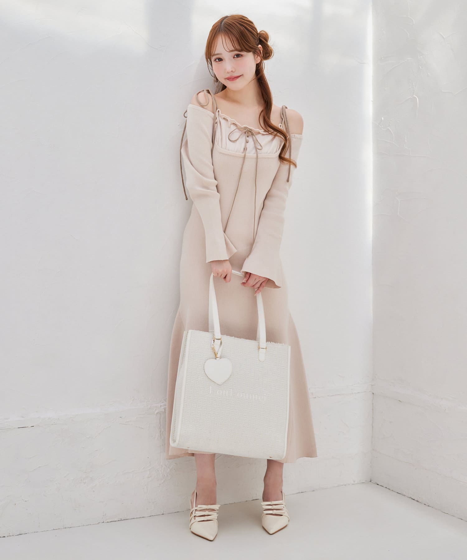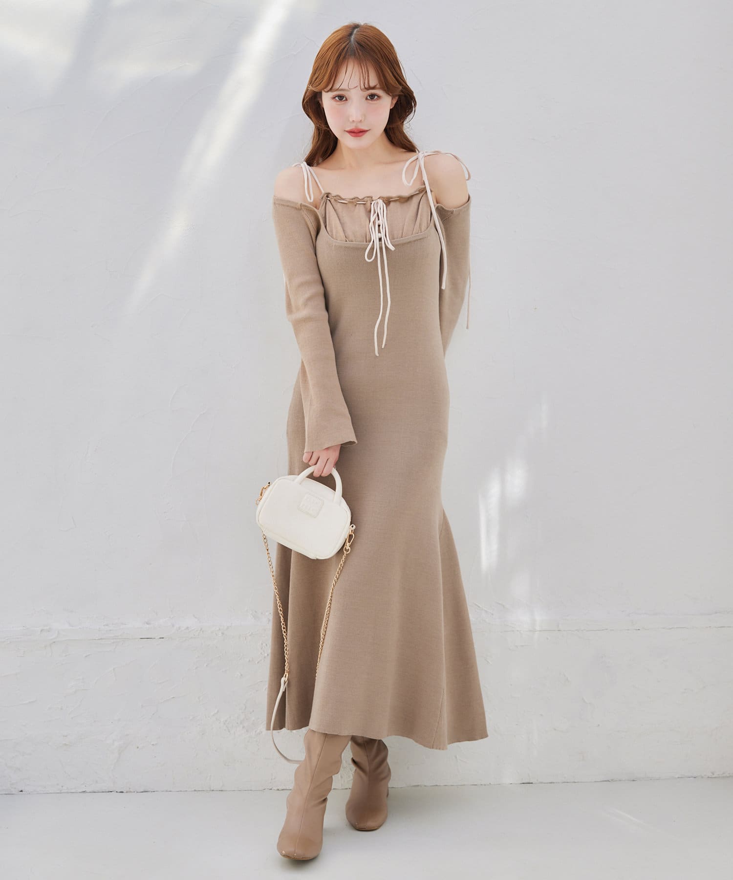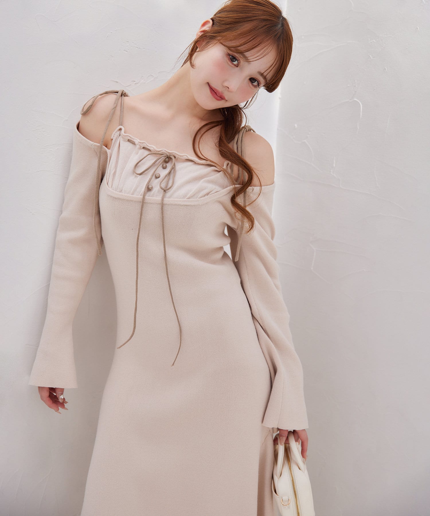 肩のリボンがシンプルなデザインの中に甘さをプラスしてくれます。