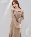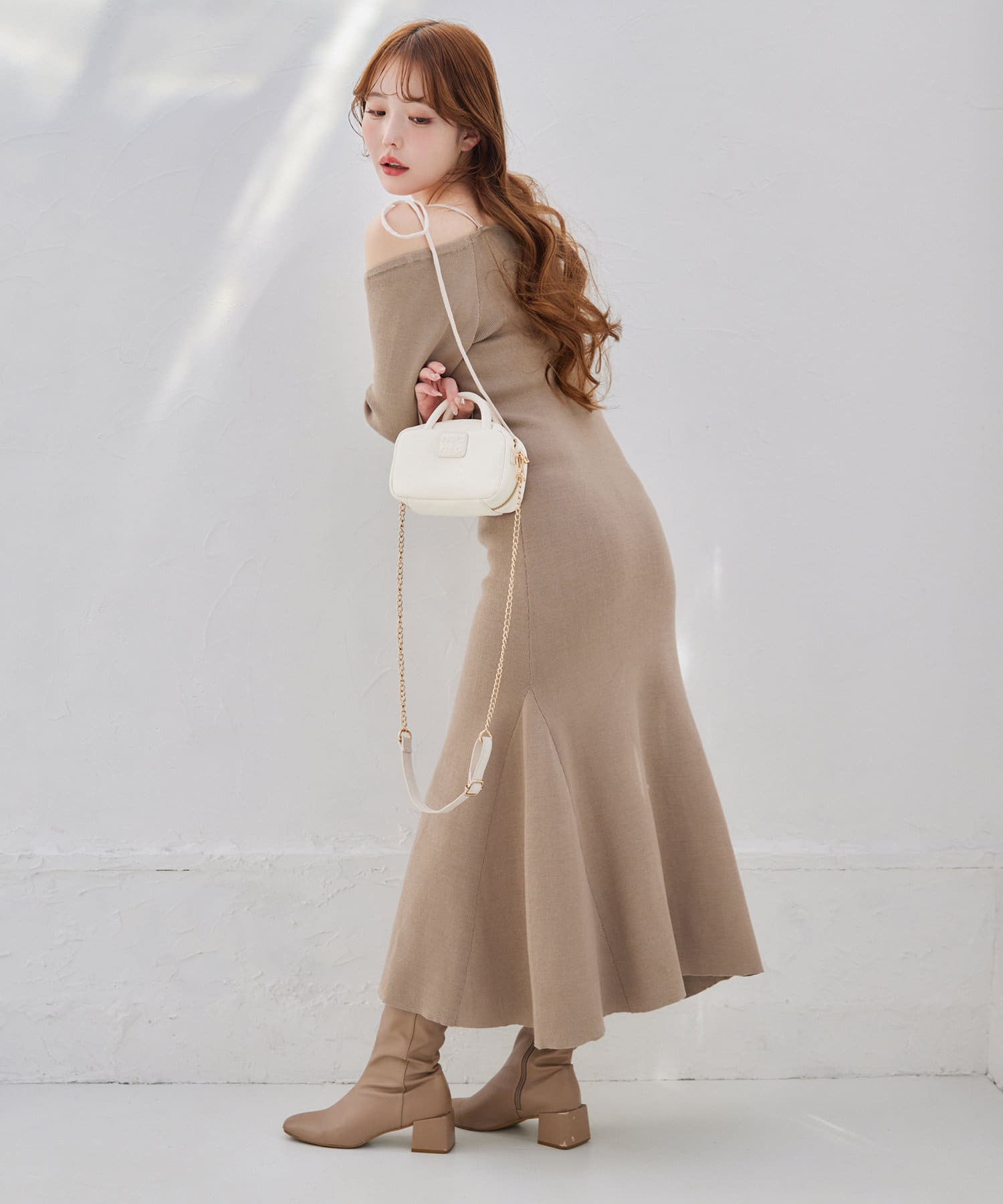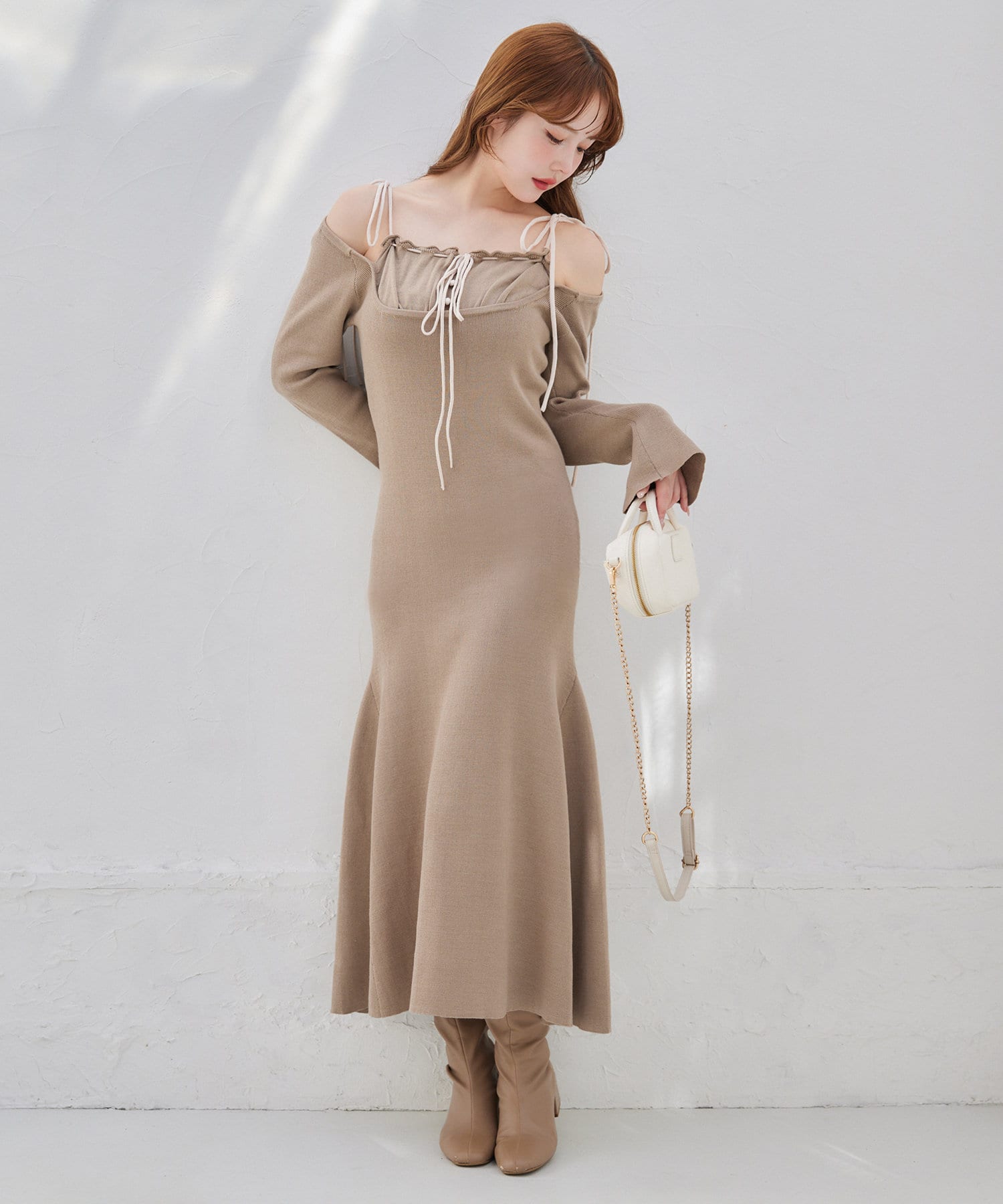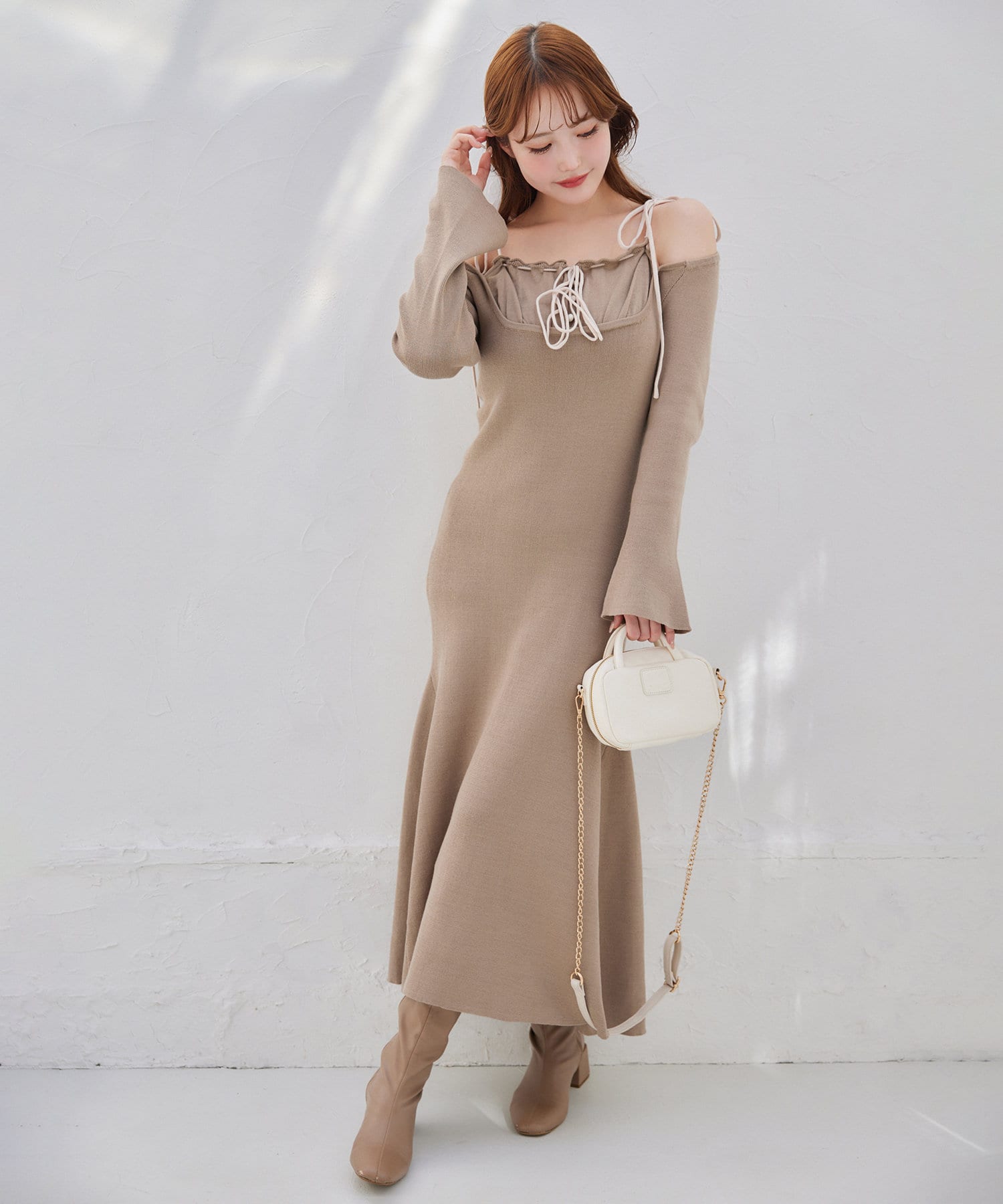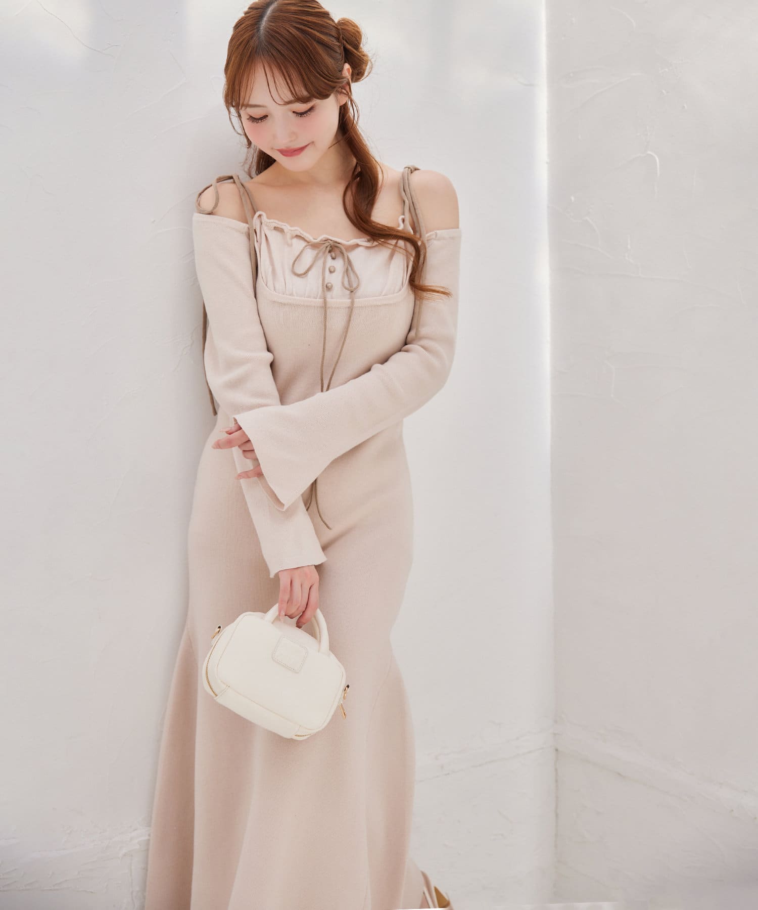 肩のリボンがシンプルなデザインの中に甘さをプラスしてくれます。