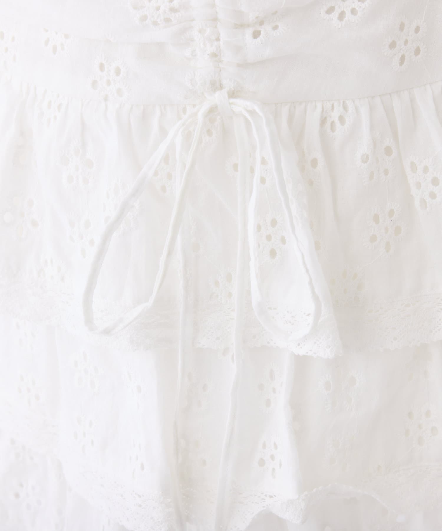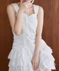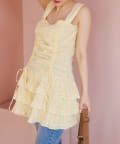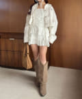 ふんだんにギャザーを施し、女性らしいシルエットを意識したチュニックワンピース。