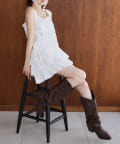 足元はロングブーツやスニーカーで、シーズンムードをプラス。