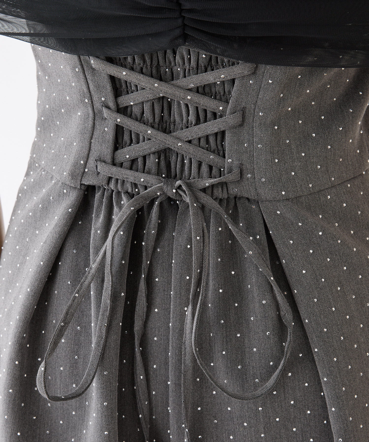 ウエスト部分はシルエットを綺麗に見せるデザインになっており、脚長効果も◎。