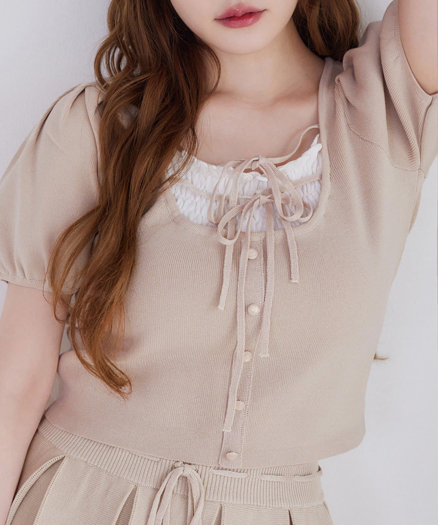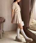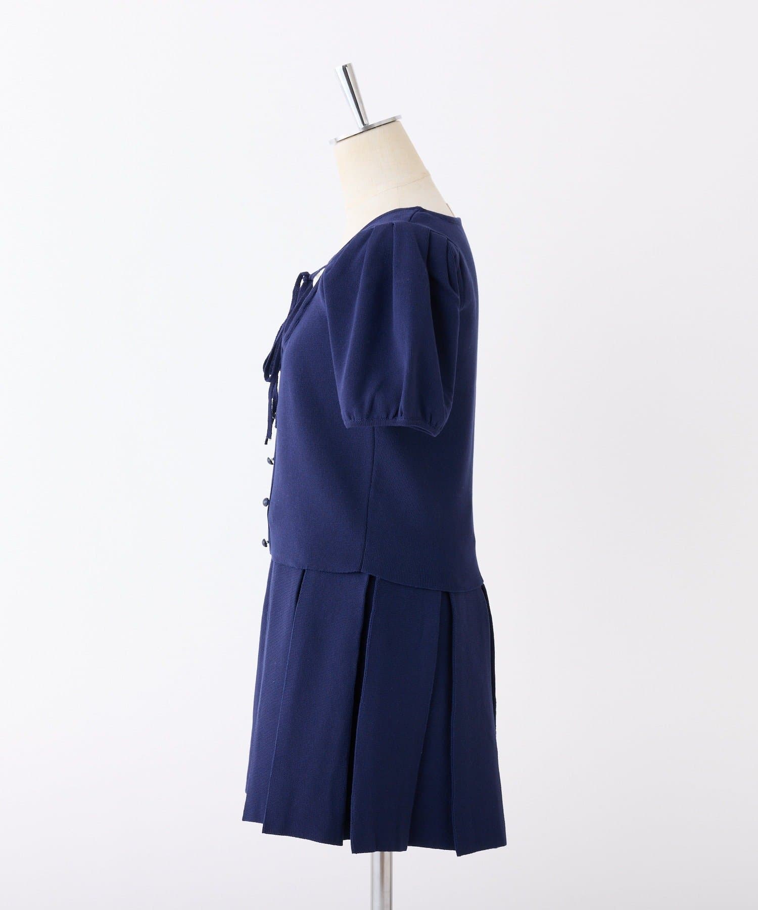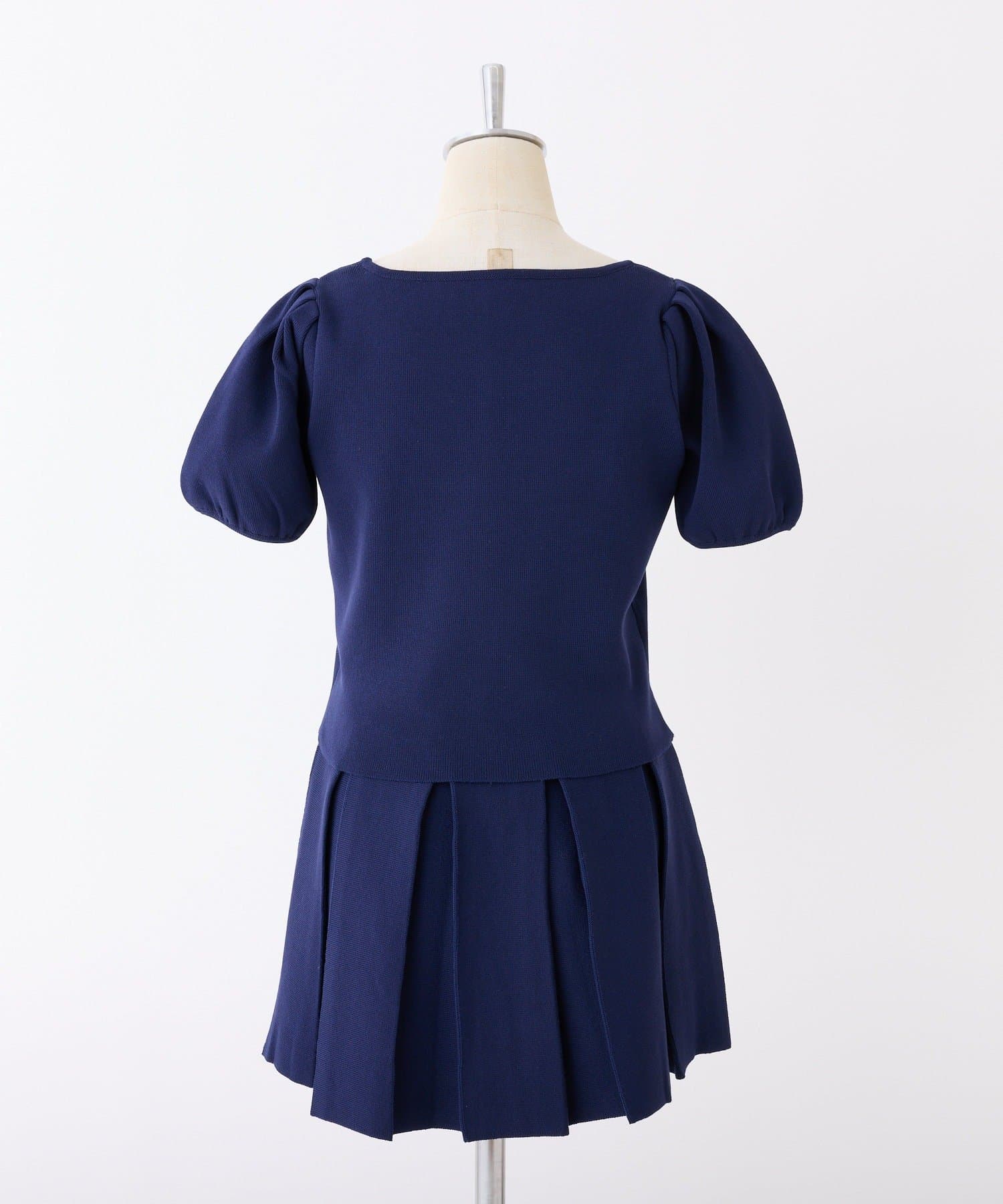 1枚でレイヤードしているようにも見える主役級ニットトップスと美脚効果の高いプリーツミニスカート