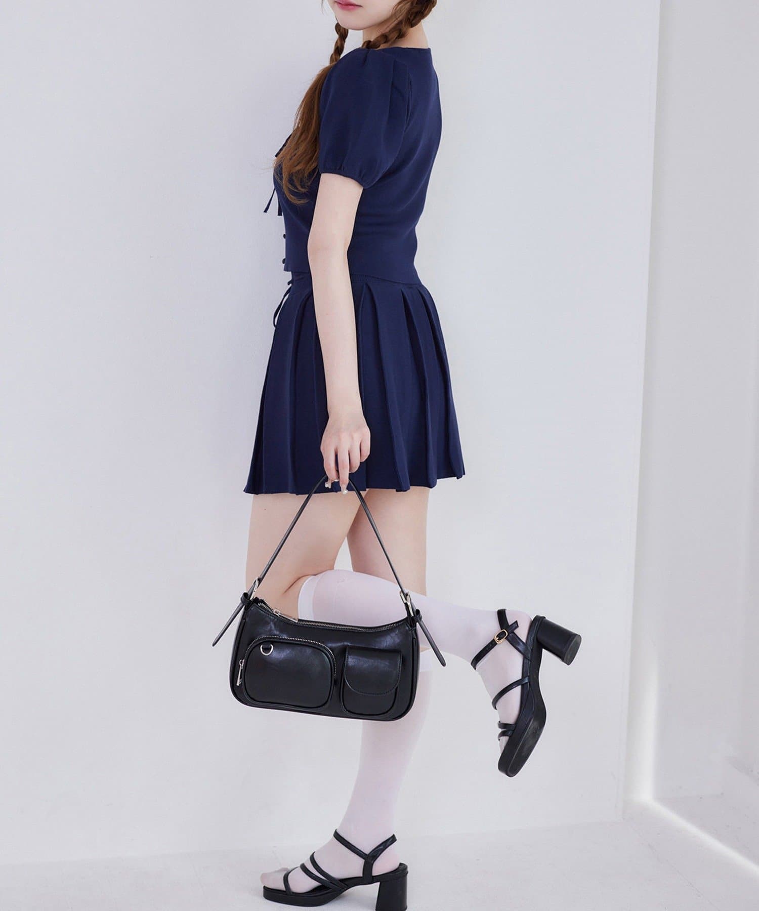 シアーハイソックス×ミュールにミニバッグを合わせれば、流行のバレエコアコーデが完成。