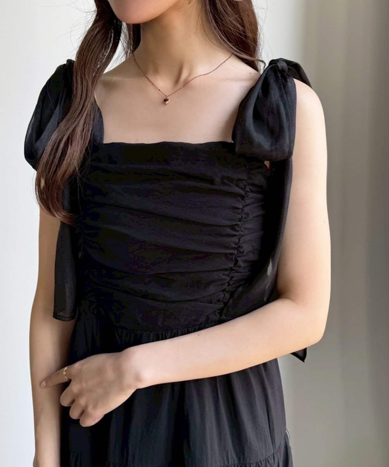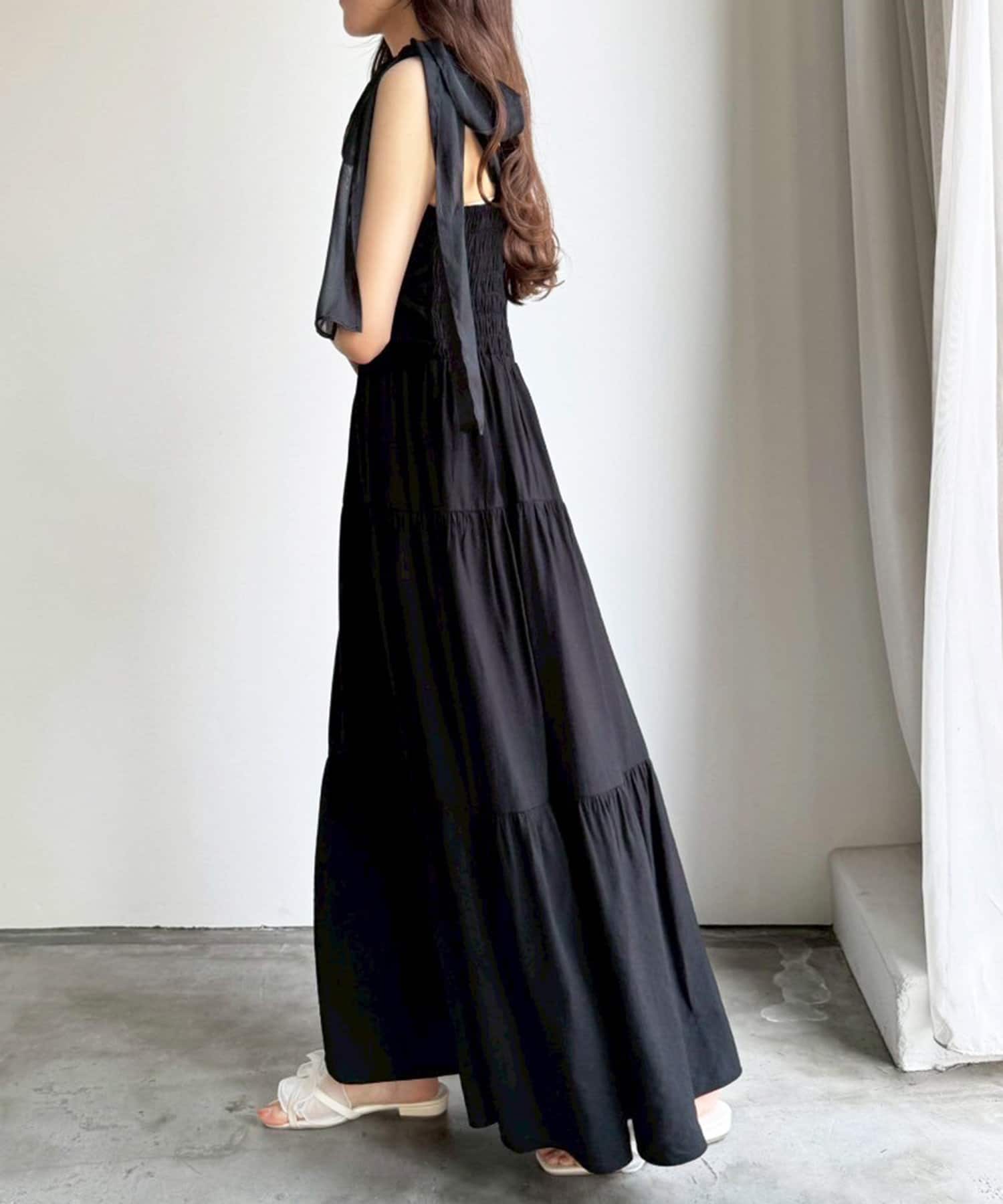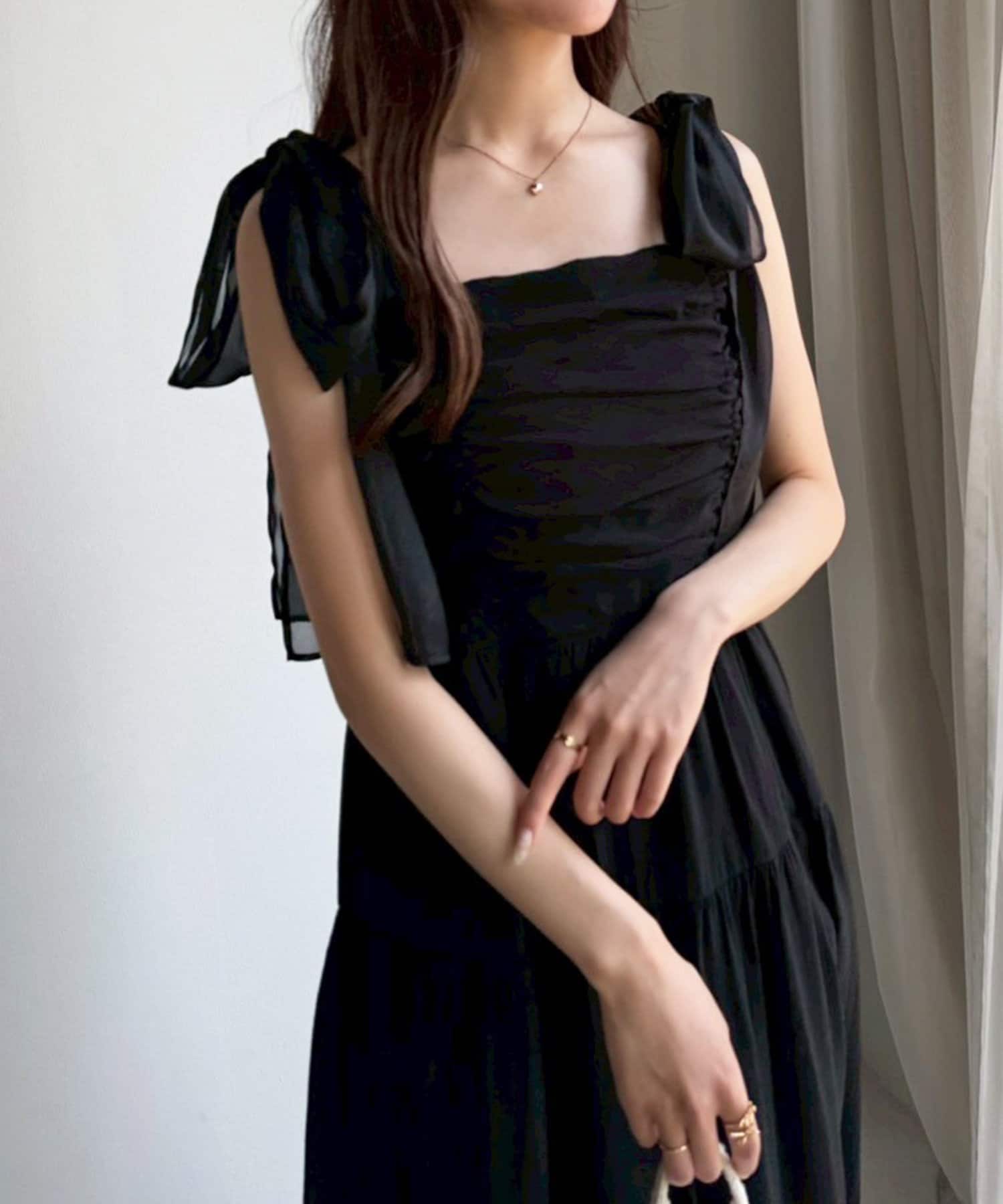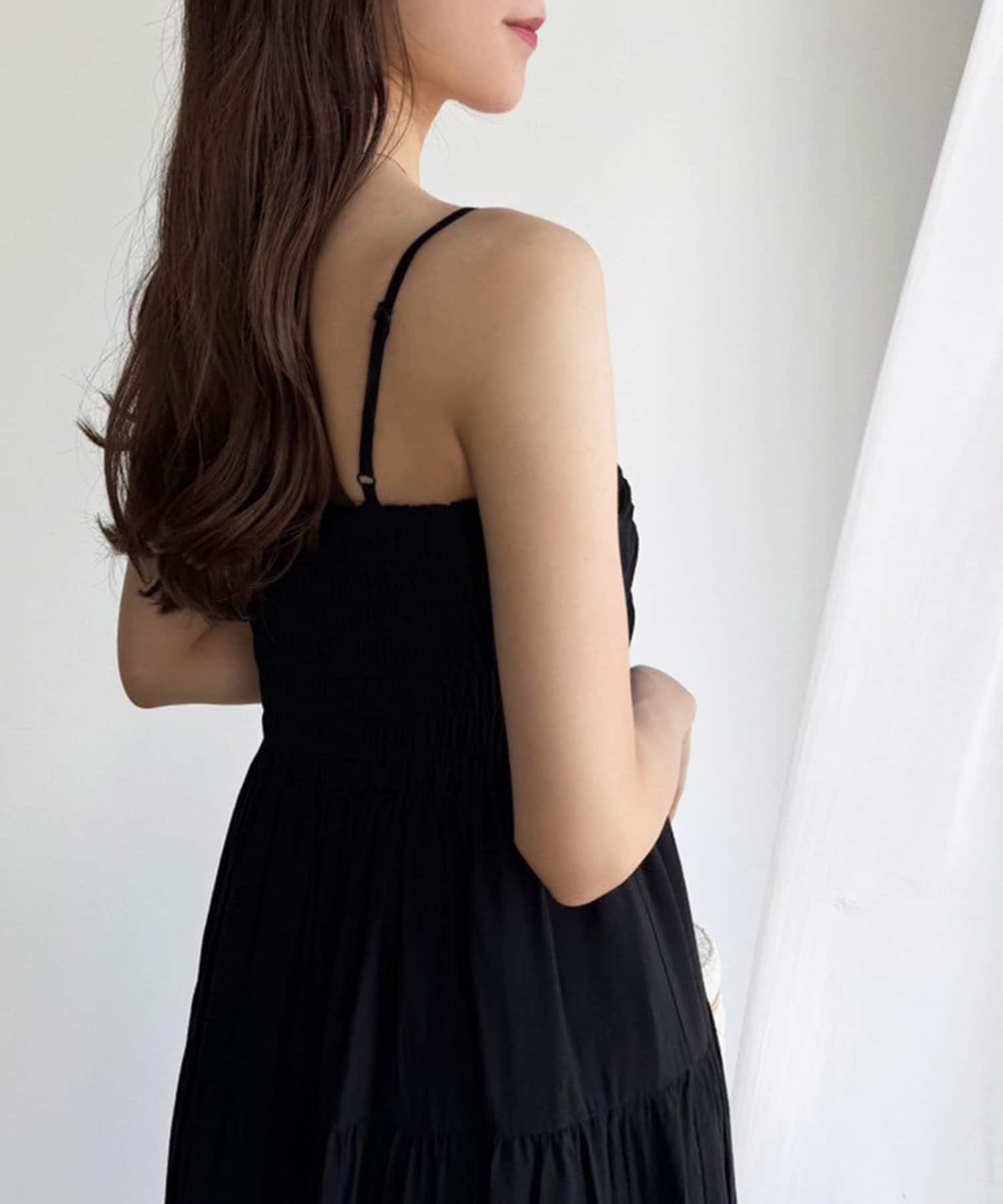 肩リボンティアードキャミワンピース