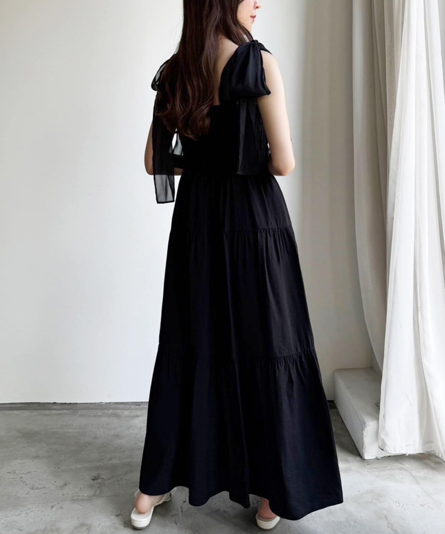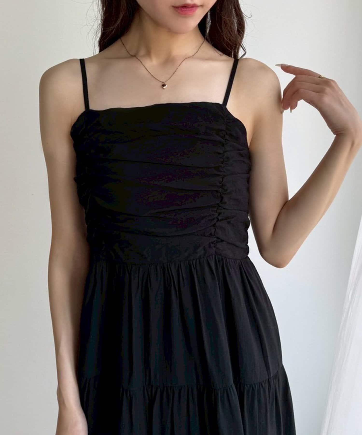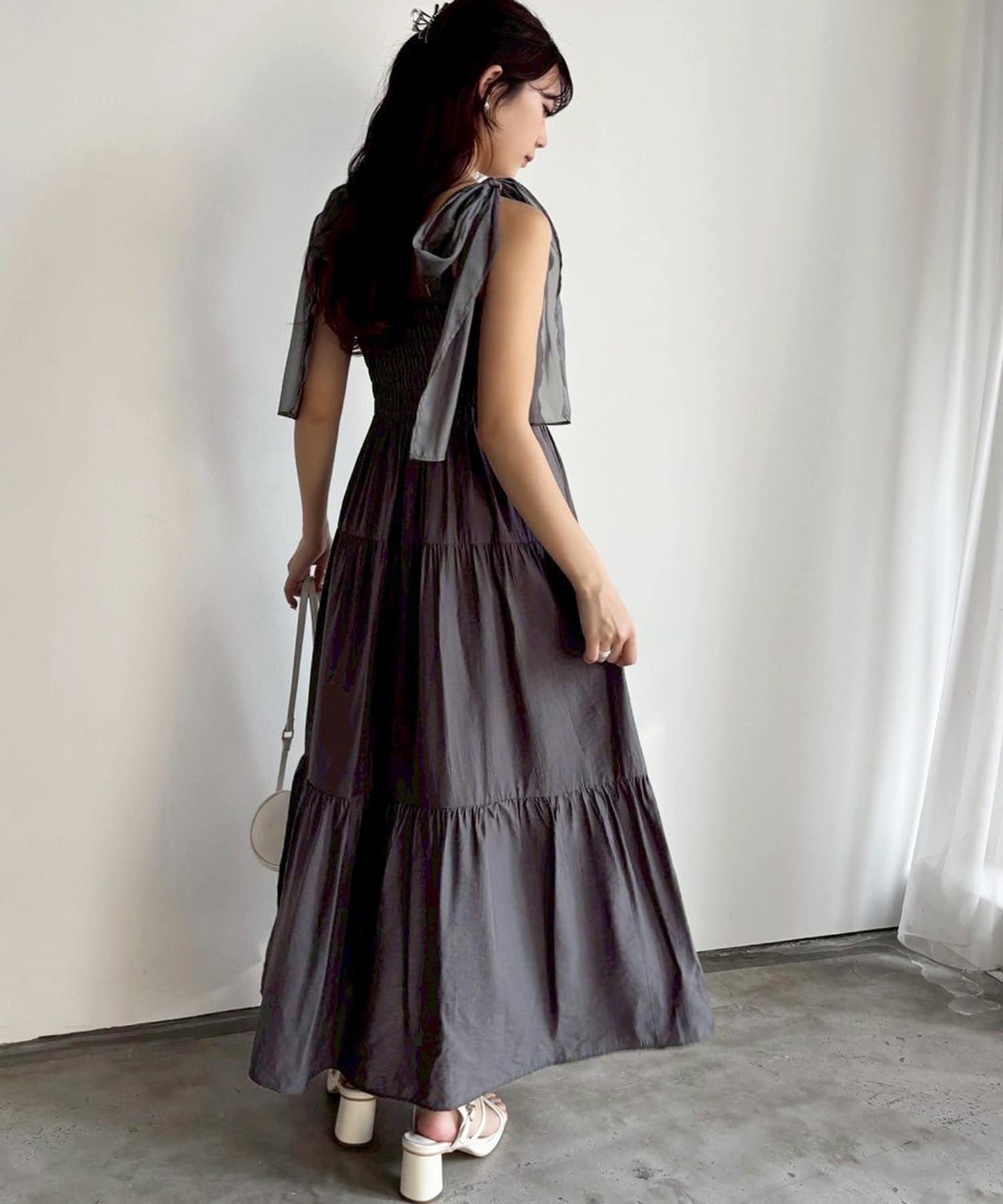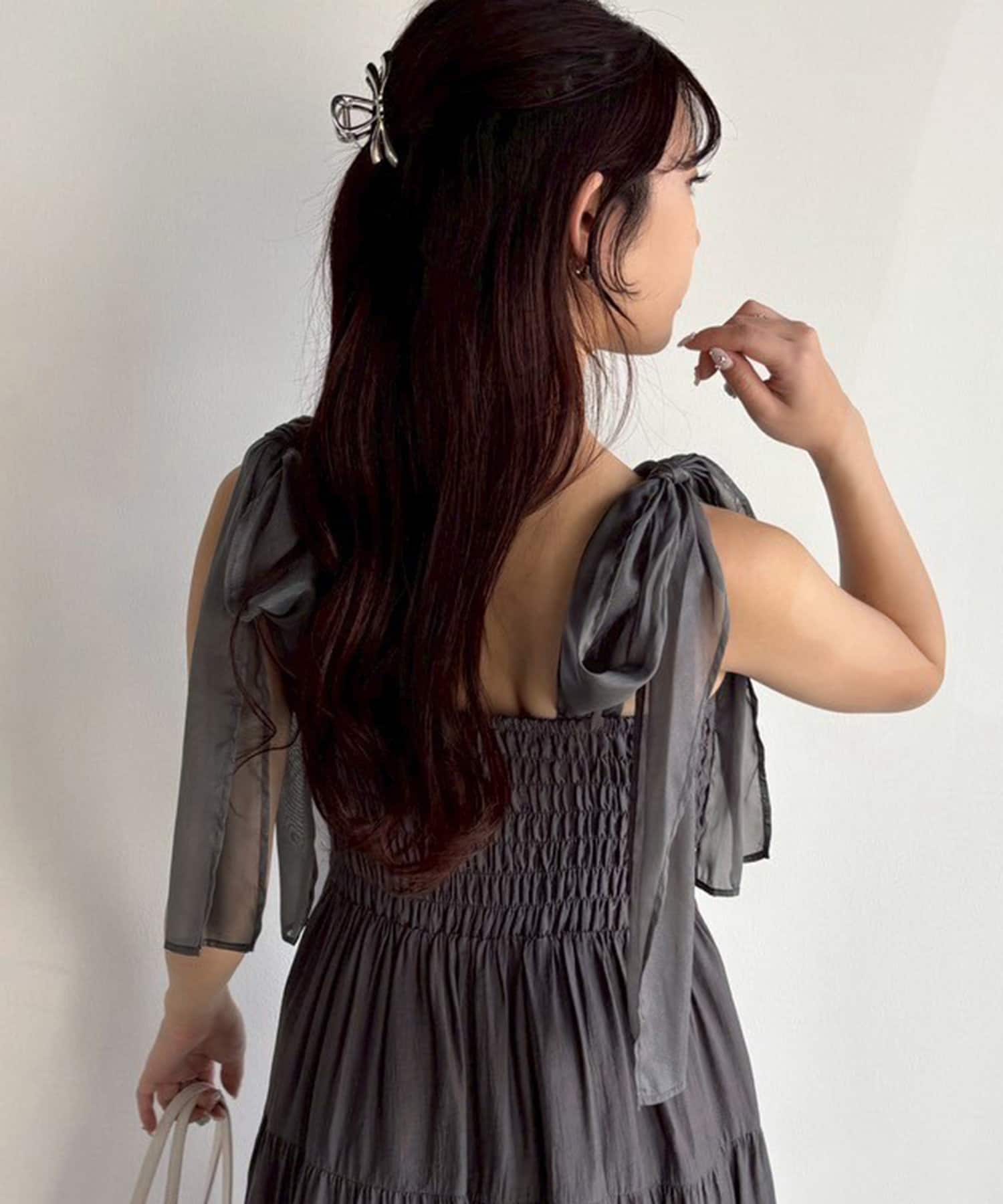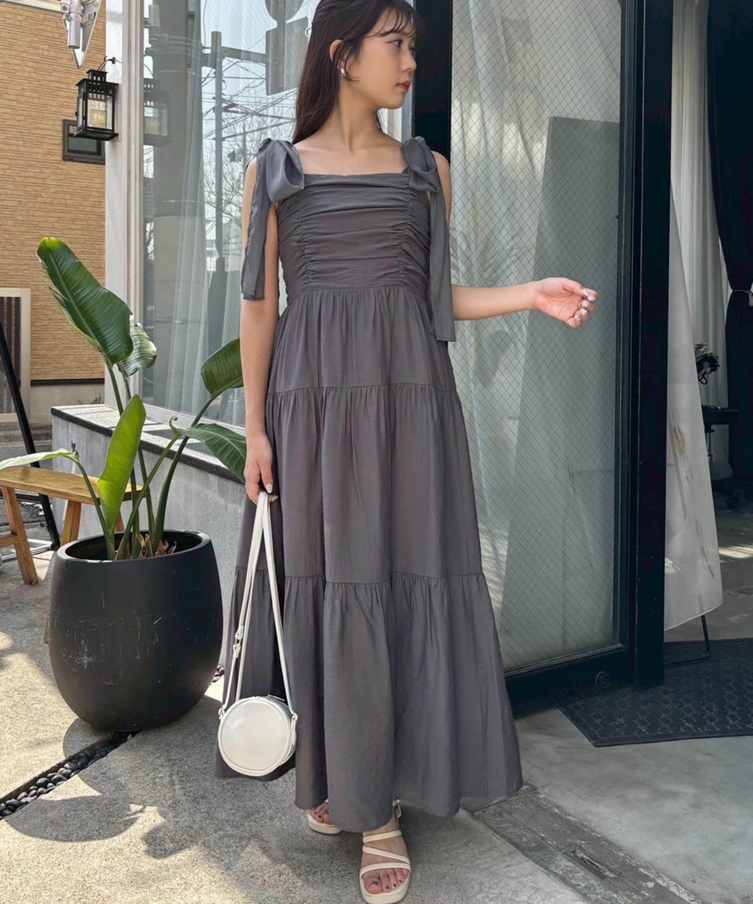 肩リボンティアードキャミワンピース