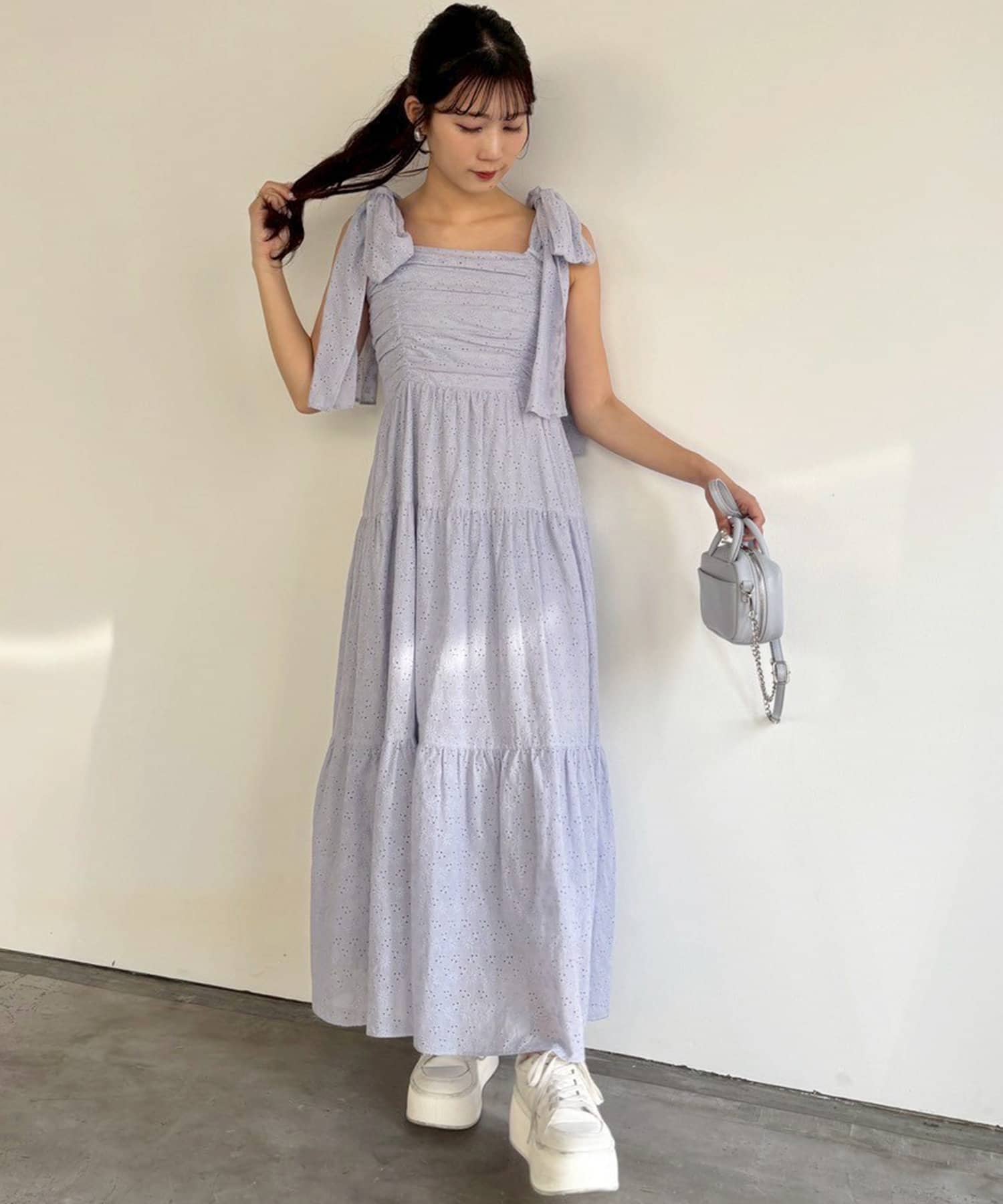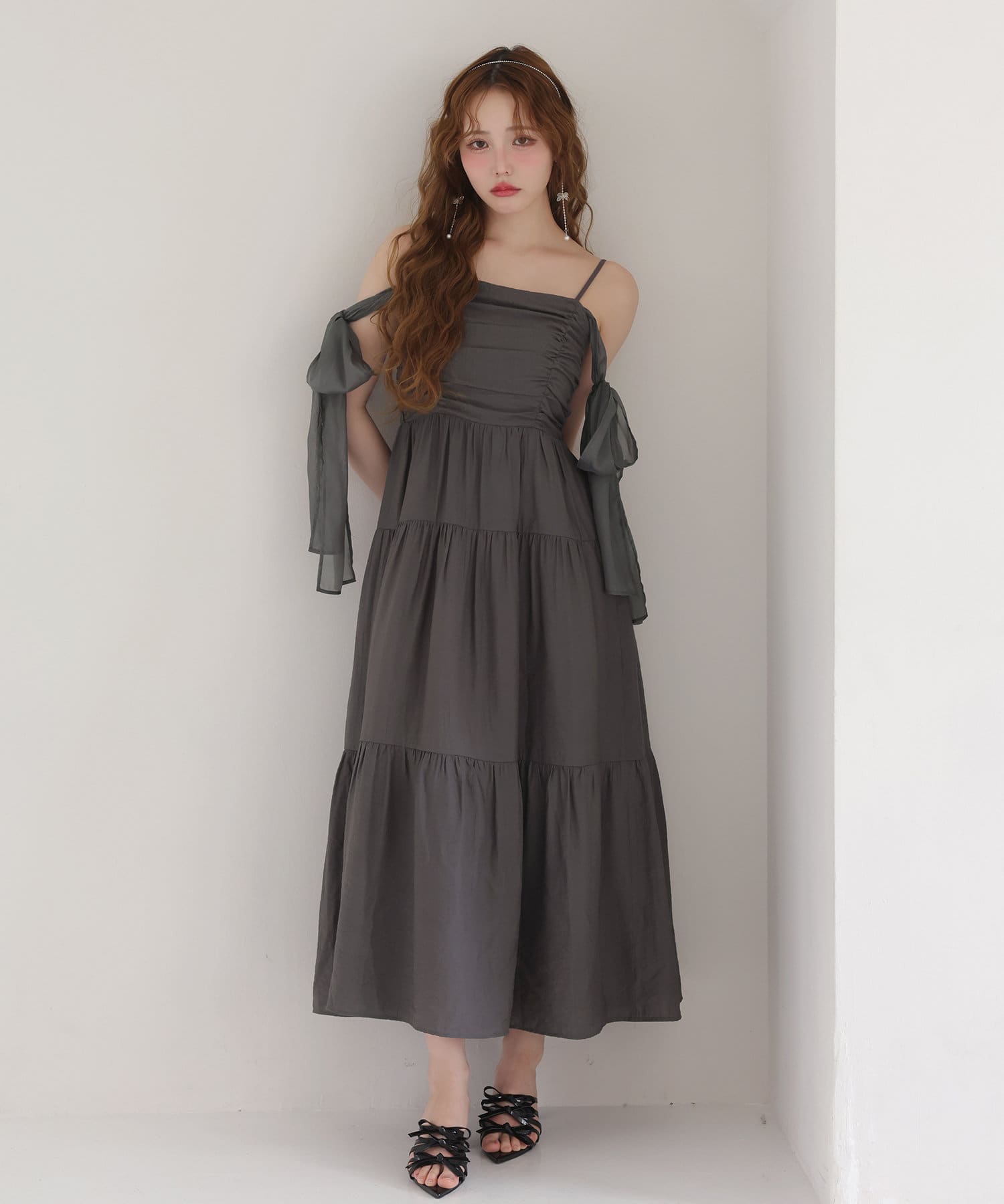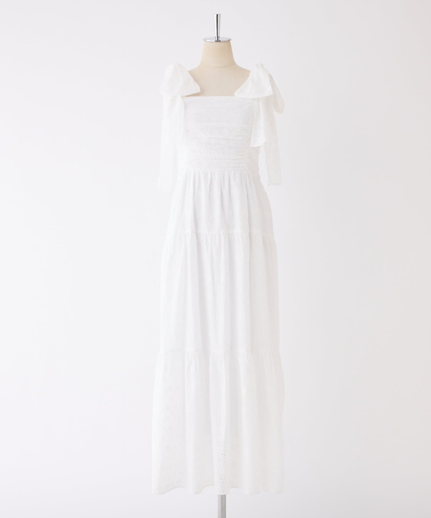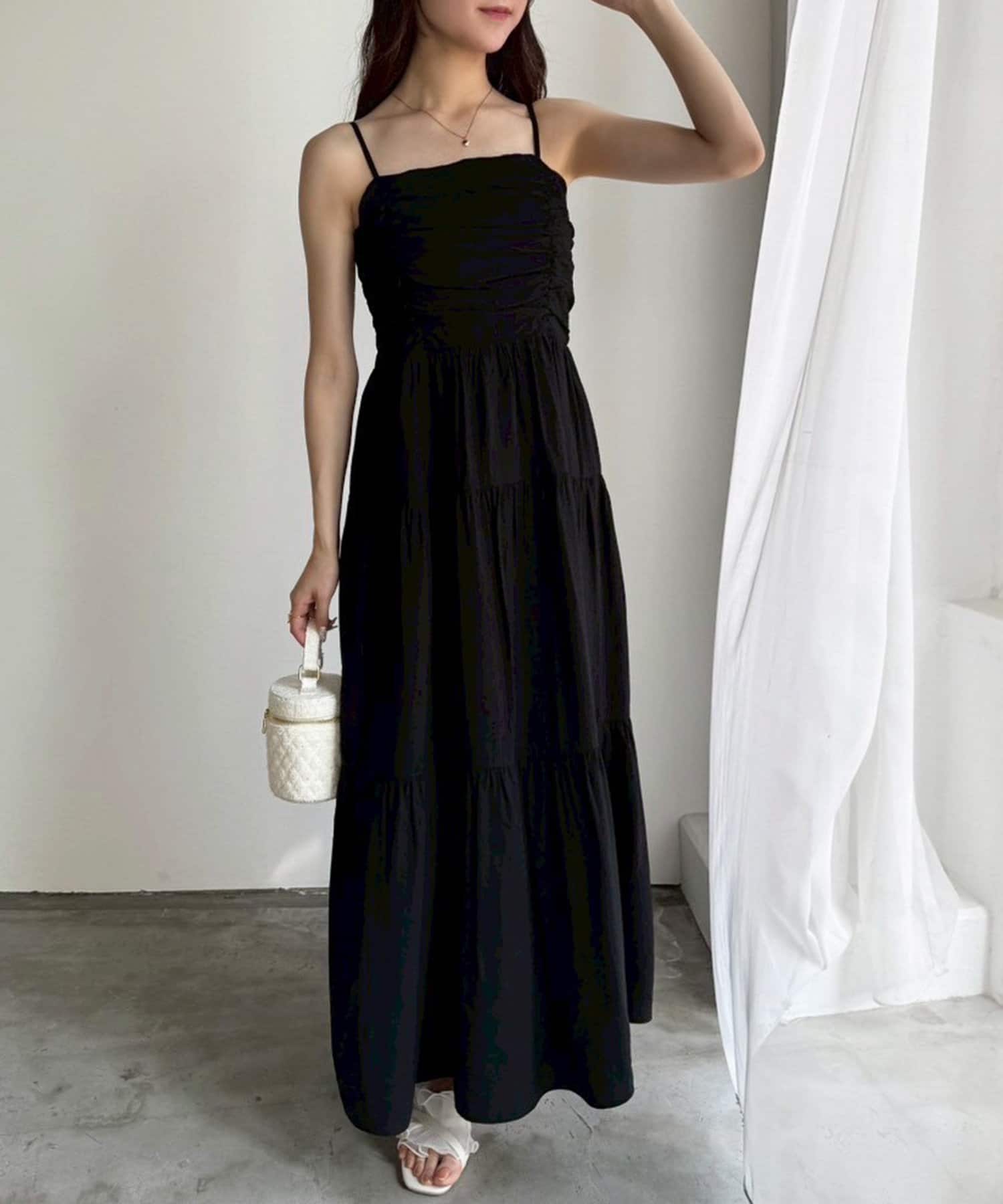 肩リボンティアードキャミワンピース
