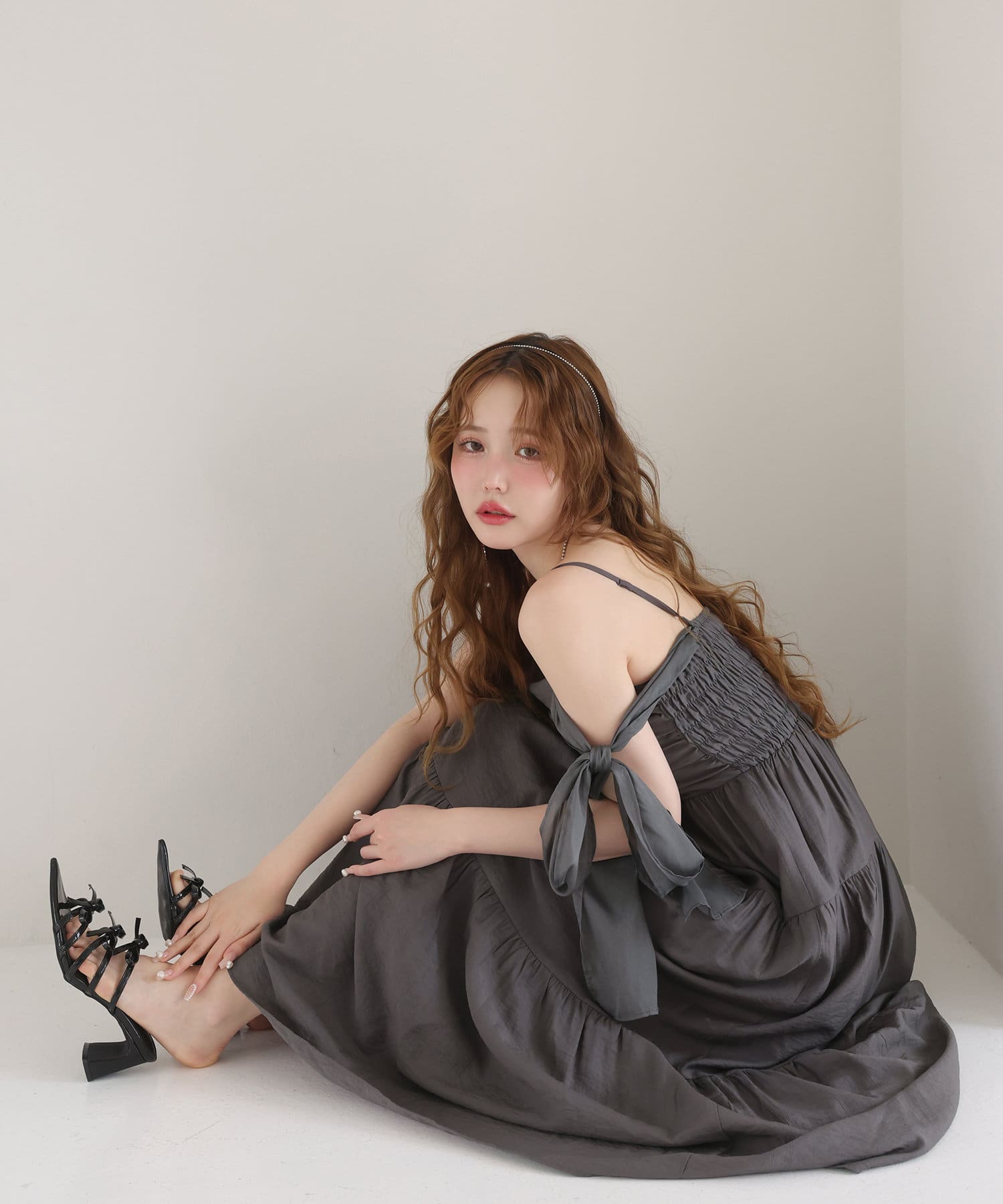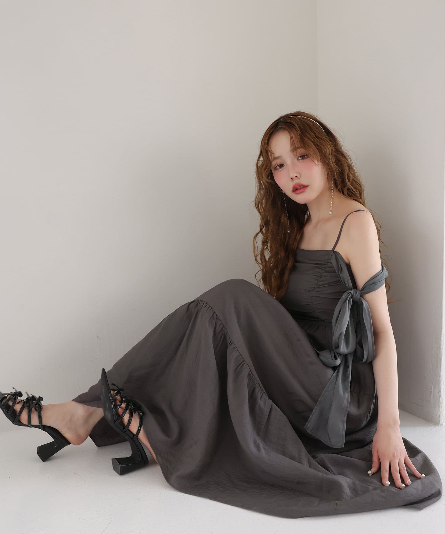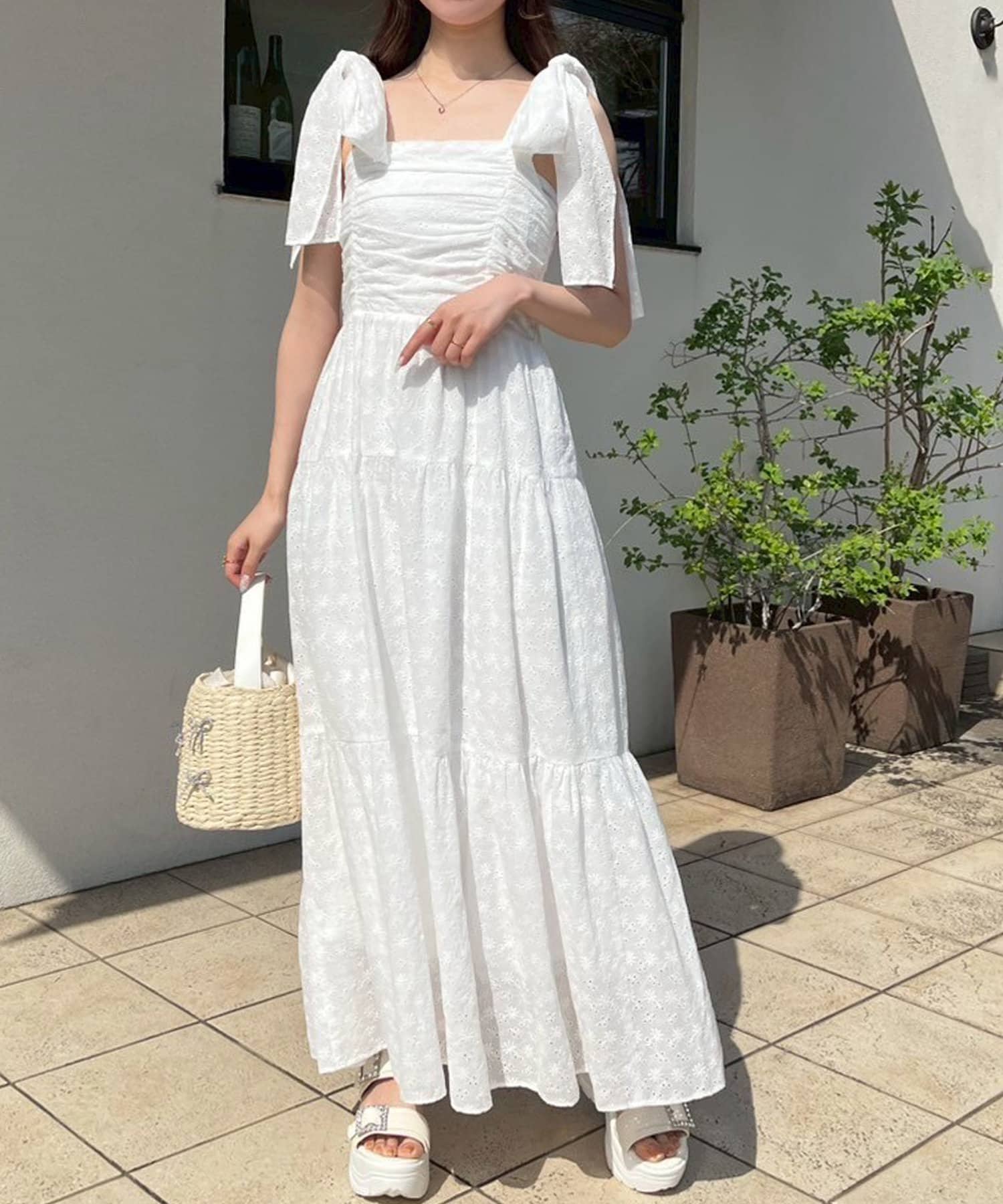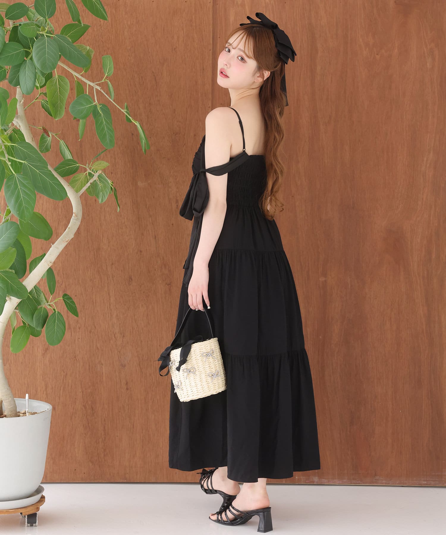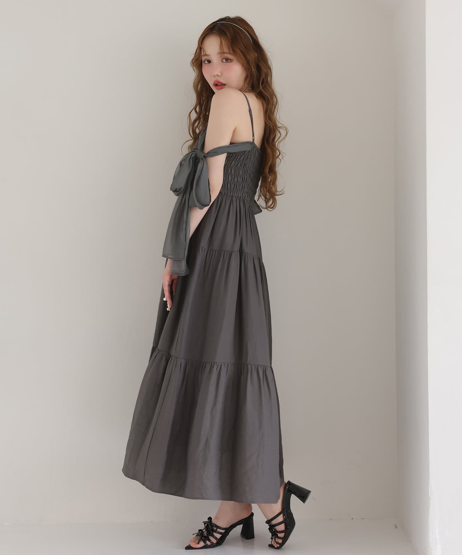 肩リボンティアードキャミワンピース