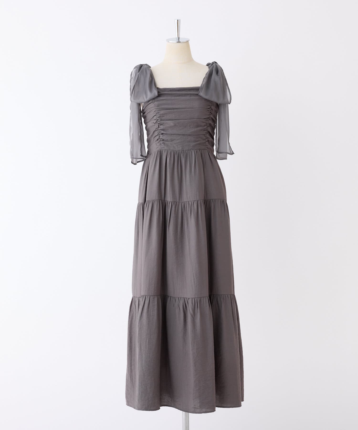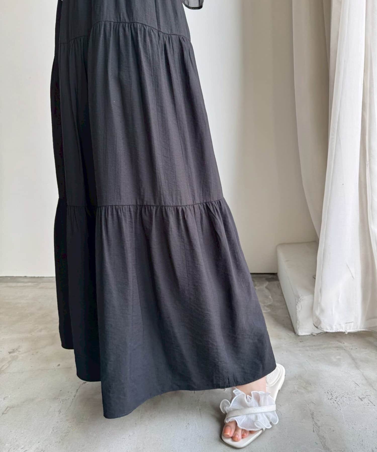 ふんわりと広がるシルエットが女性らしいティアードワンピース