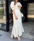 シルエットはなだらかな広がり感のあるマーメイドライン。
