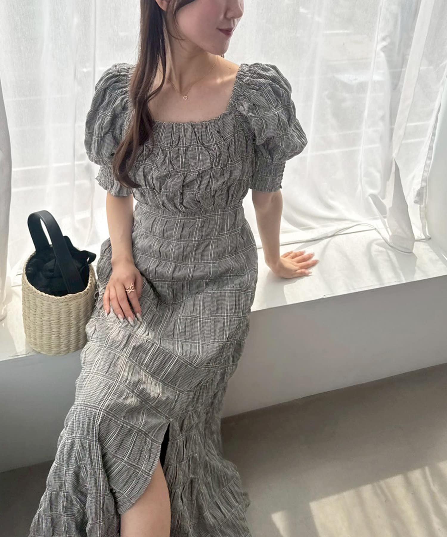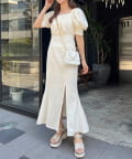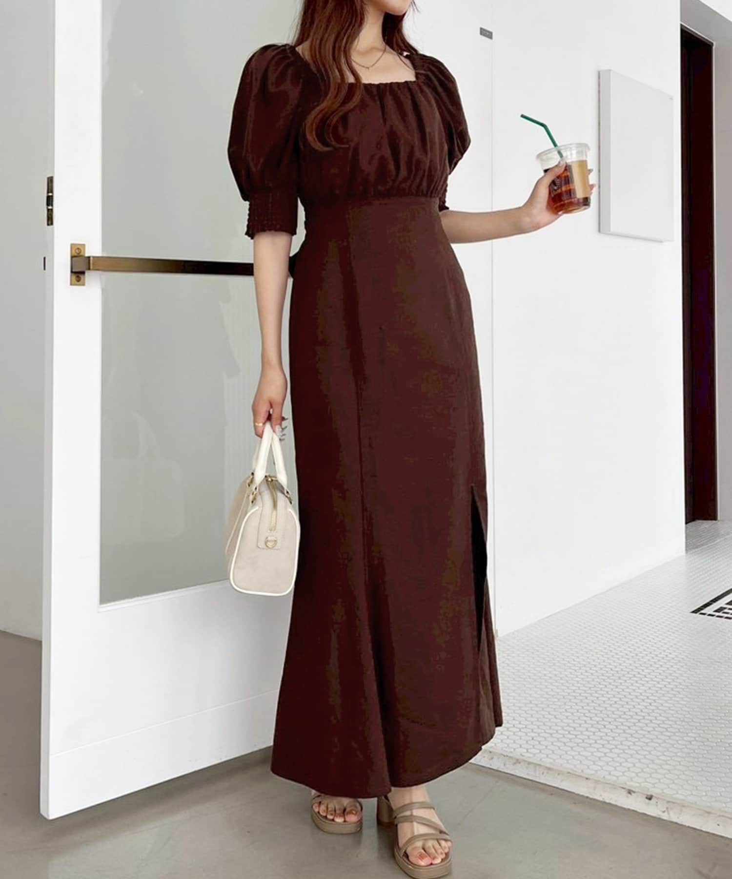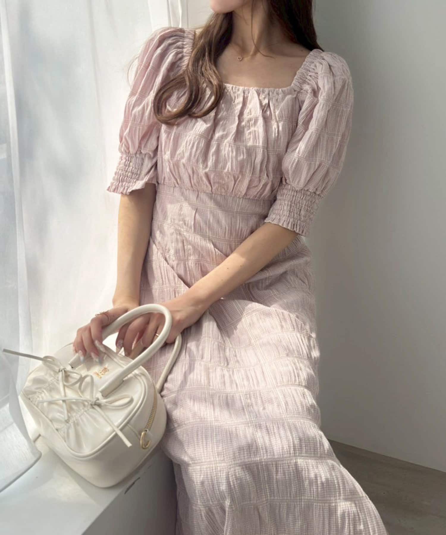 パフスリーブで、丸みのある形が女性らしさを演出してくれるワンピース