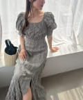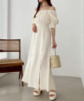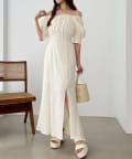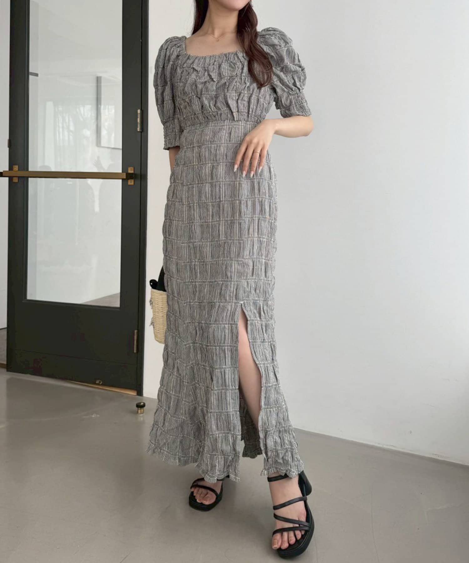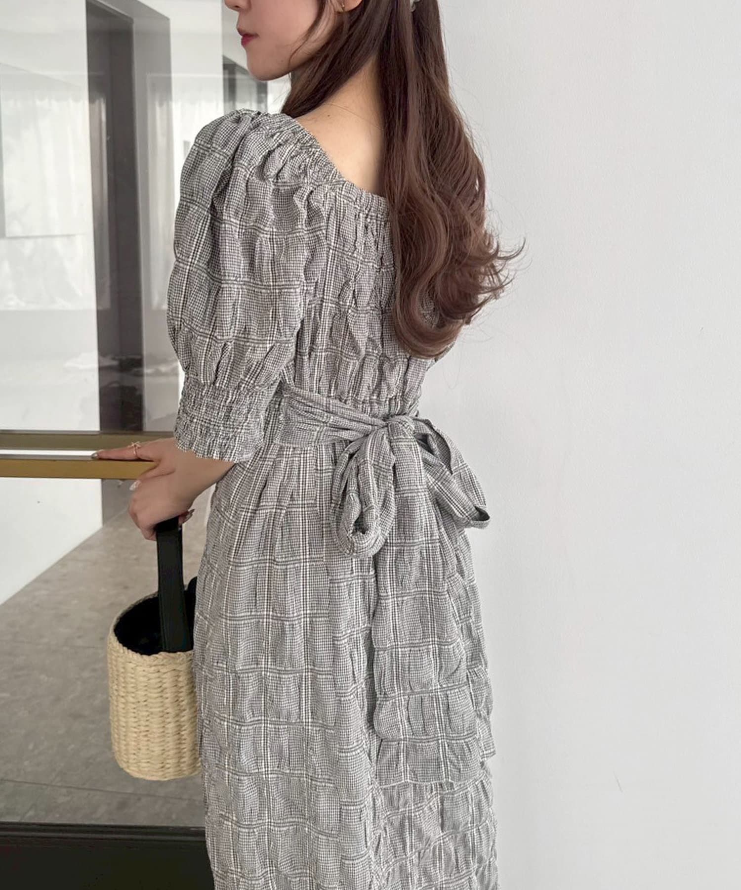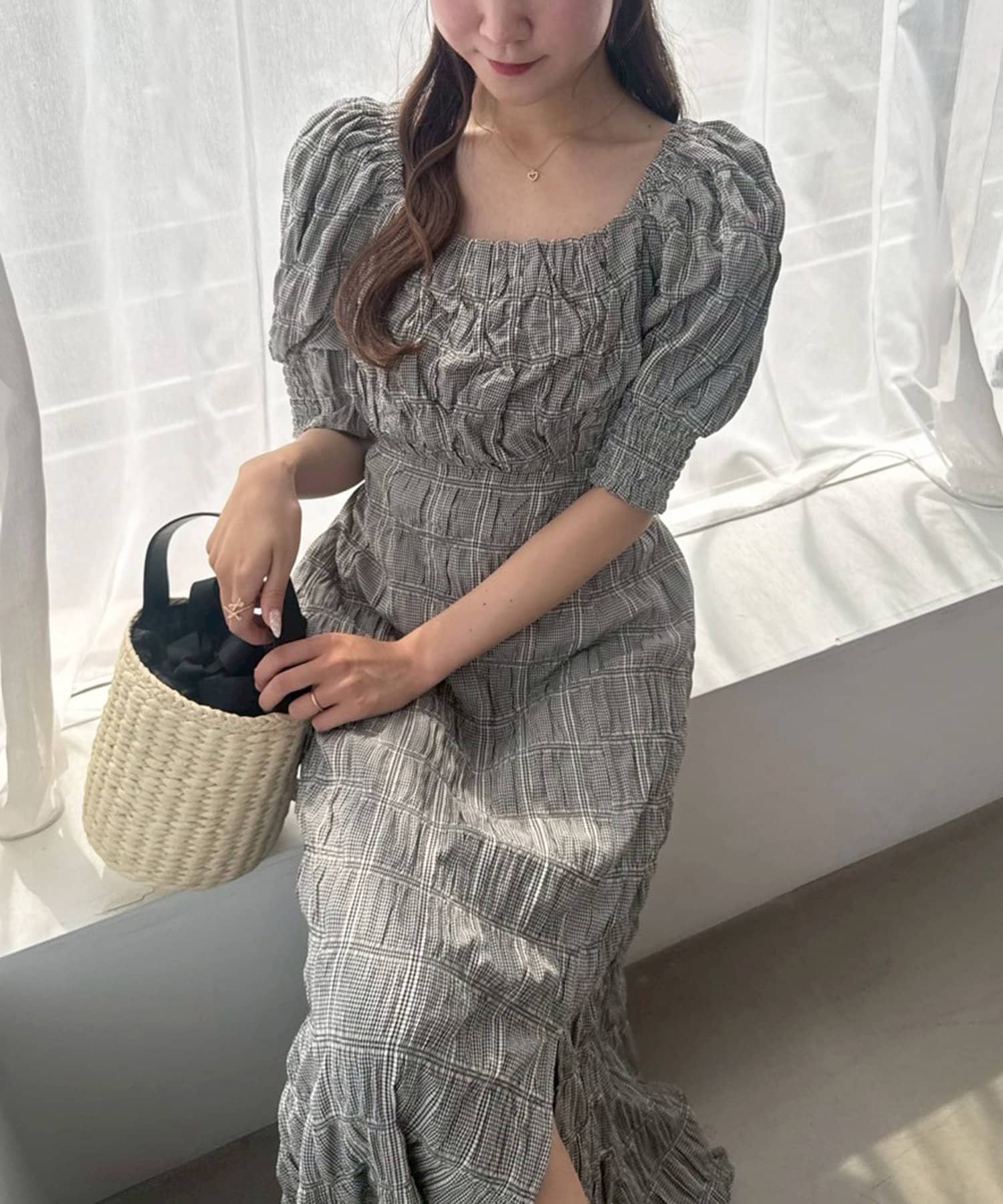 パフスリーブで、丸みのある形が女性らしさを演出してくれるワンピース