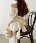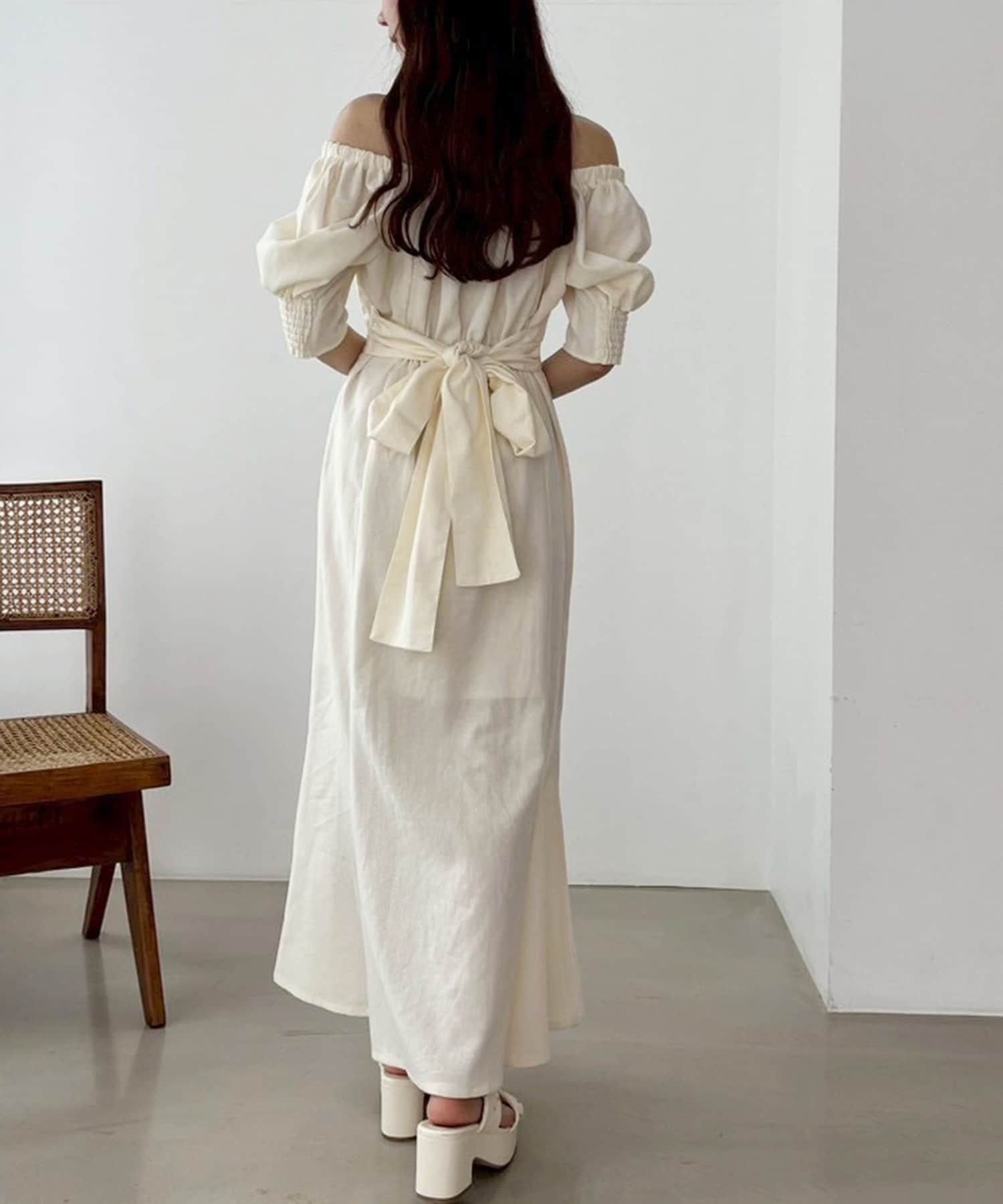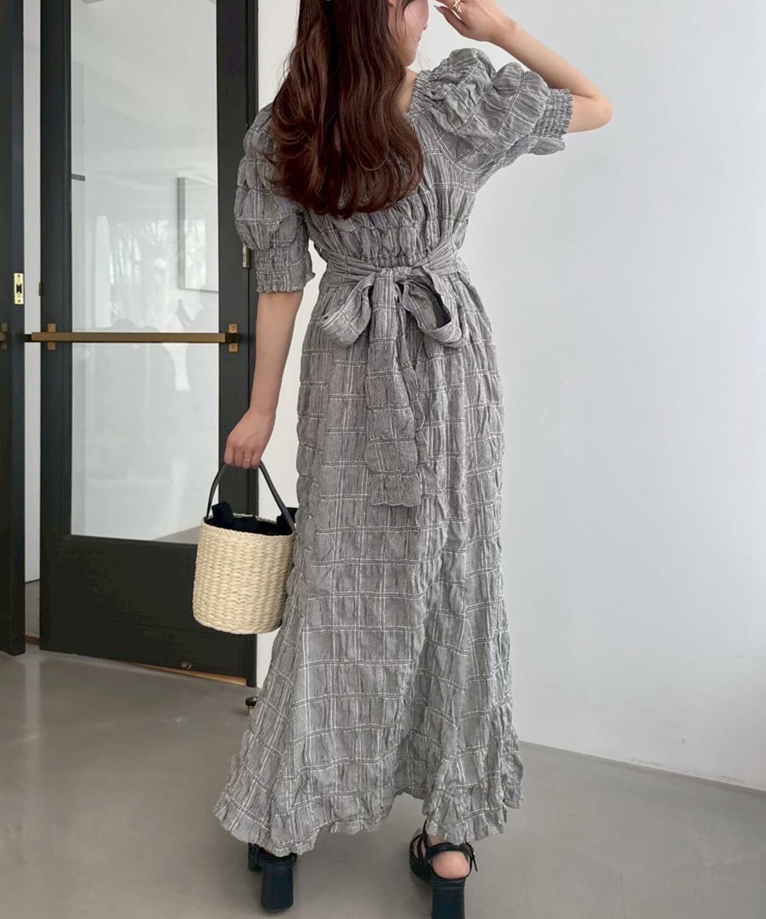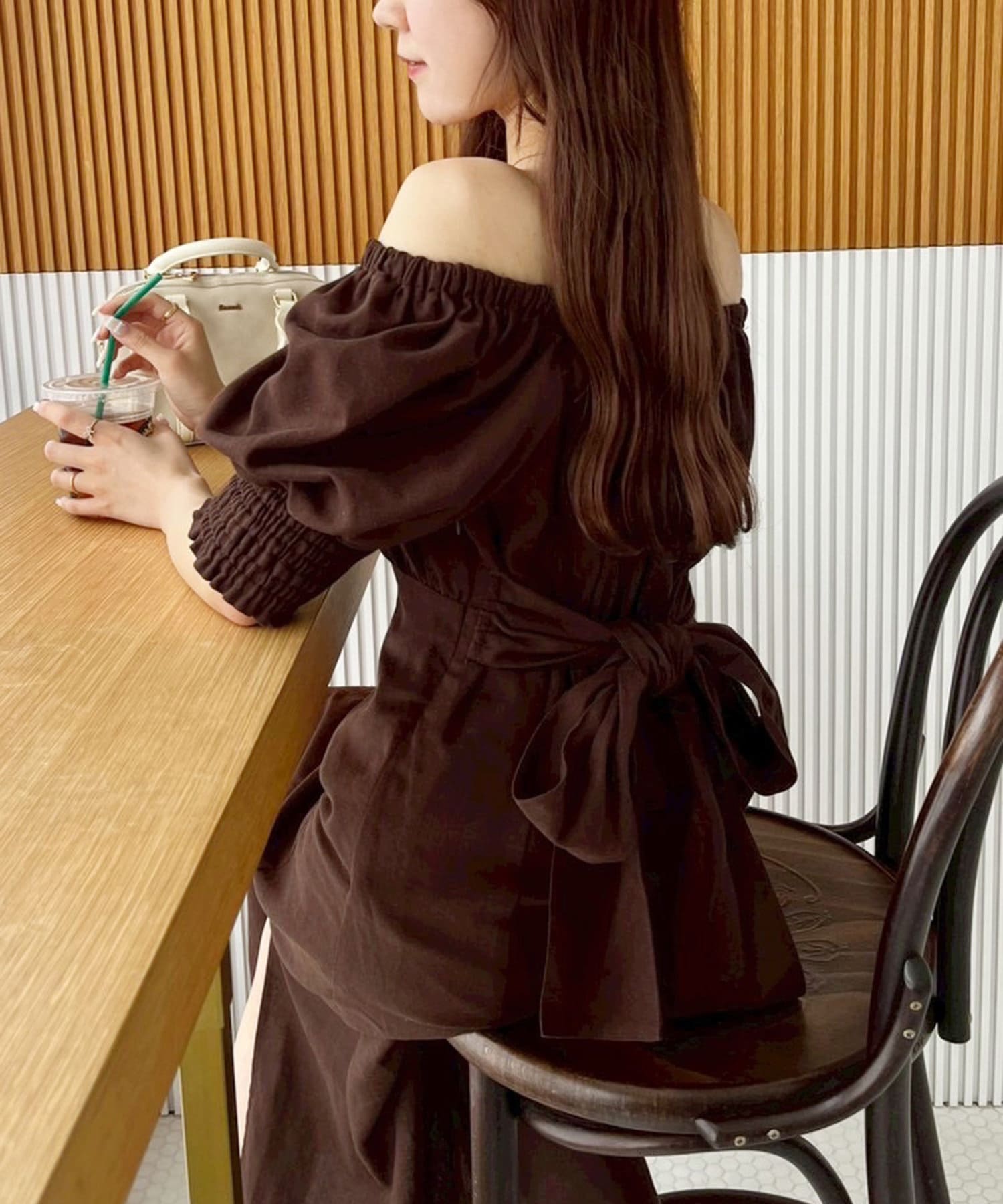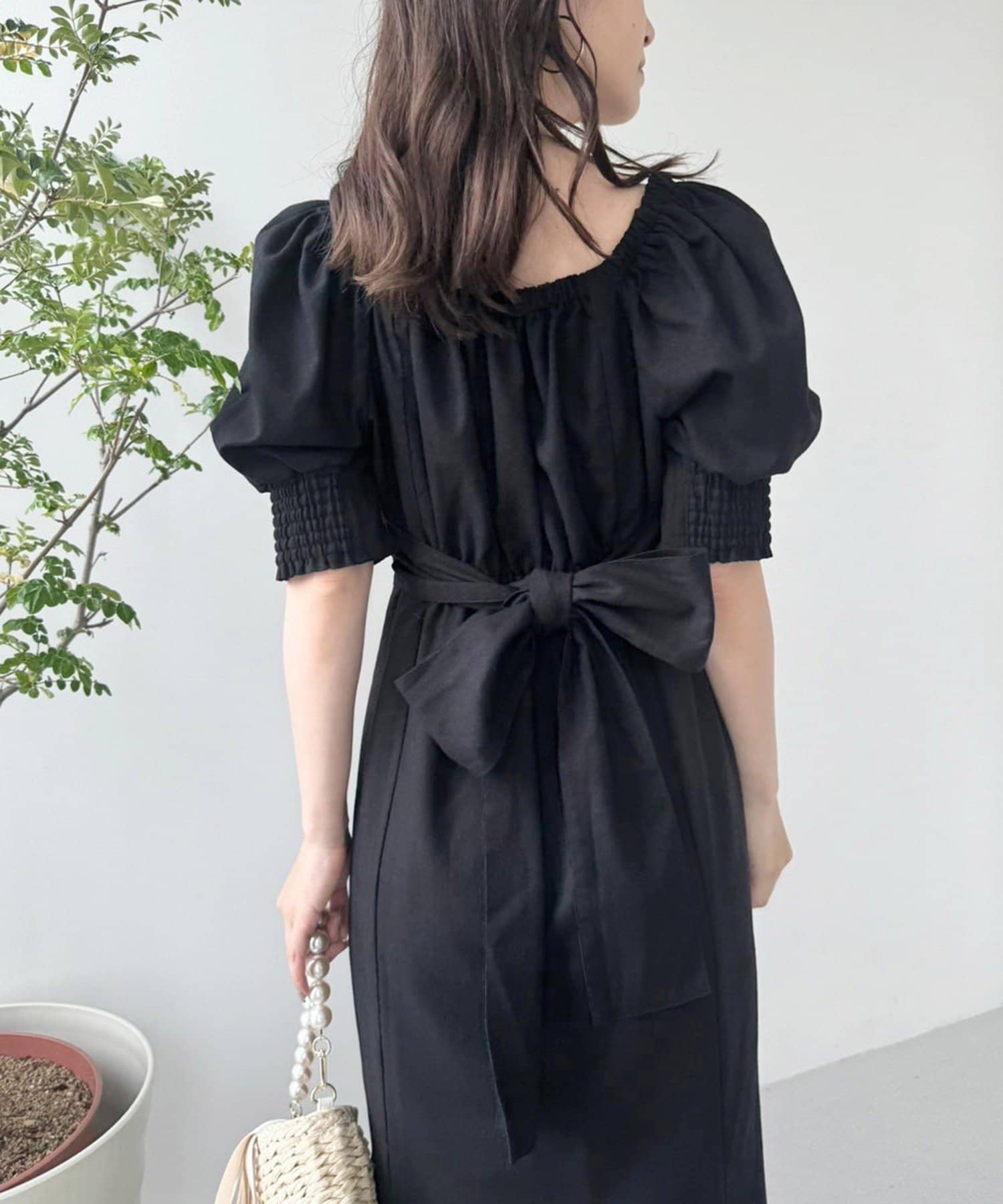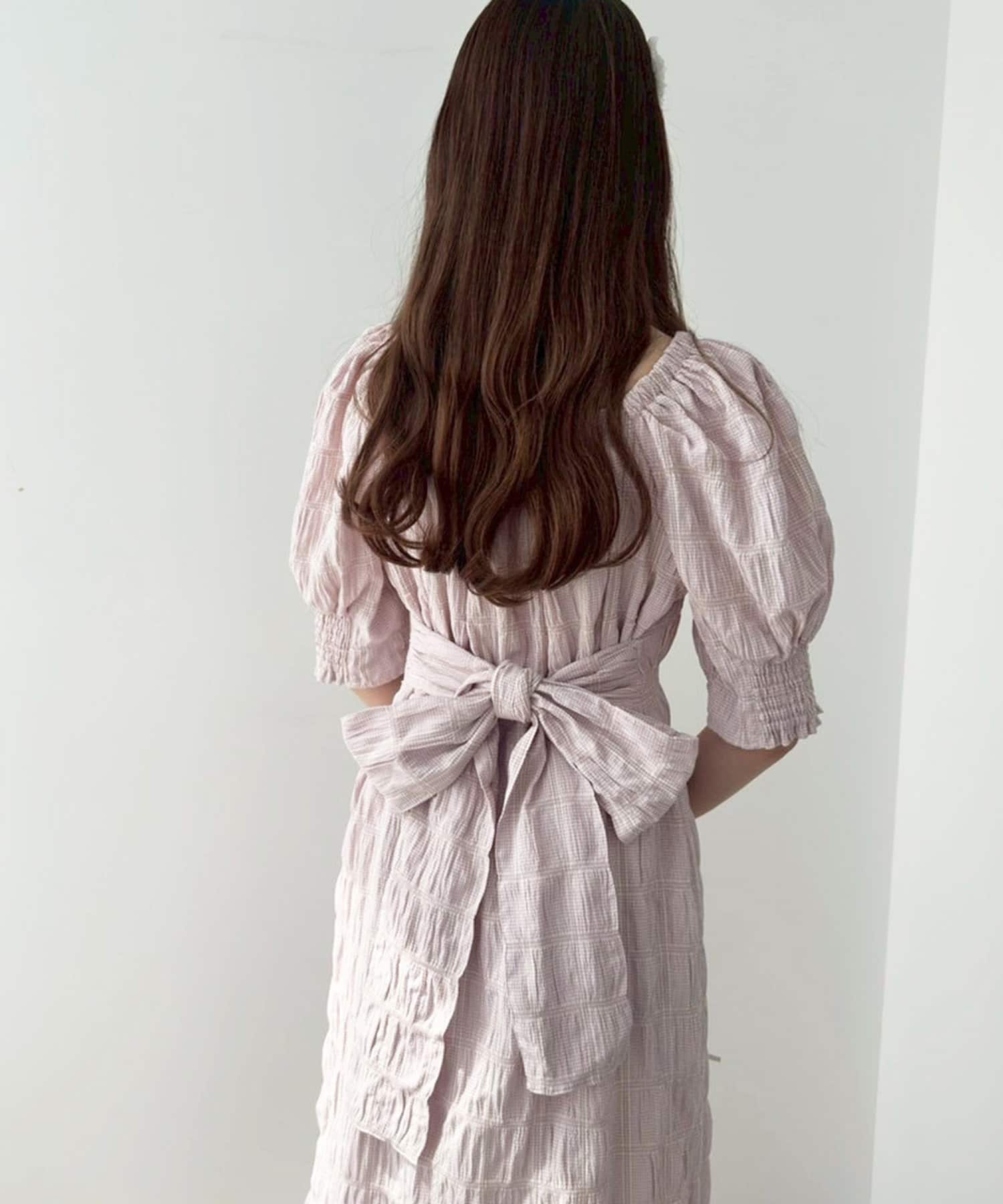 腰位置についているリボンでウエストをシェイプ出来るので、女性らしいラインを引き立てます。