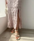 上品なコーデならヒールサンダルやゴールドアクセサリーで大人っぽく。