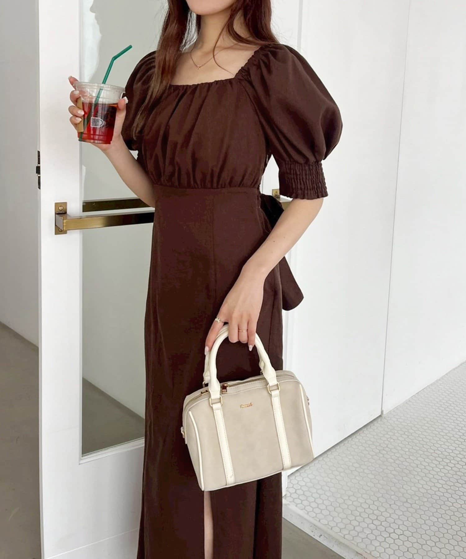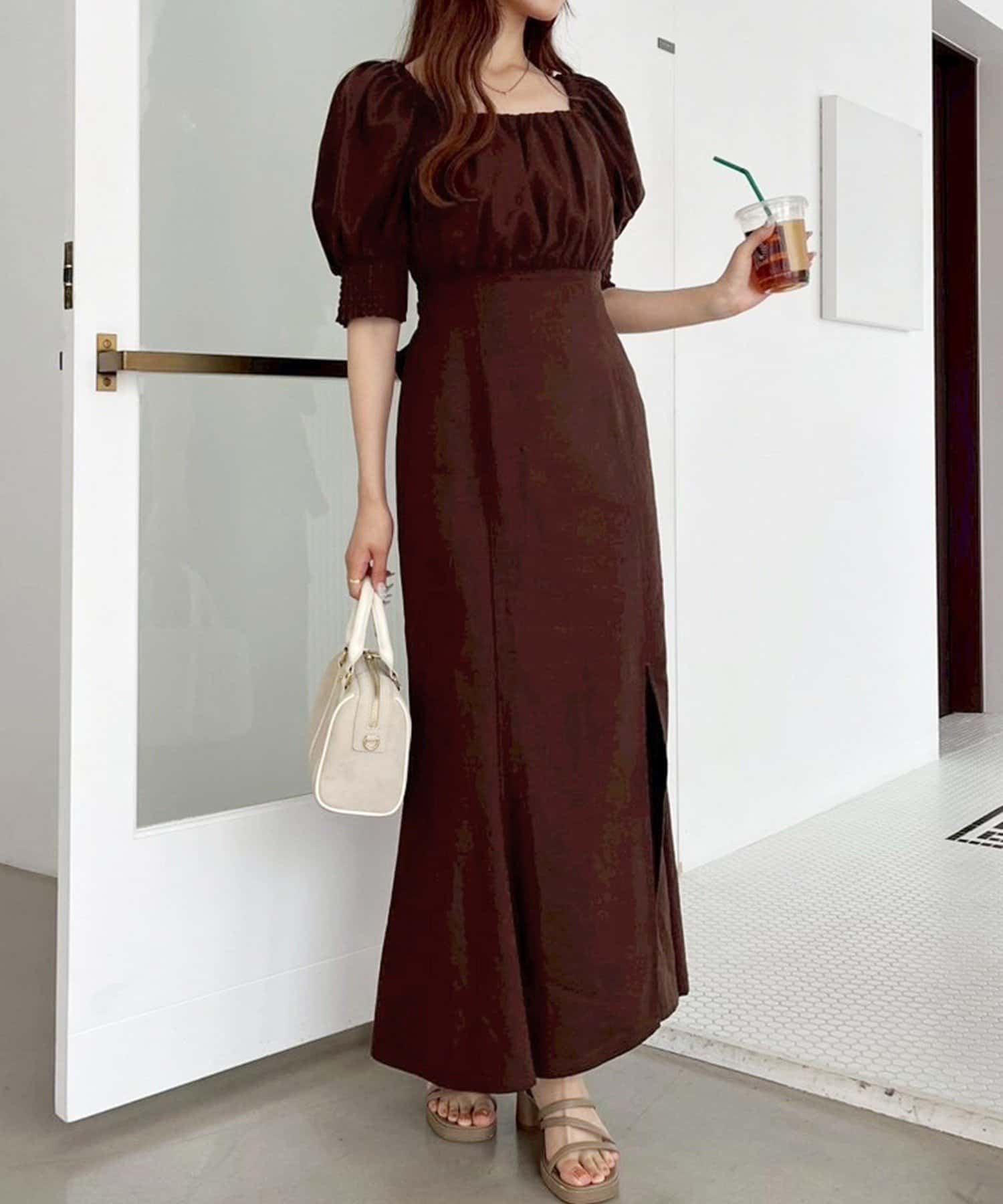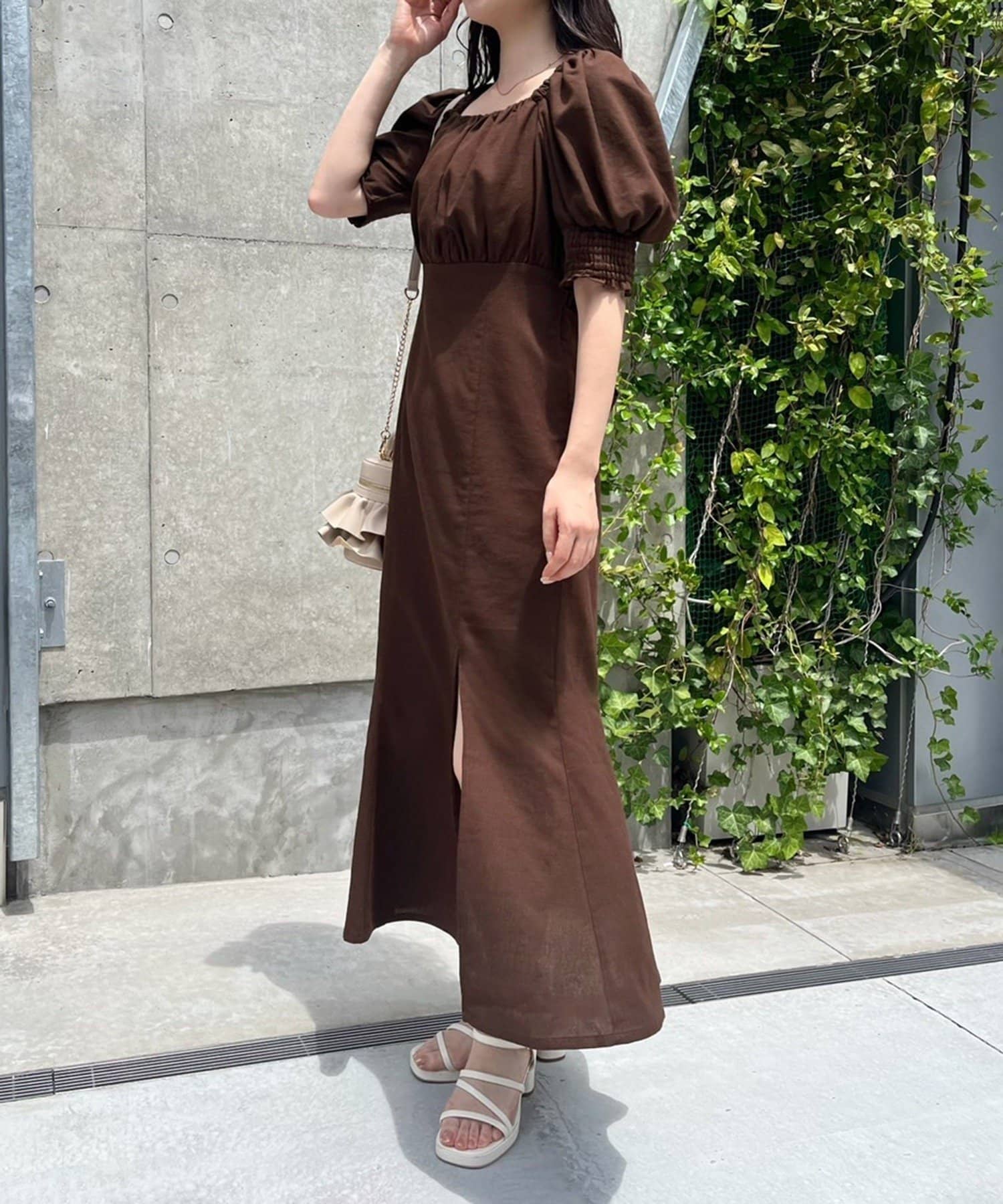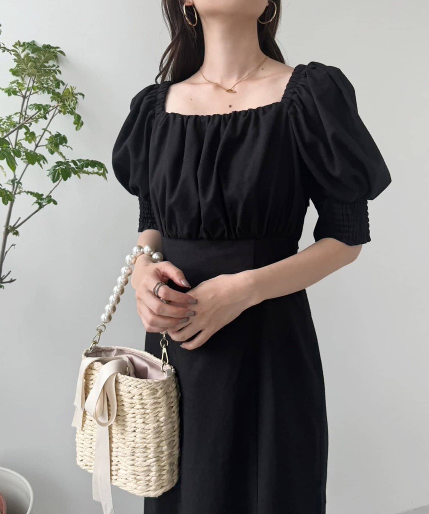 パフスリーブで、丸みのある形が女性らしさを演出してくれるワンピース