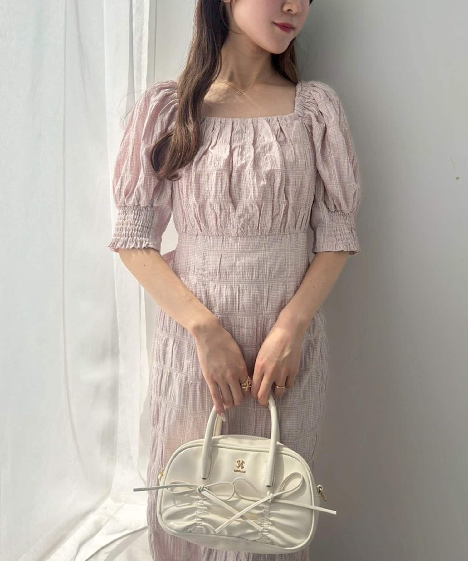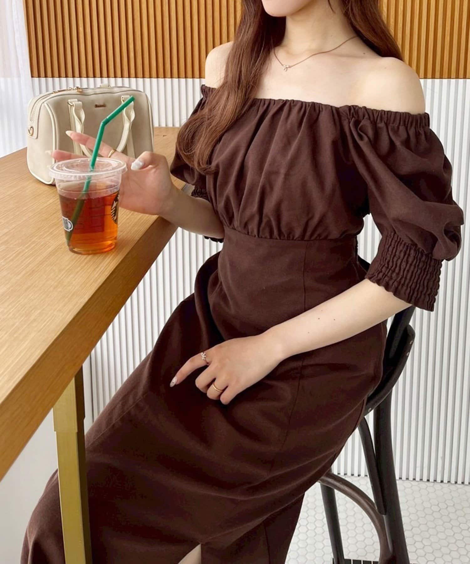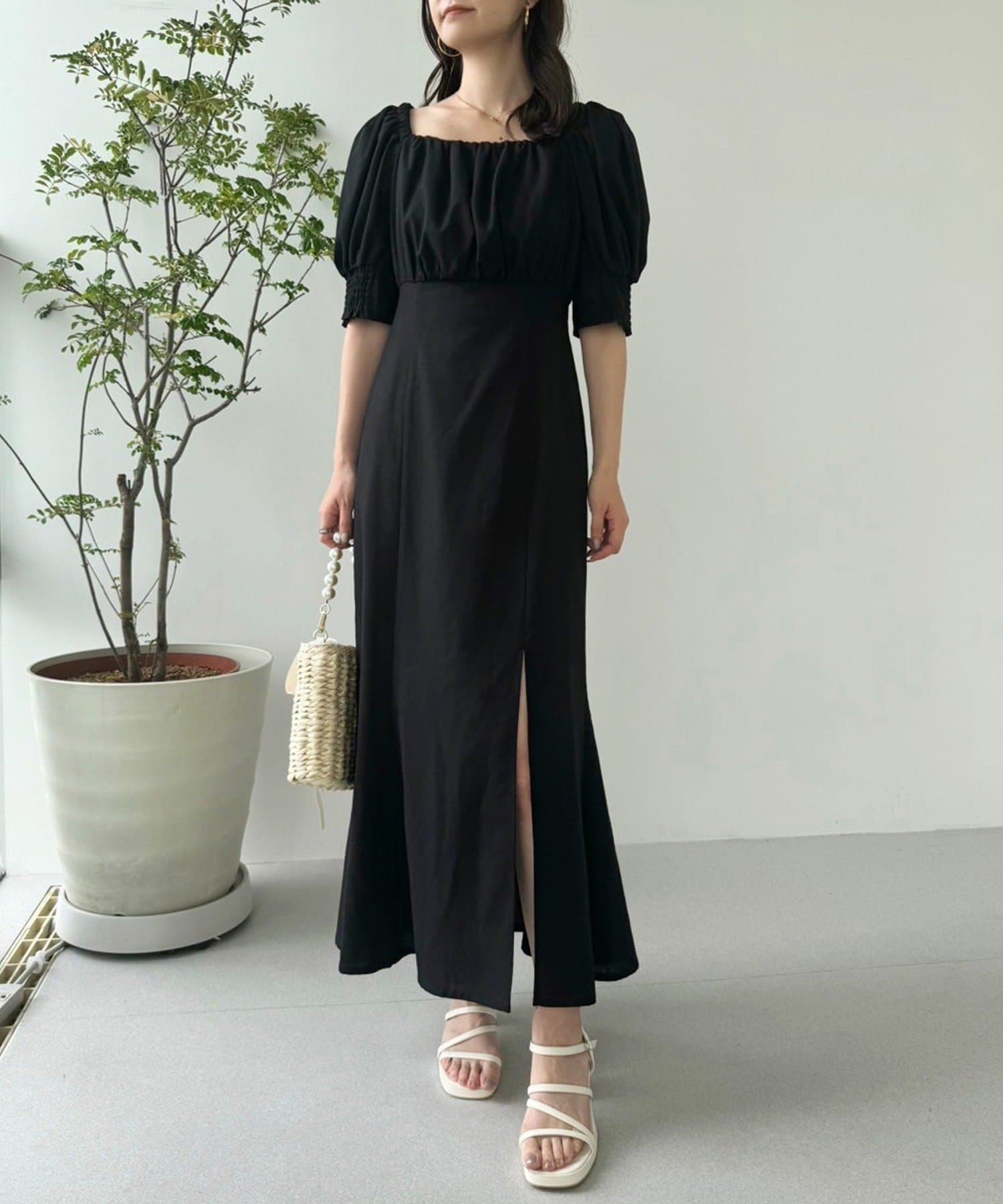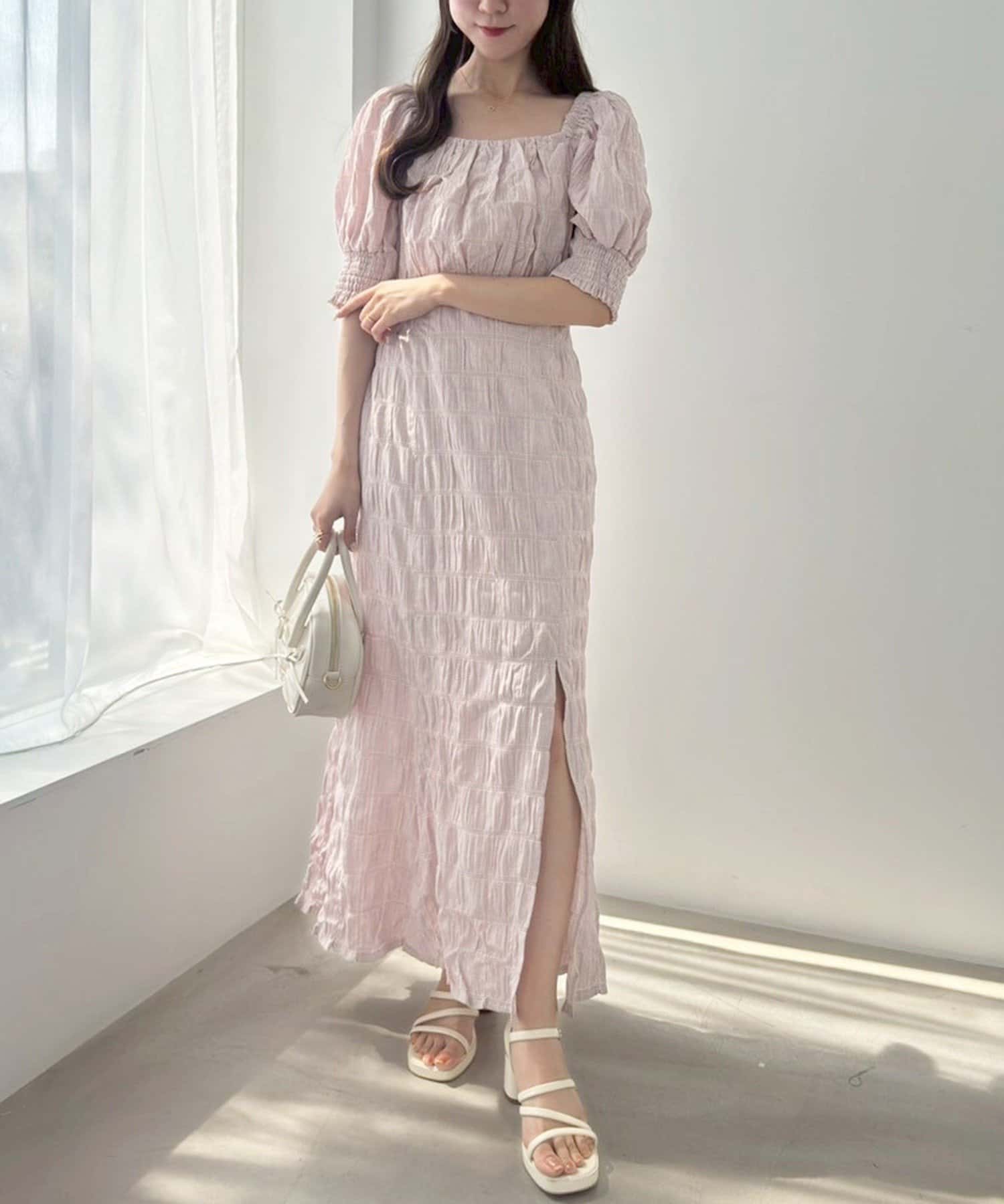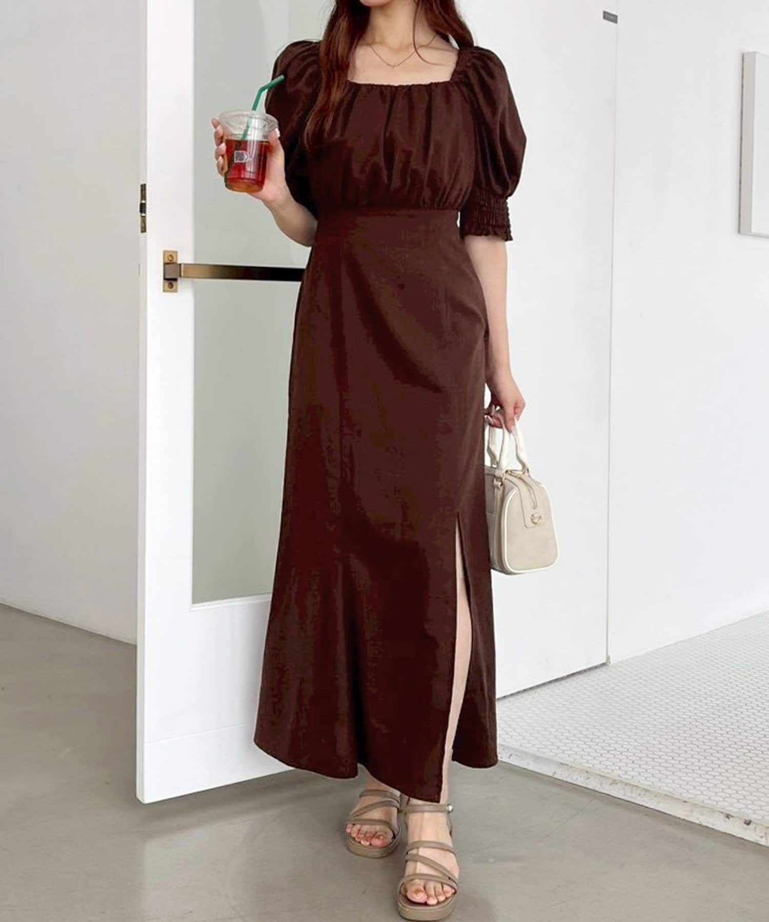 パフスリーブで、丸みのある形が女性らしさを演出してくれるワンピース