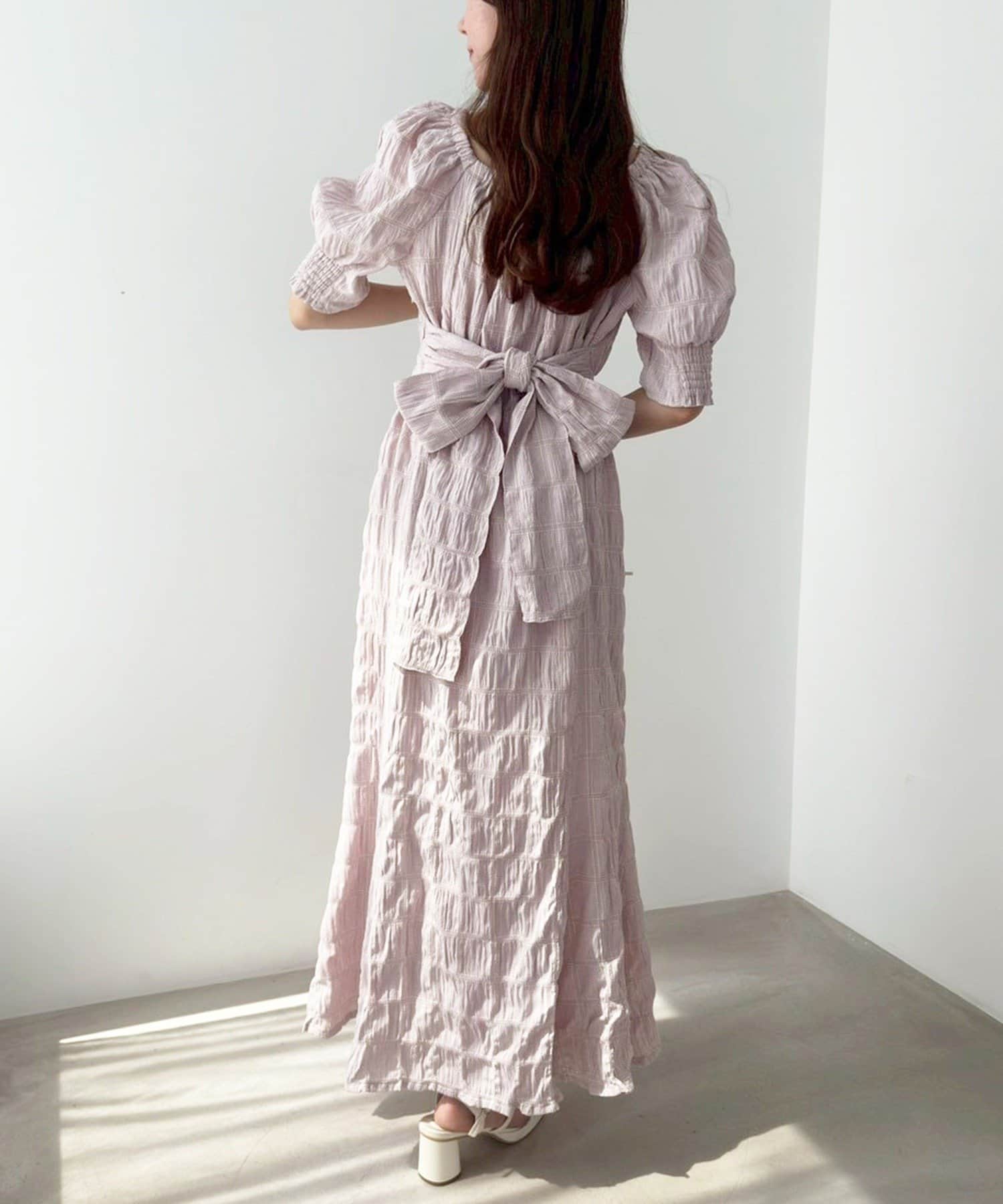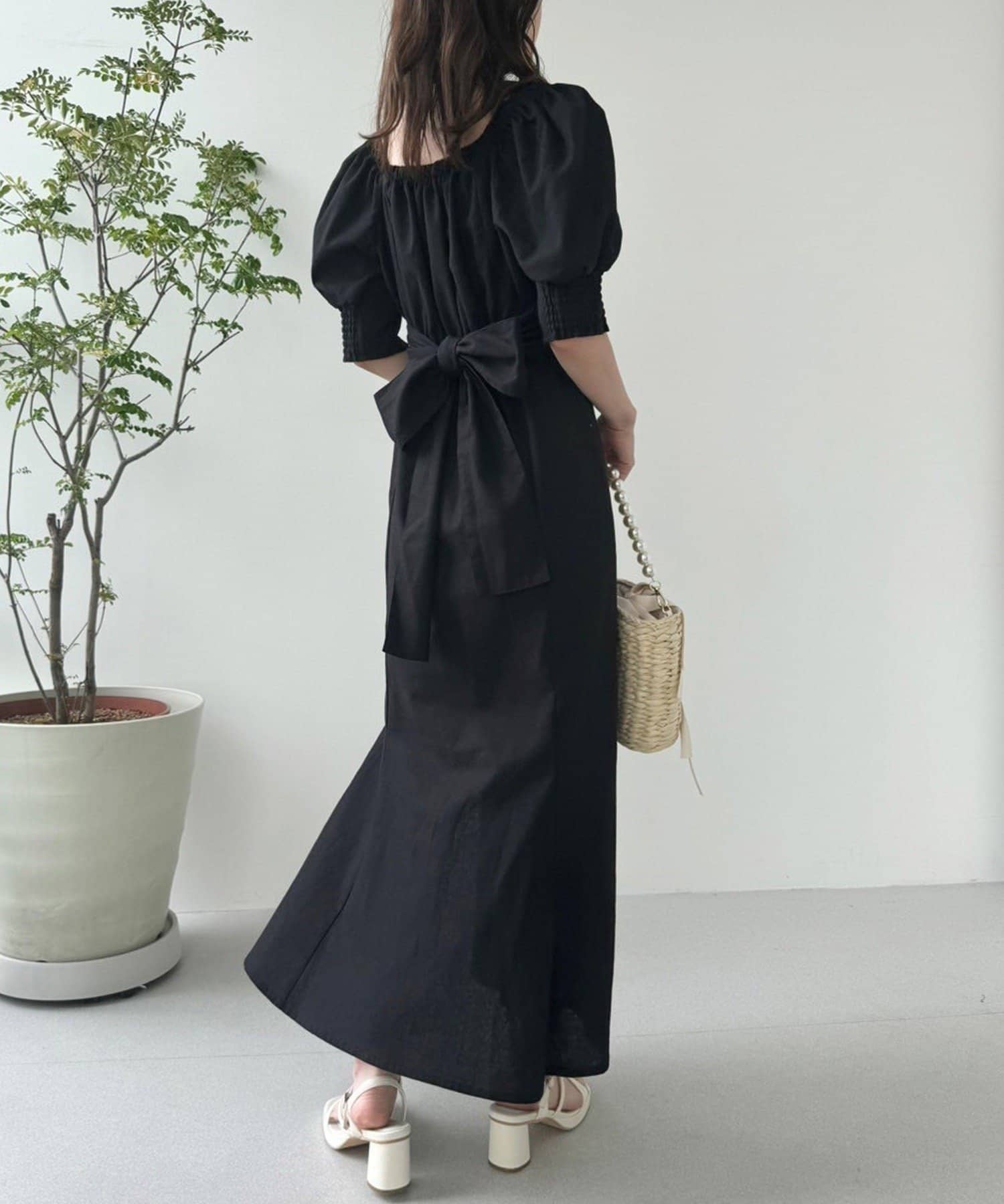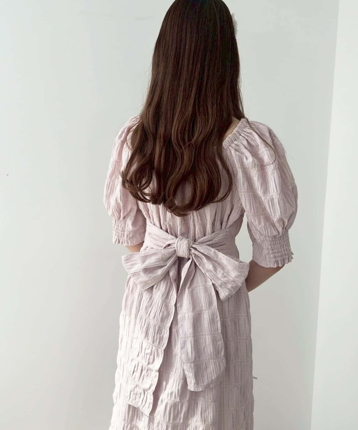 腰位置についているリボンでウエストをシェイプ出来るので、女性らしいラインを引き立てます。