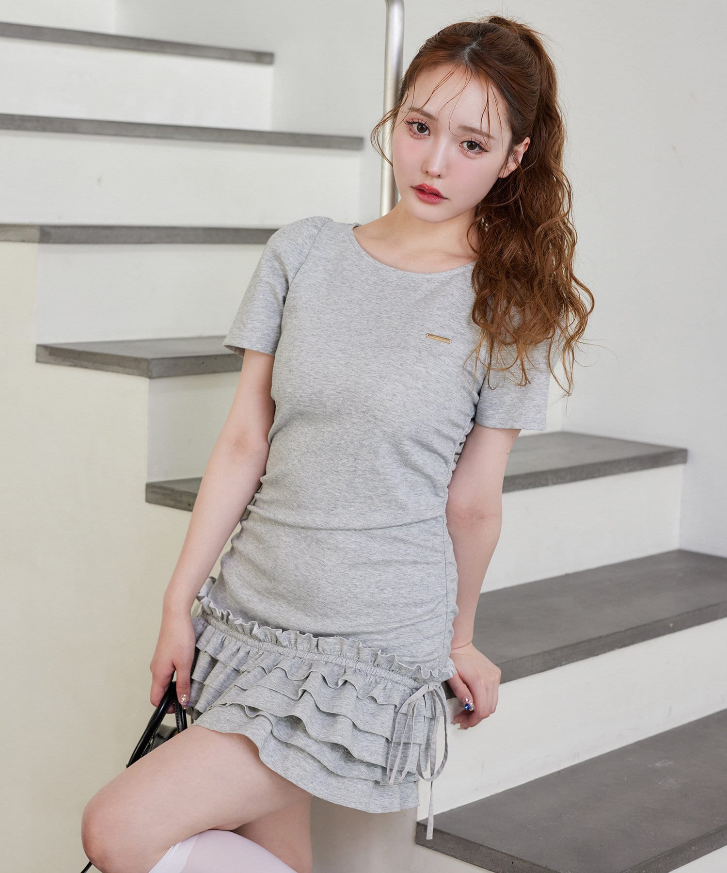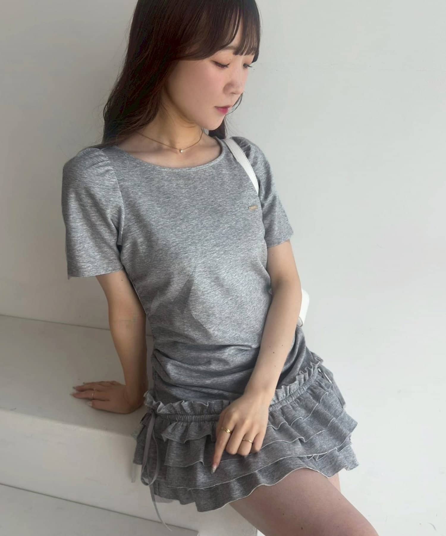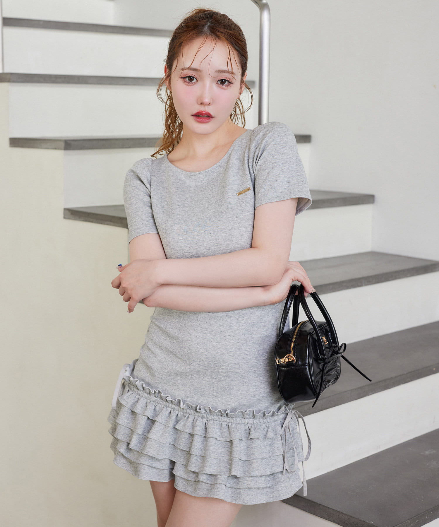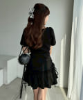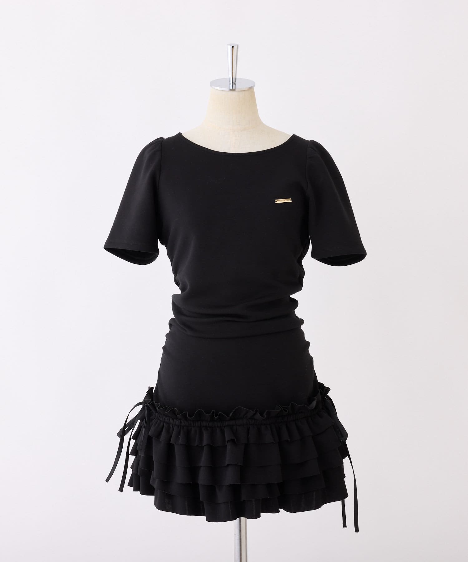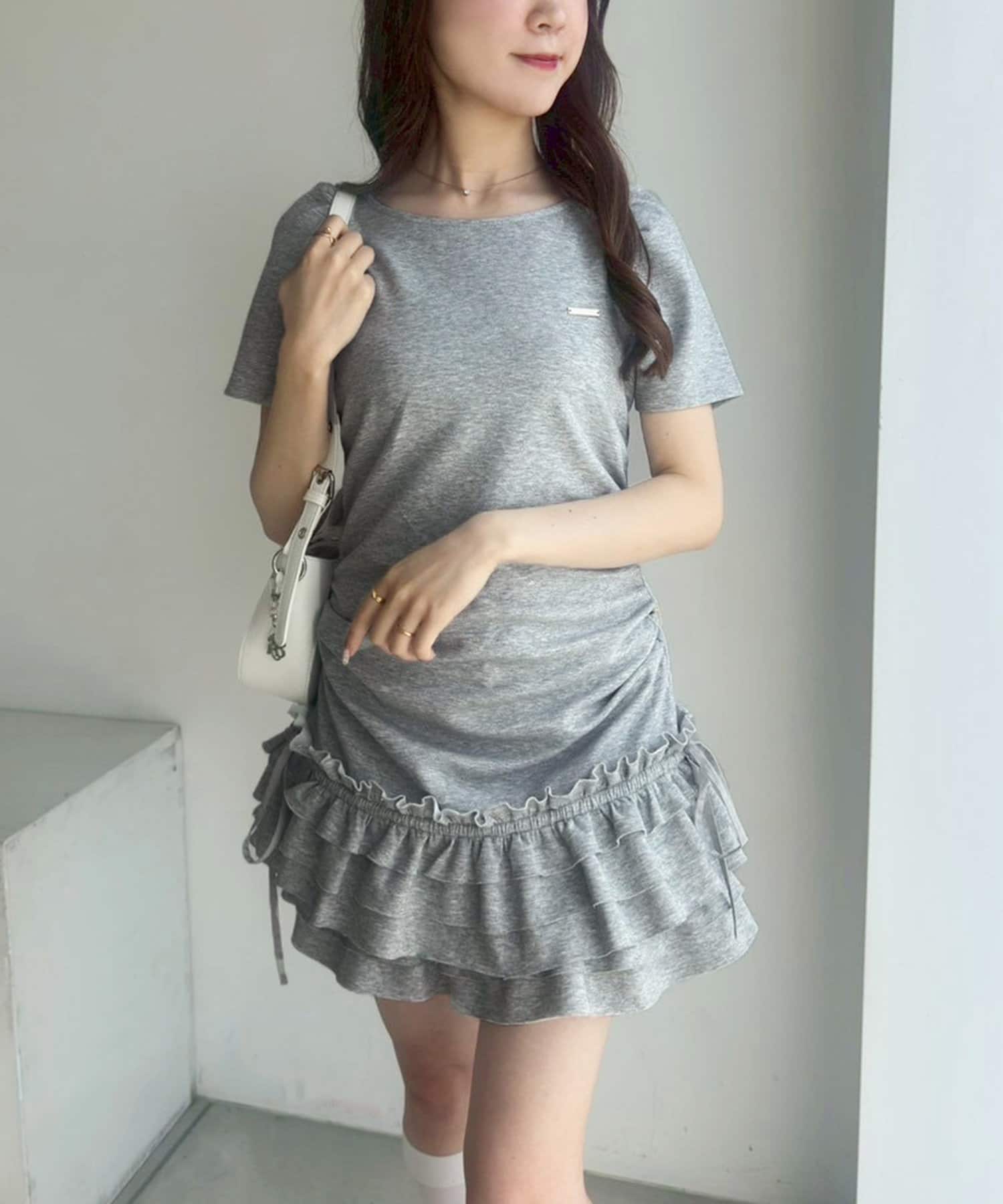スカート部分には段になったティアードフリルが施されており、動くたびにふんわりと揺れてフェミニンな印象に。