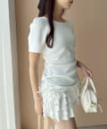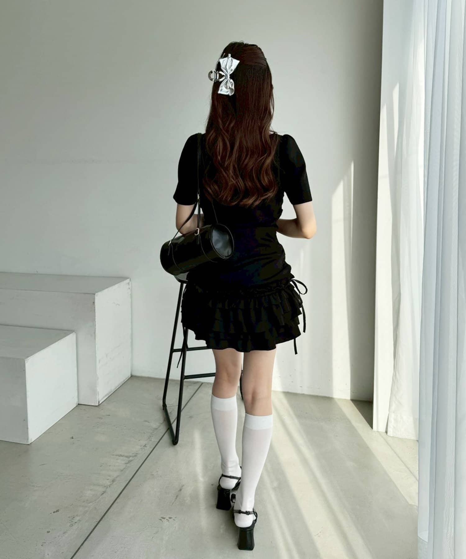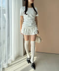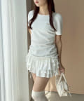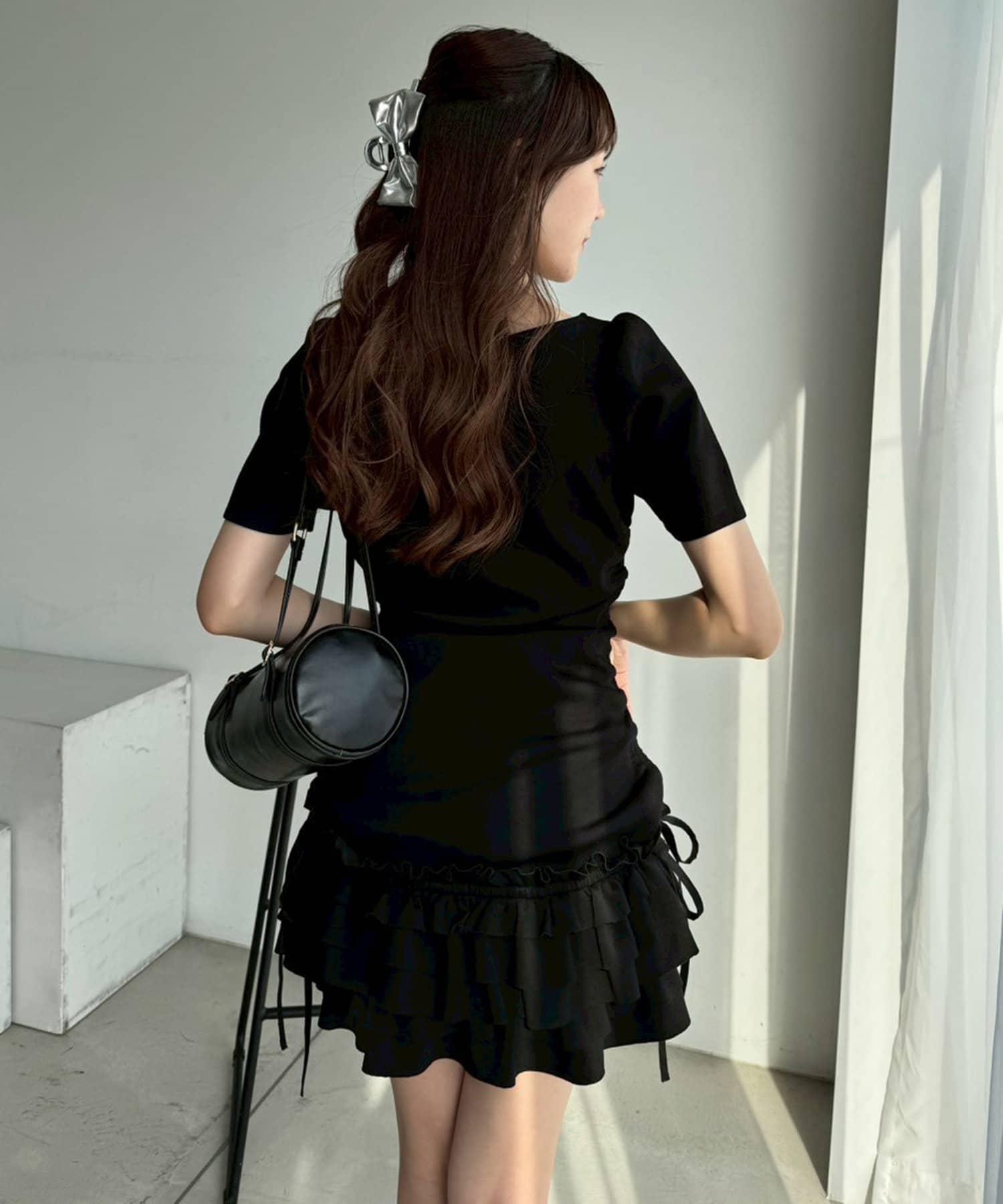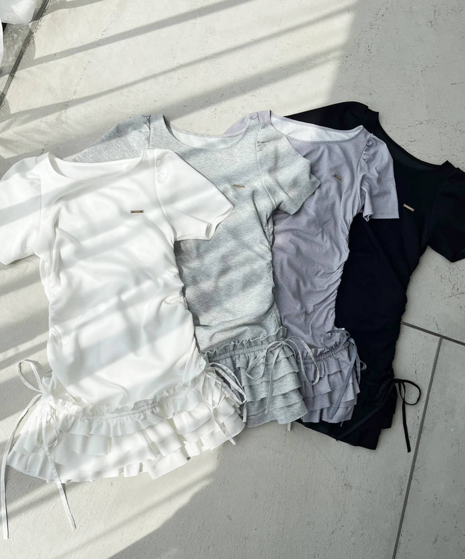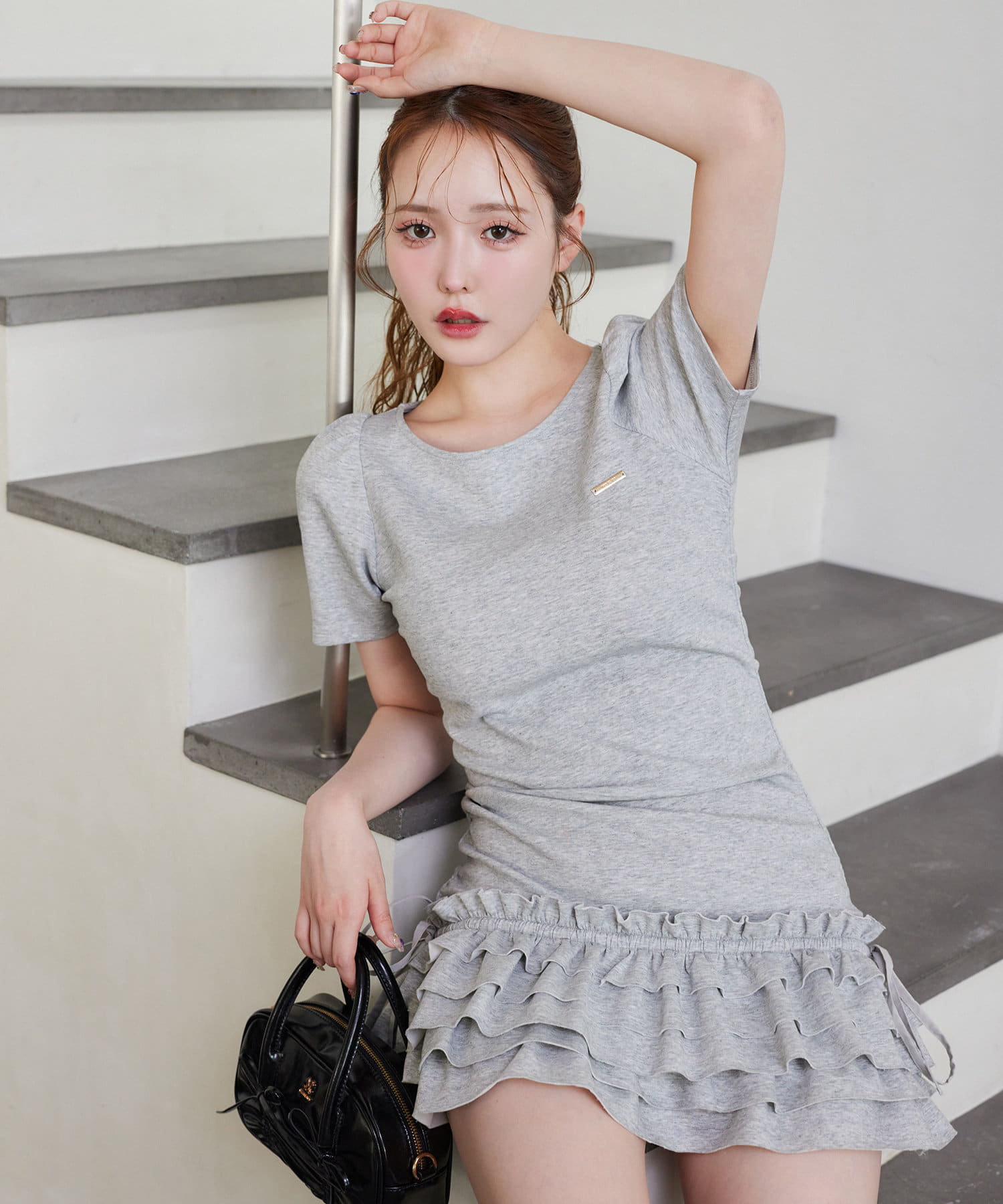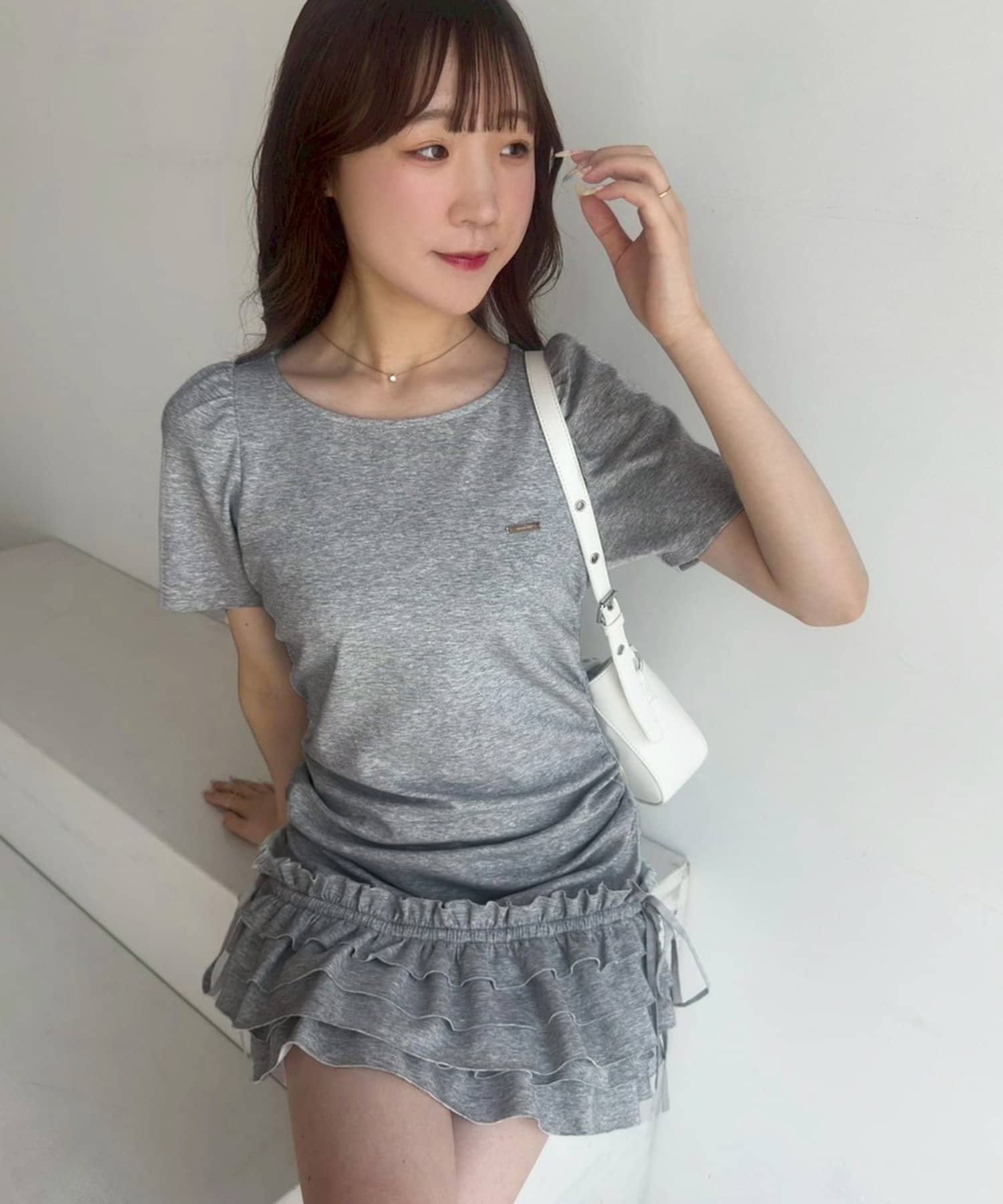 スカート部分には段になったティアードフリルが施されており、動くたびにふんわりと揺れてフェミニンな印象に。