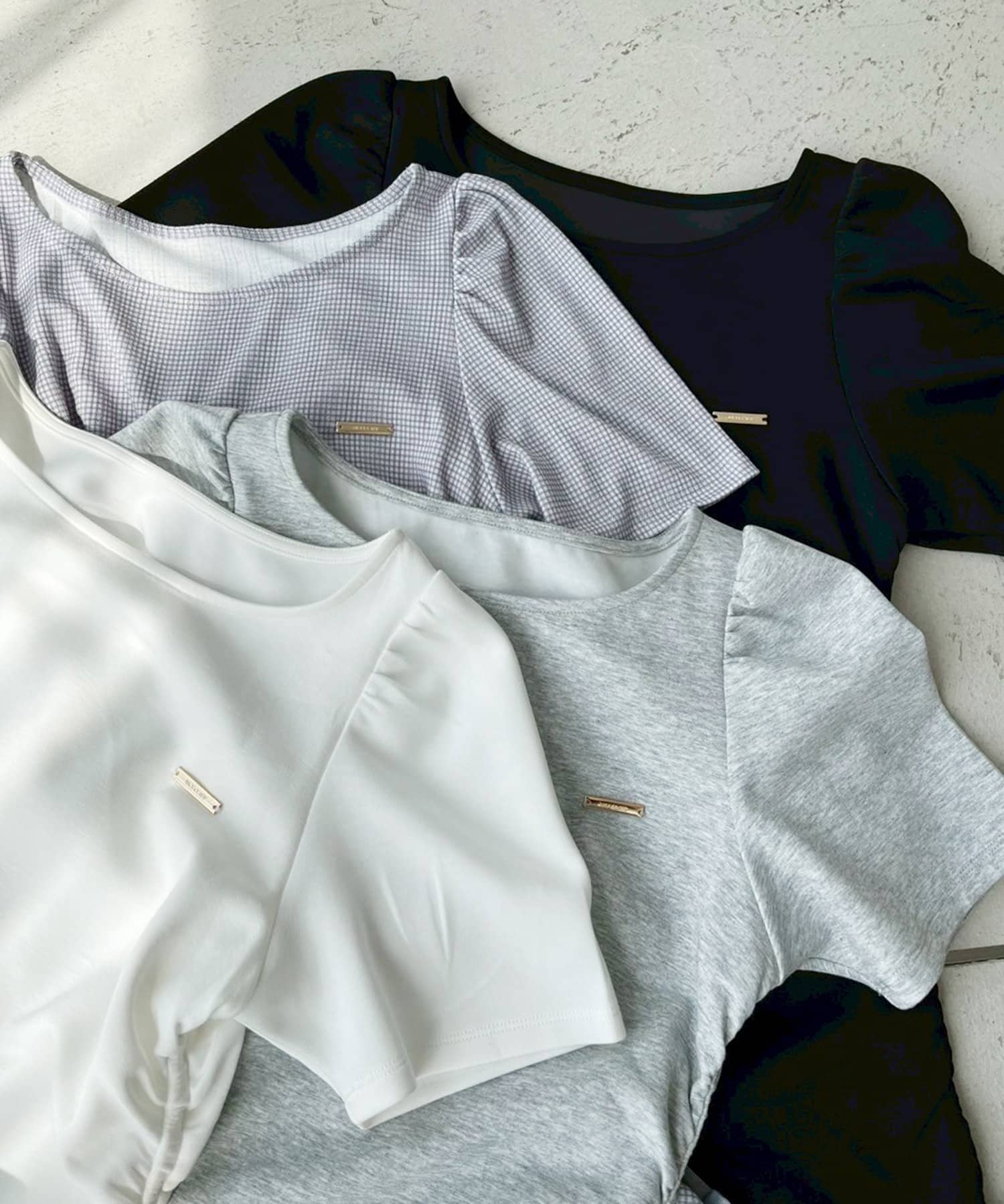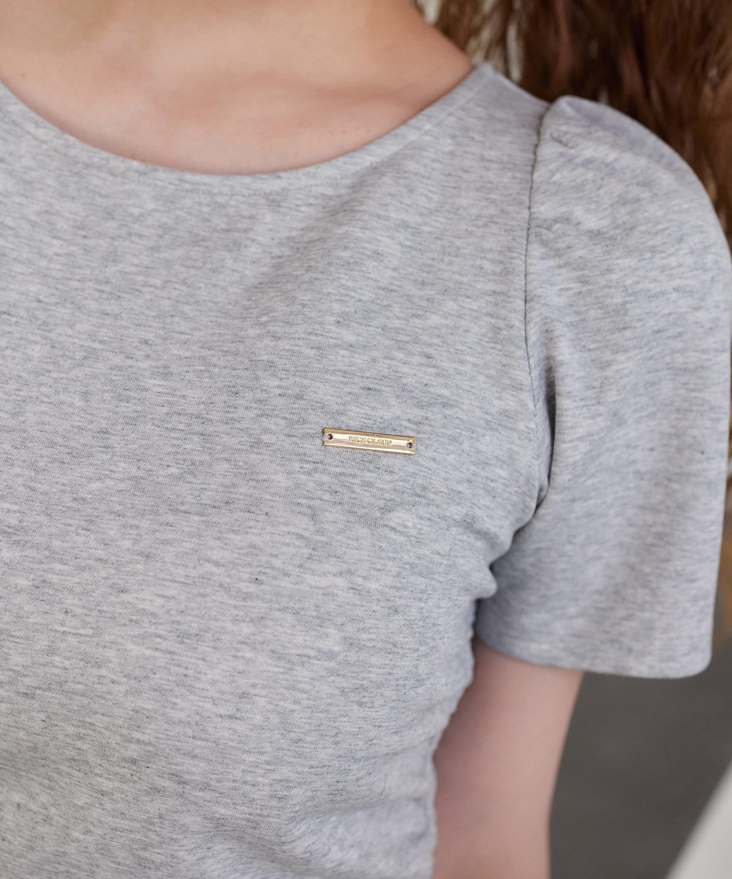 胸元にプレートを施し、シンプルなデザインの中でアクセントになります。
