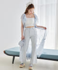 ウエストはシャーリング仕様で、身体にフィットしながらもストレスフリーな着心地が魅力。