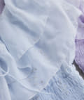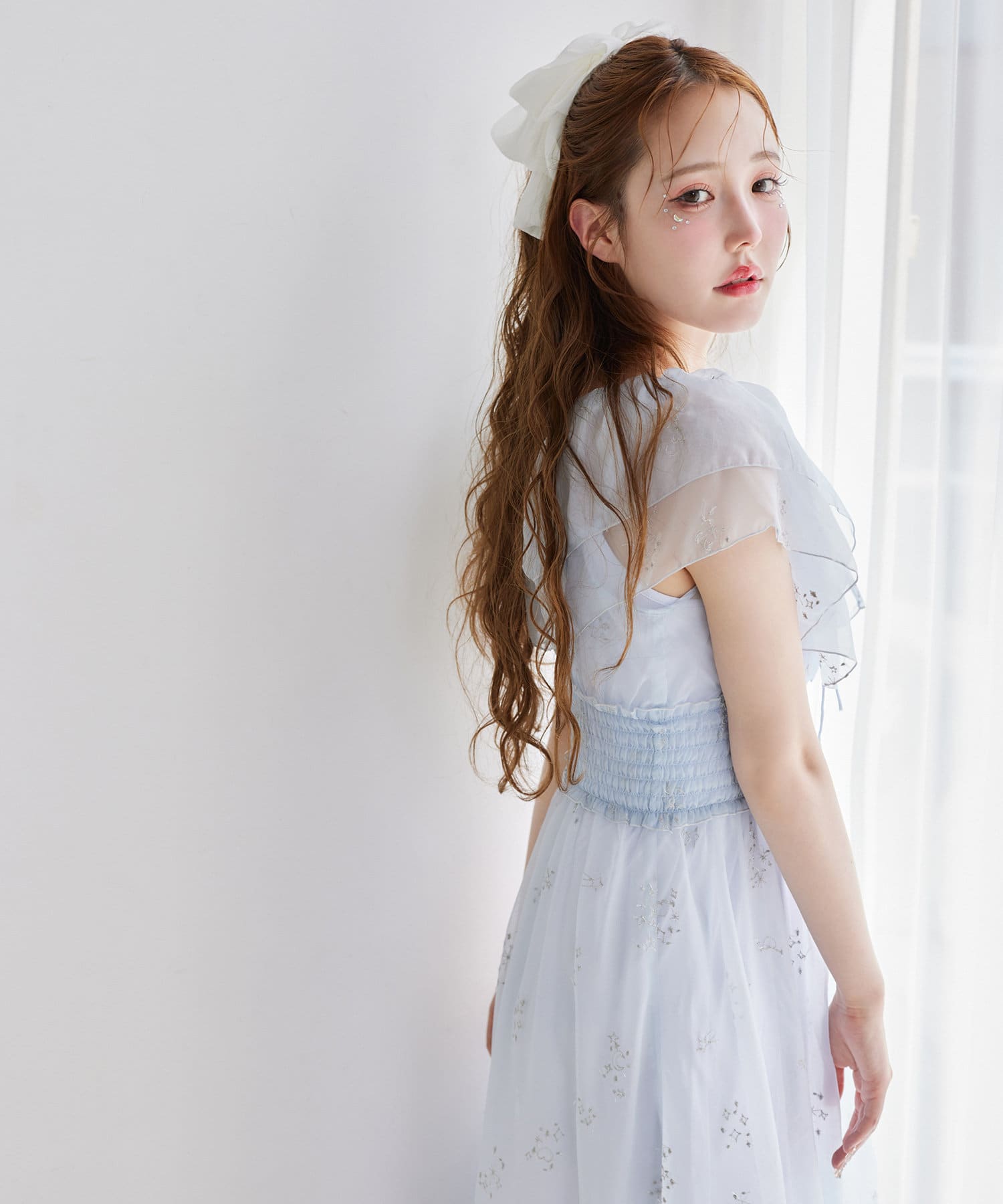 歩くたびにふわっと揺れる軽やかな素材感が、特別な日にもぴったりな一着です。