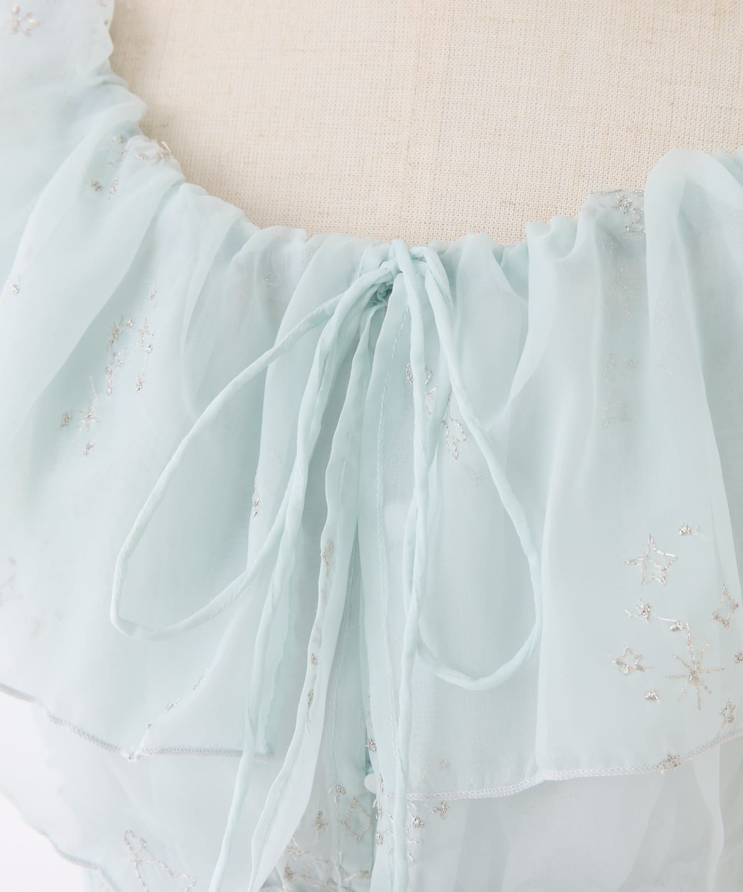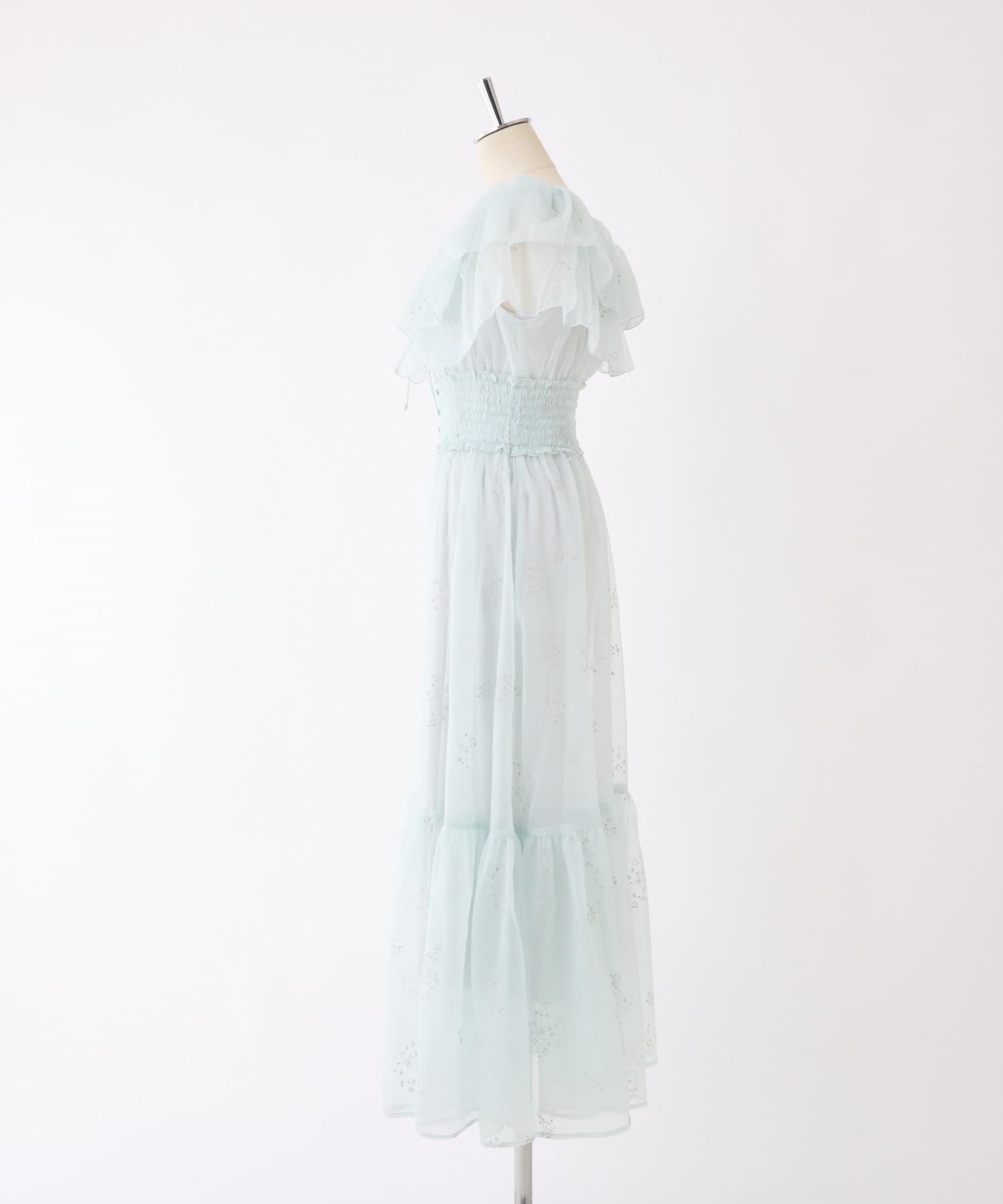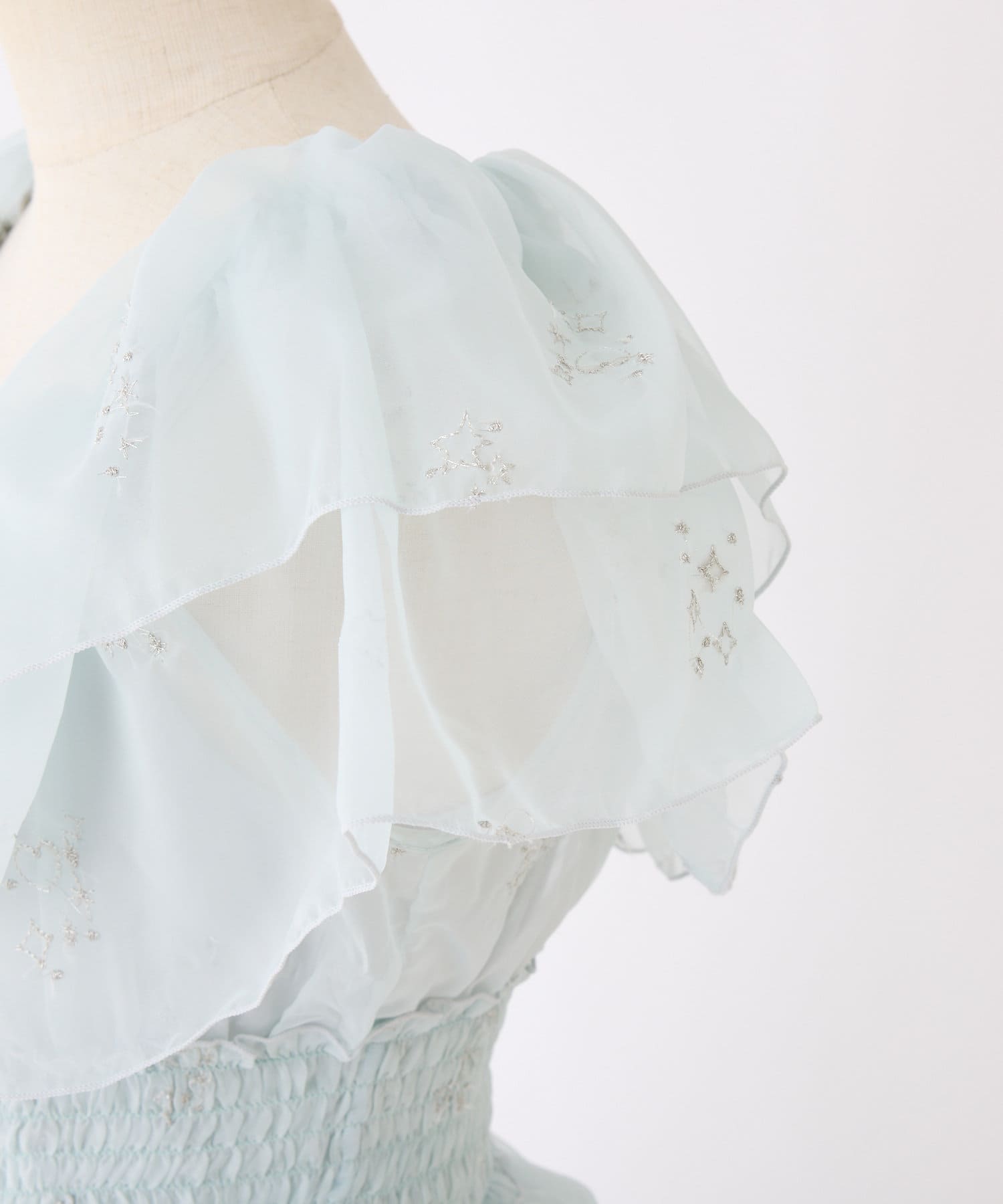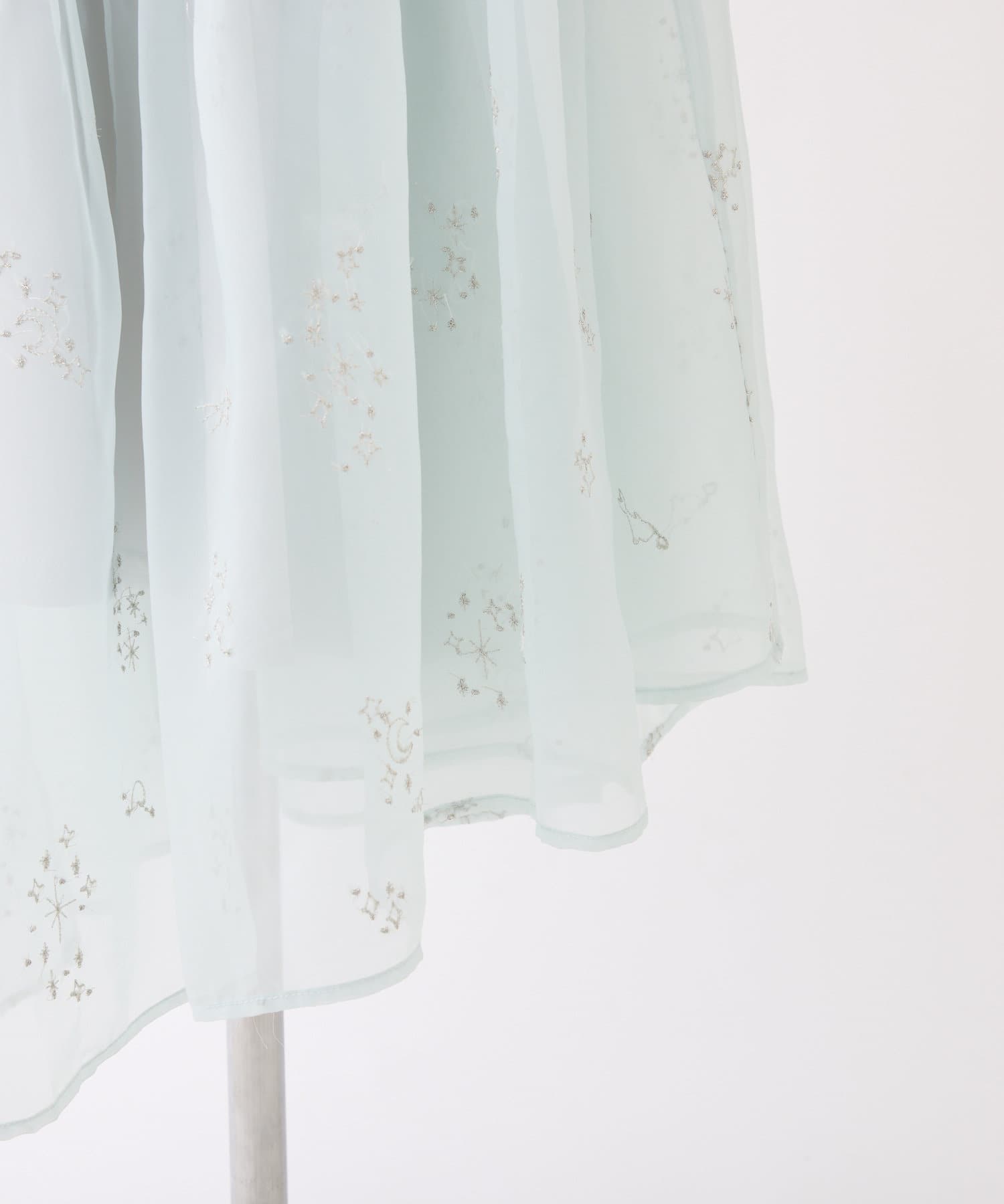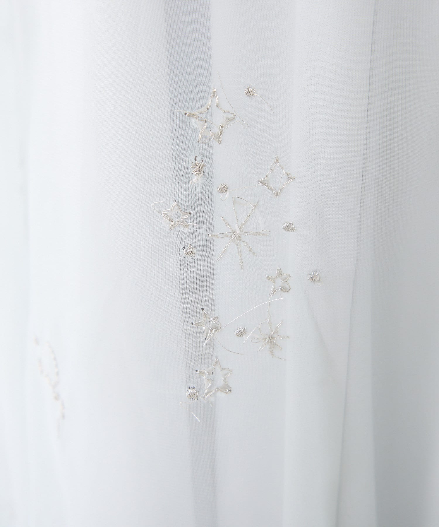 オリジナルの星座刺繍が全体にちりばめられた、幻想的なデザインが目を惹くシアー素材のロングワンピース。