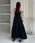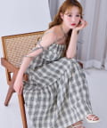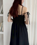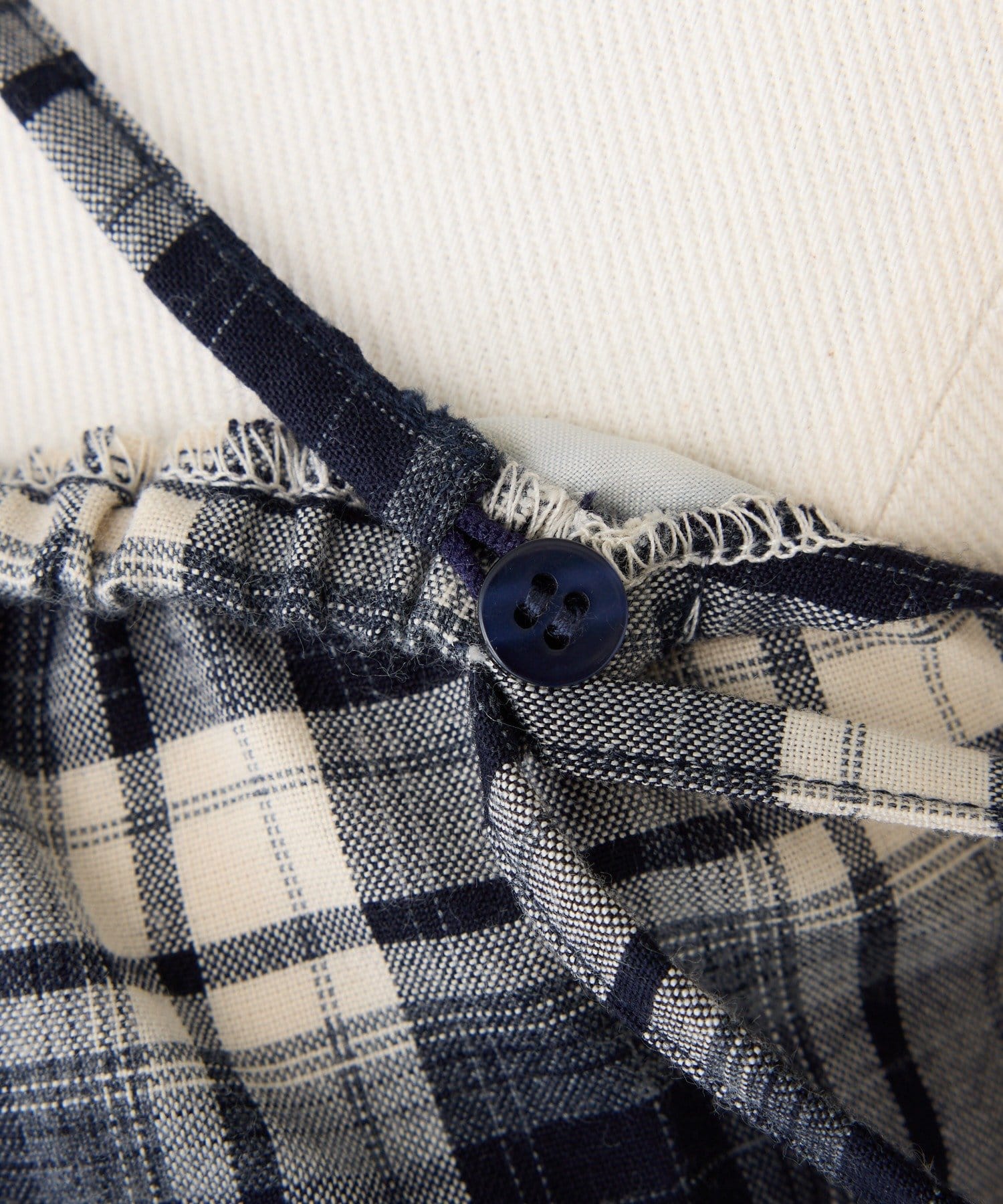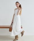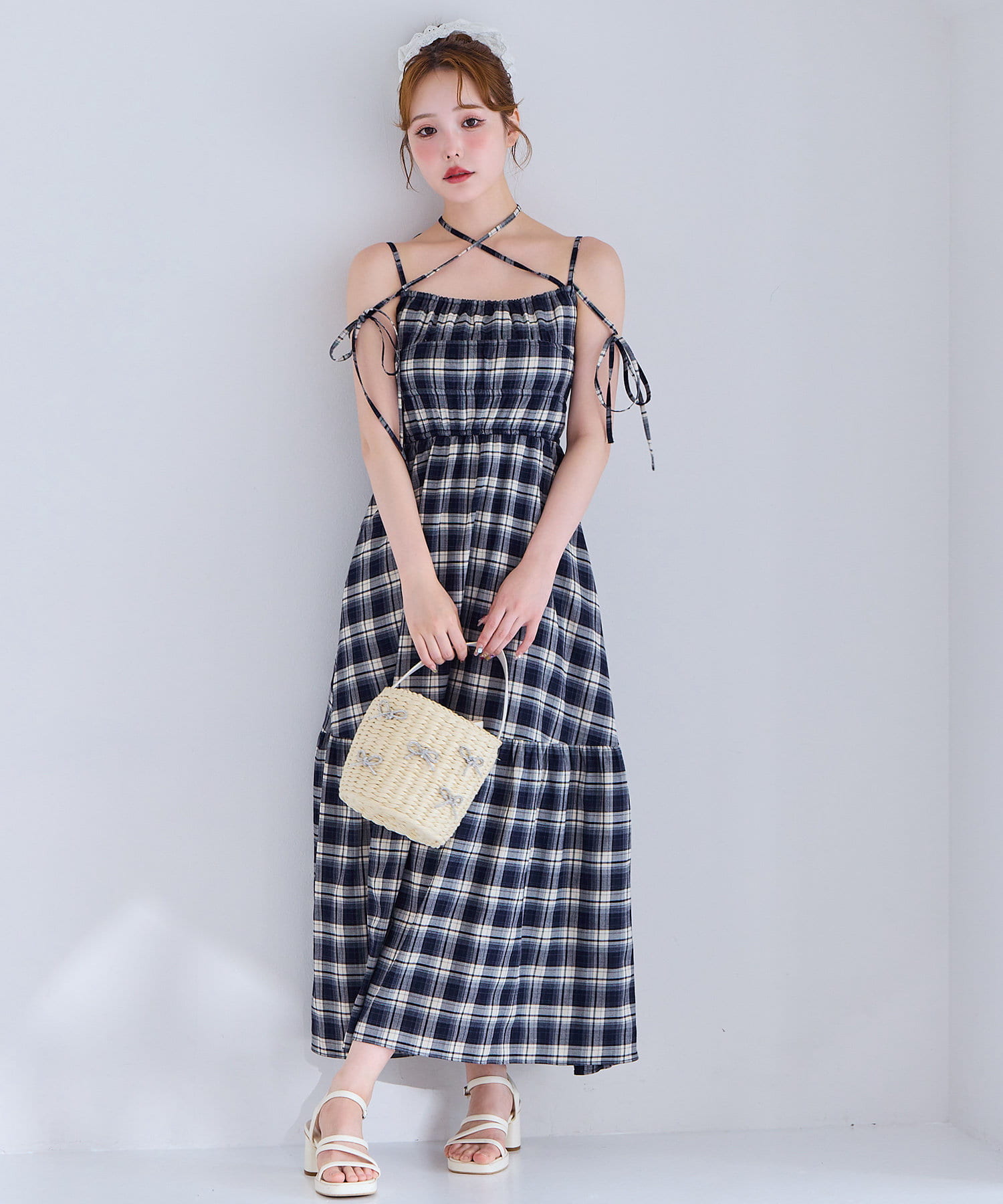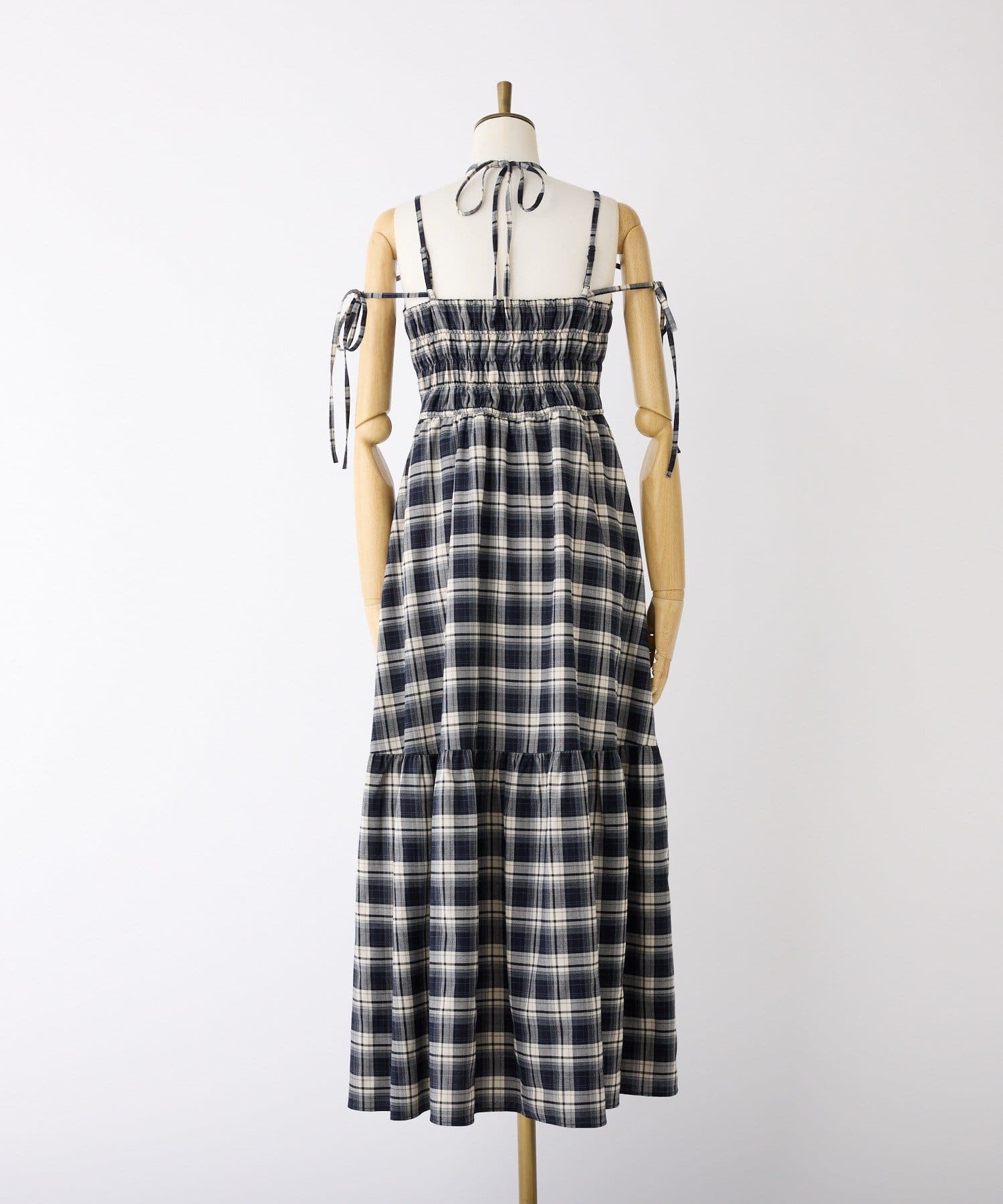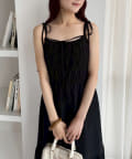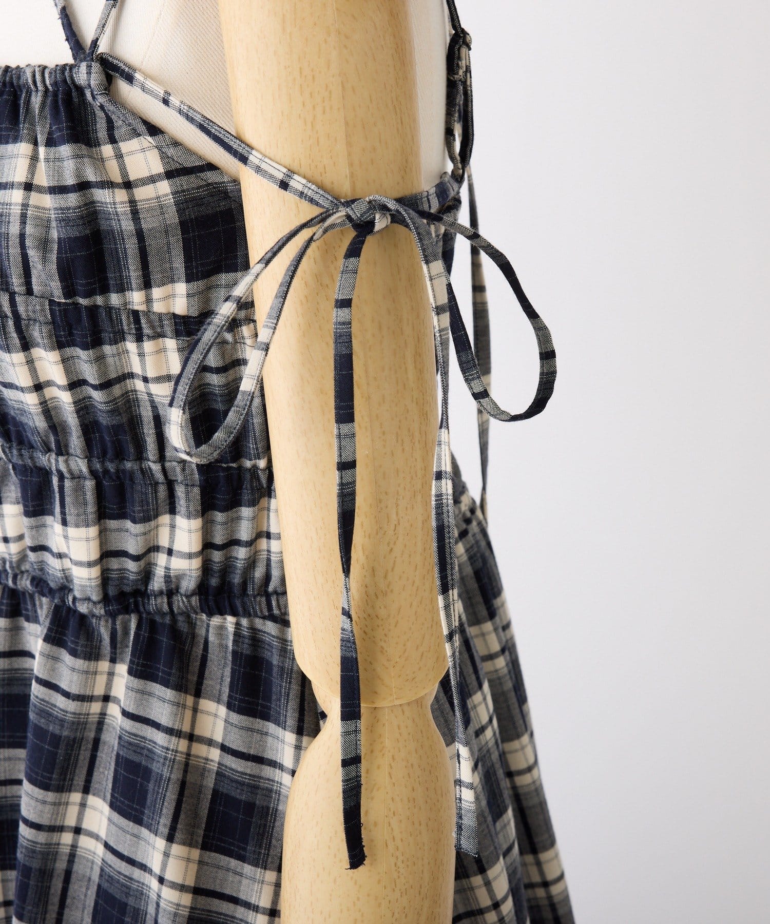 ホルターネックの紐はボタンで取り外しが出来て印象を変えられます。