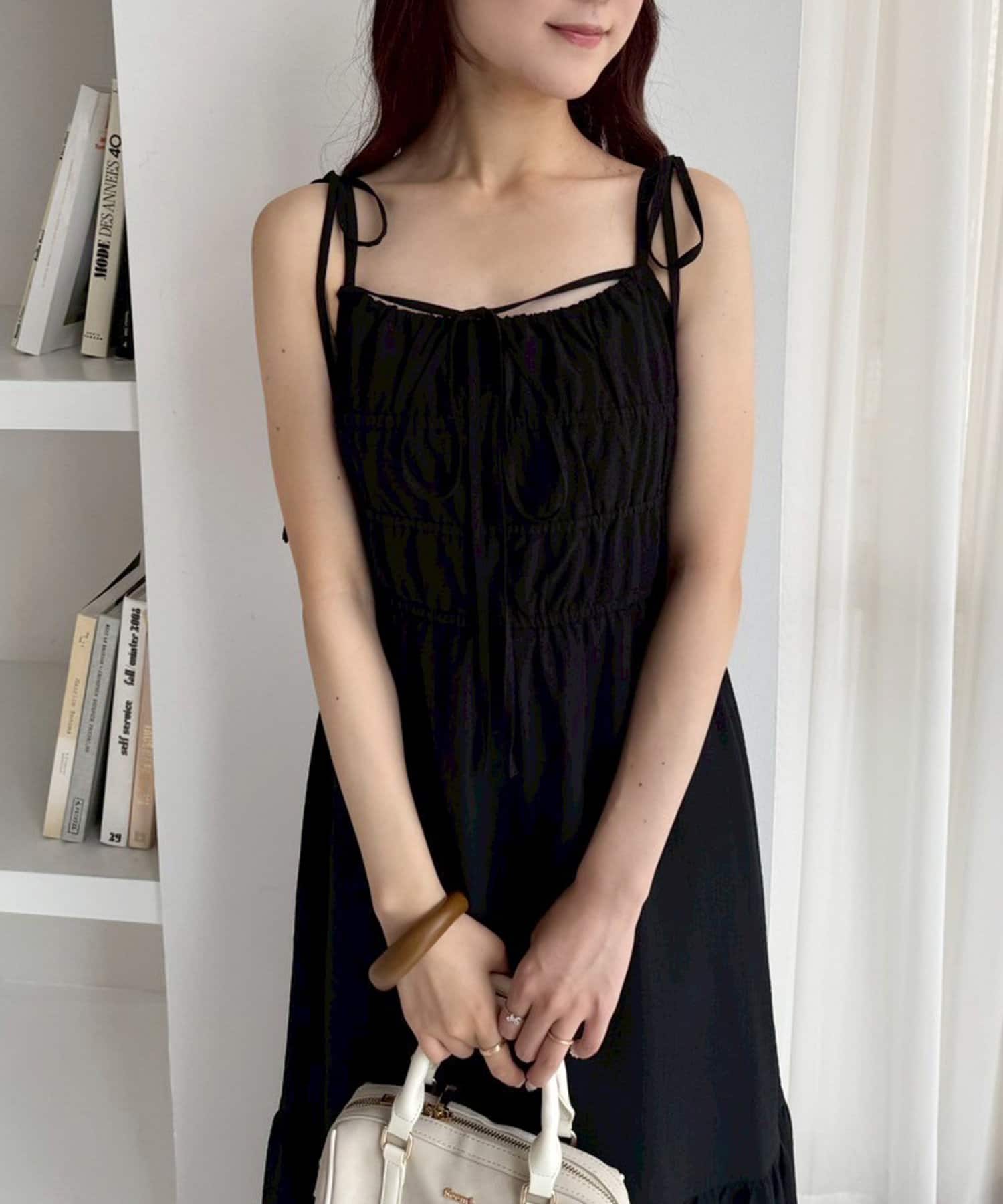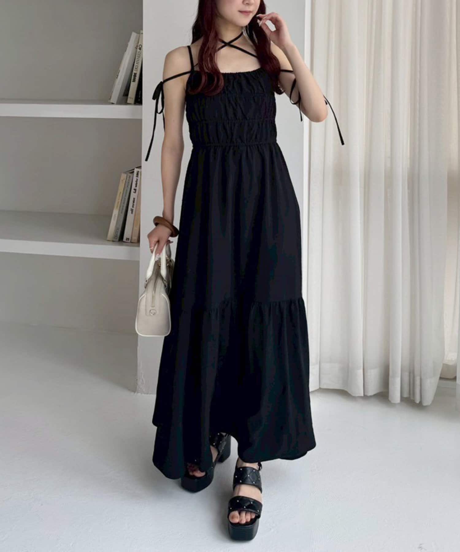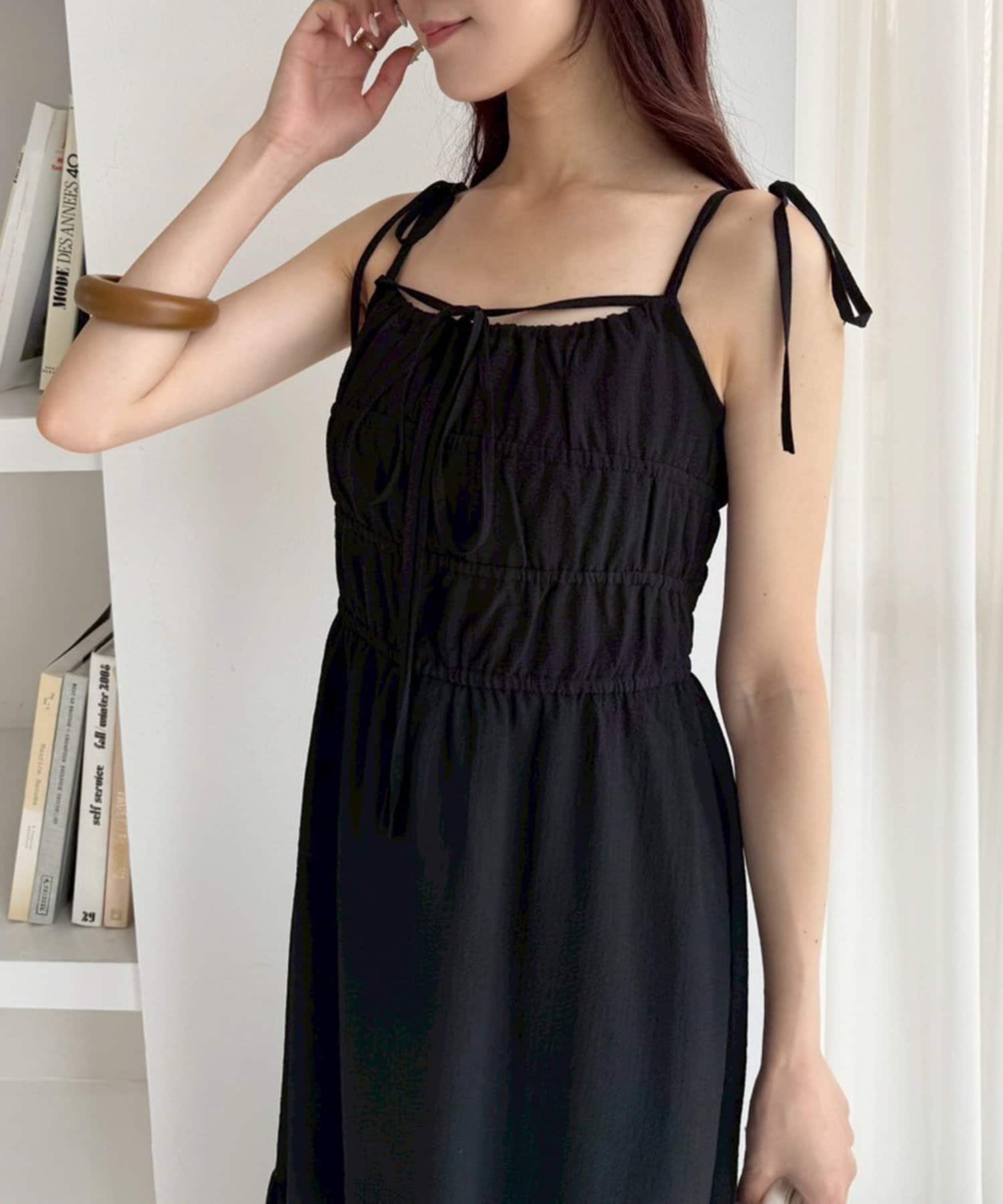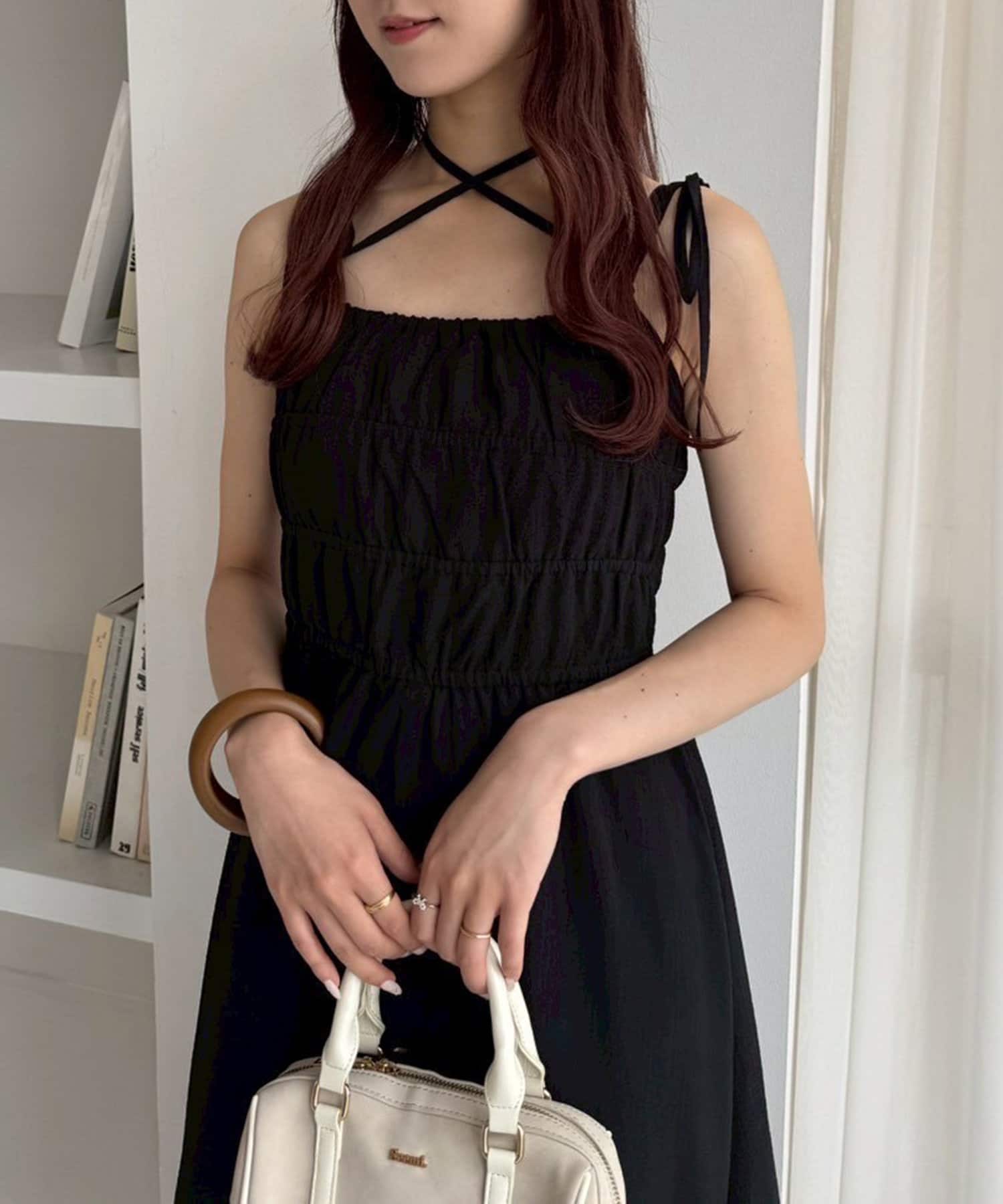 シャーリングデザインがウエストラインもキレイに見せてくれるワンピース。