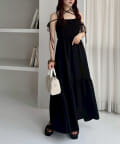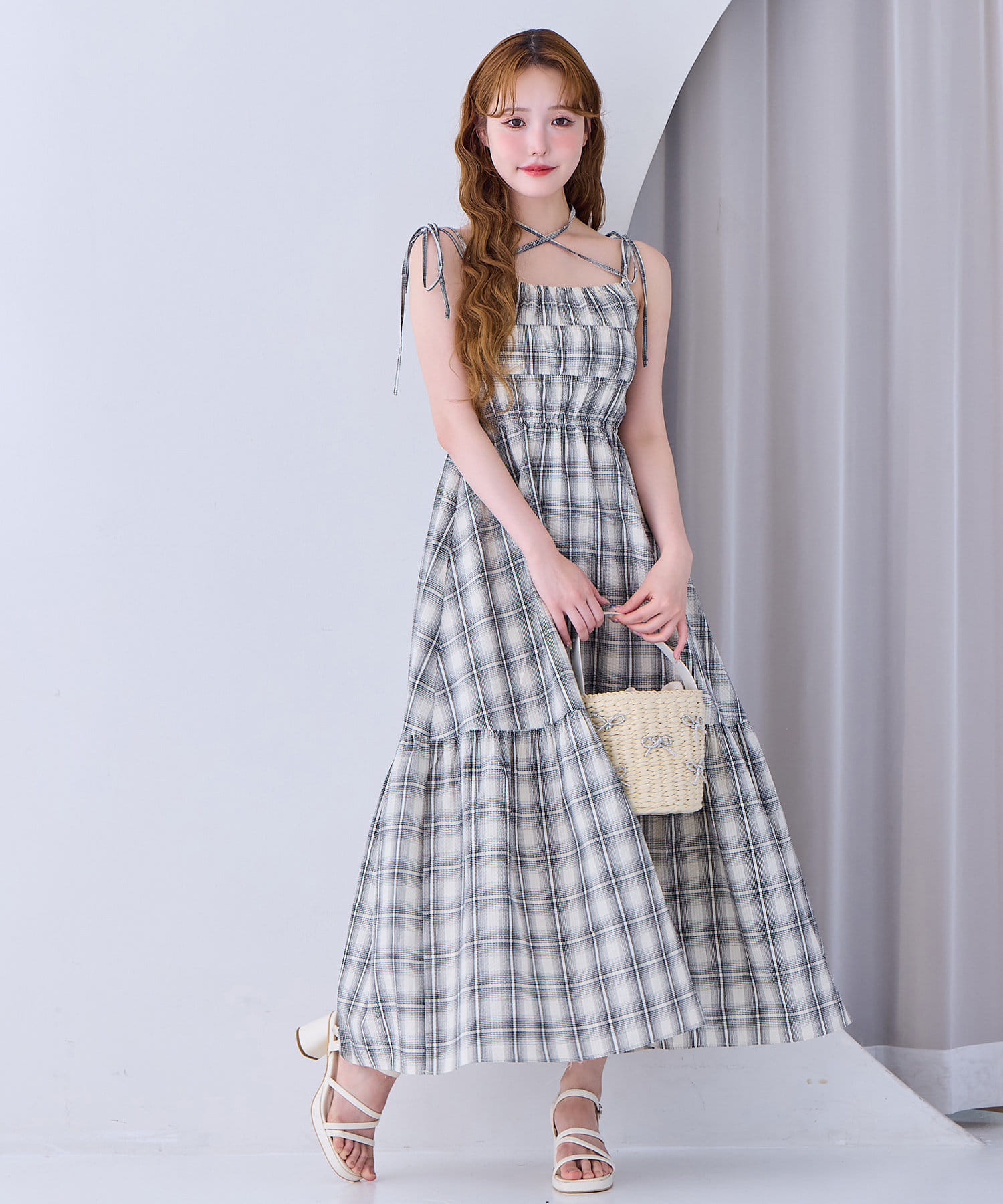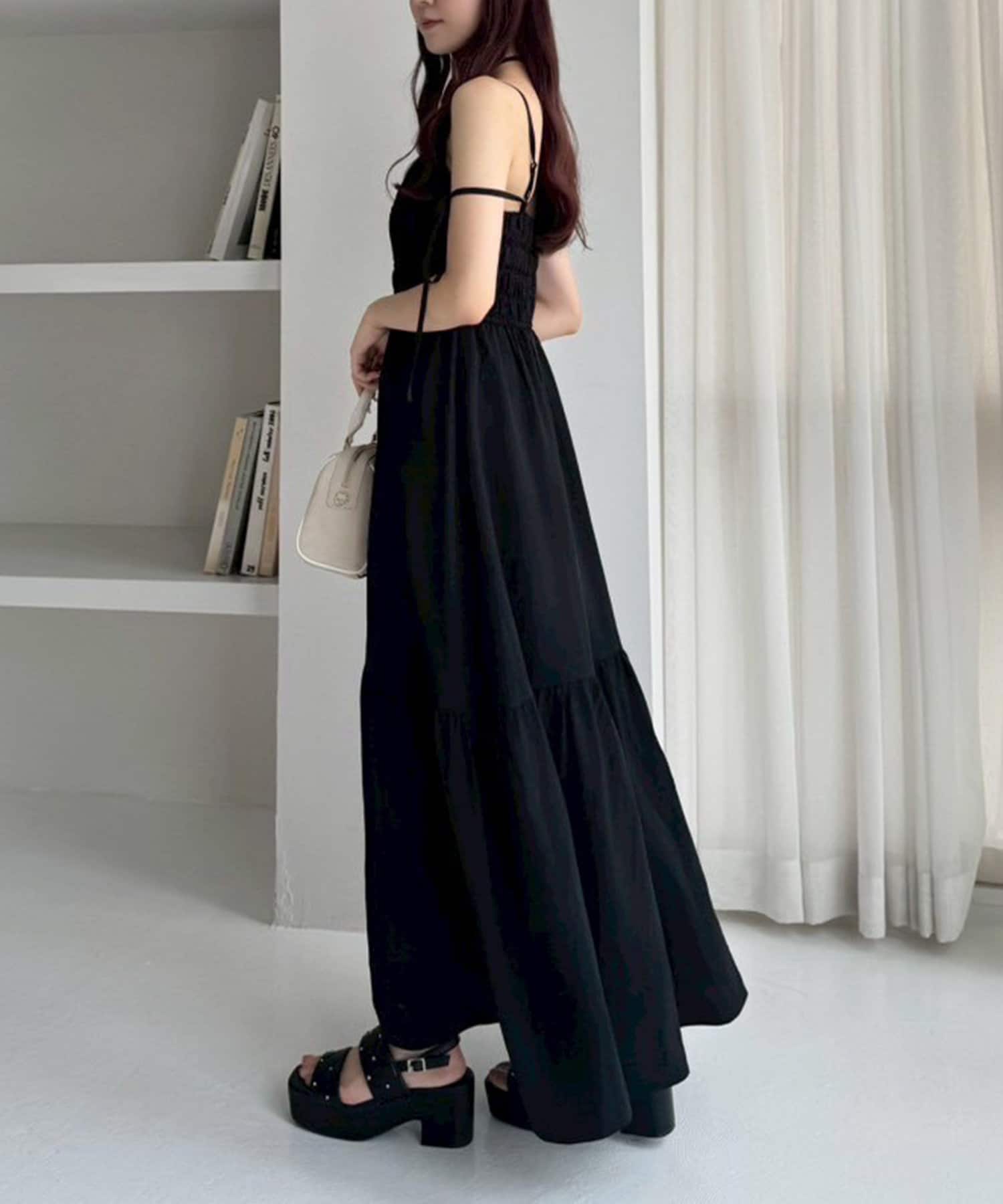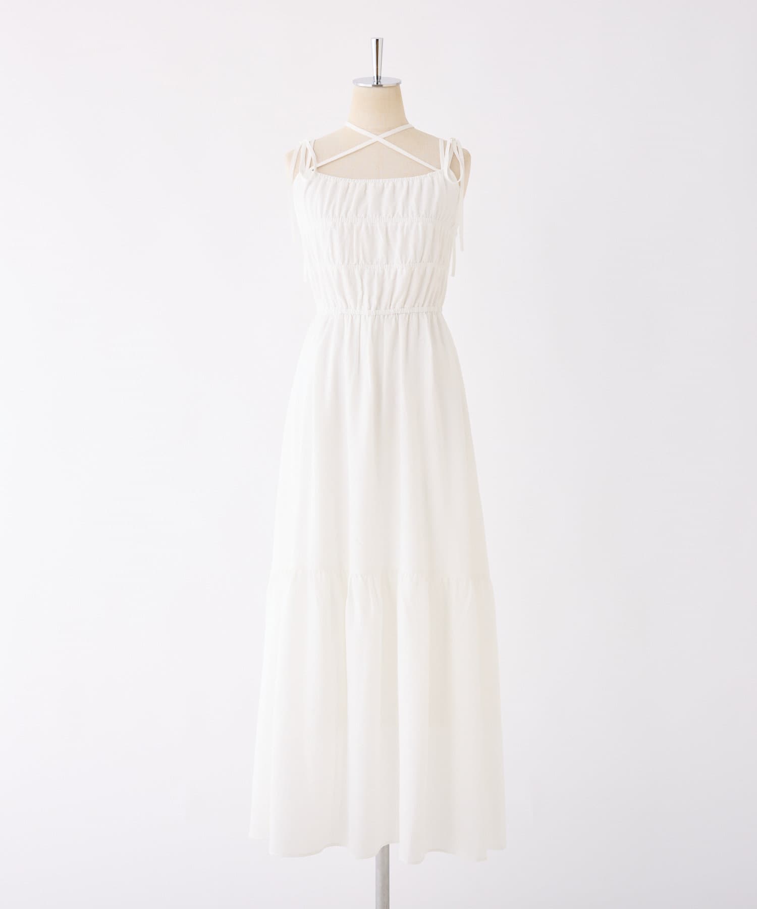 シャーリングデザインがウエストラインもキレイに見せてくれるワンピース。
