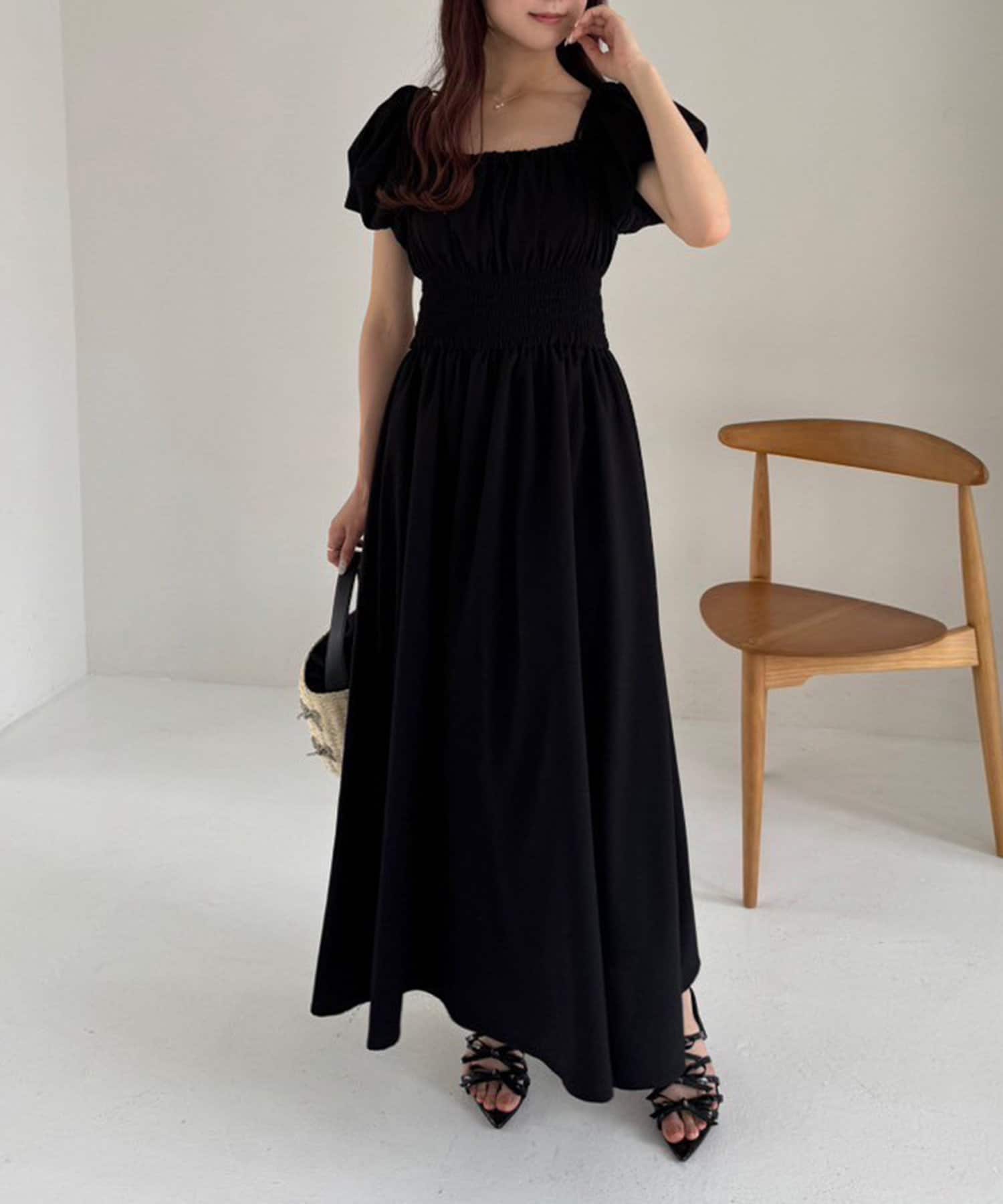 ウエストはシャーリングとなっているのでフィット感も良く、