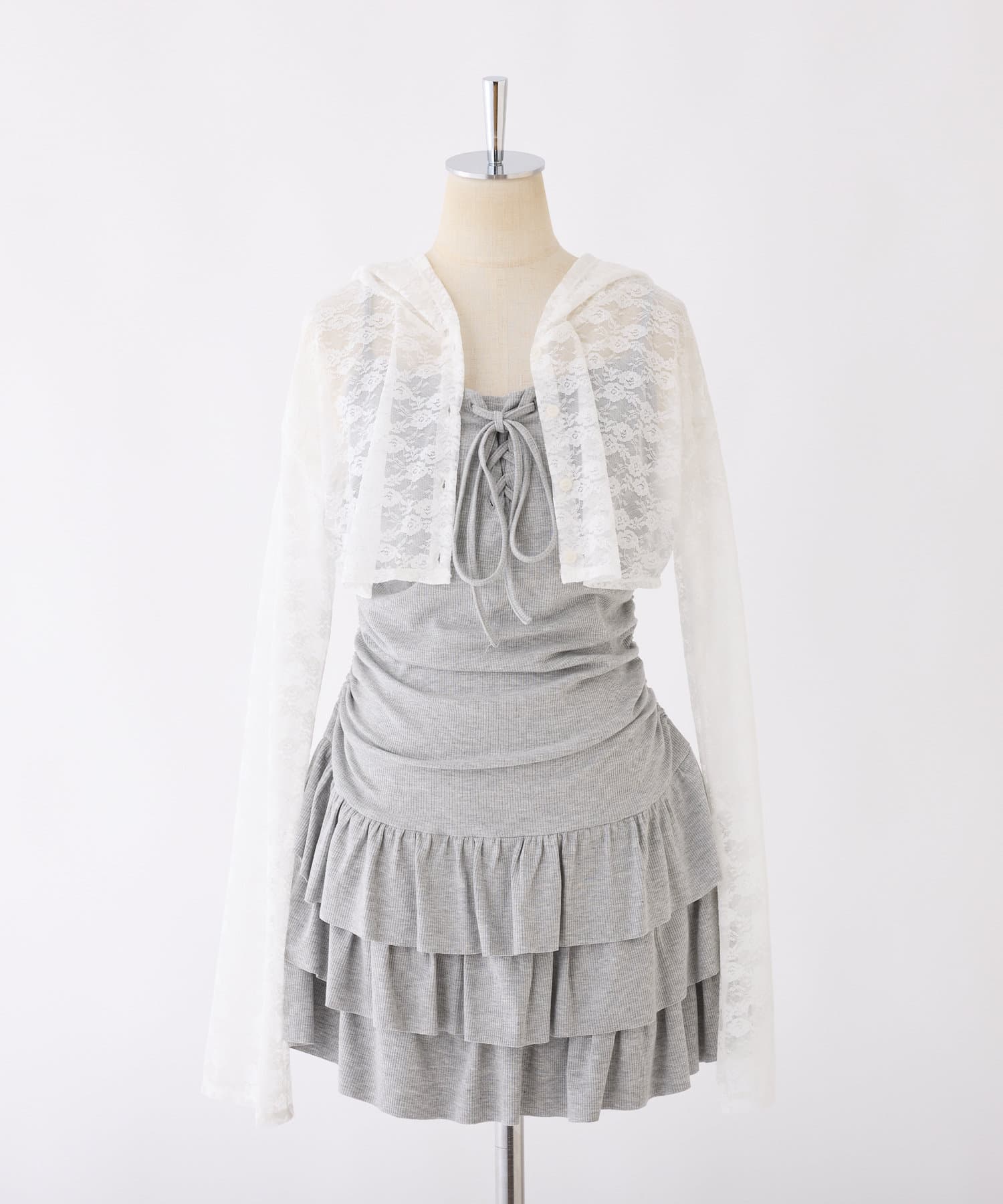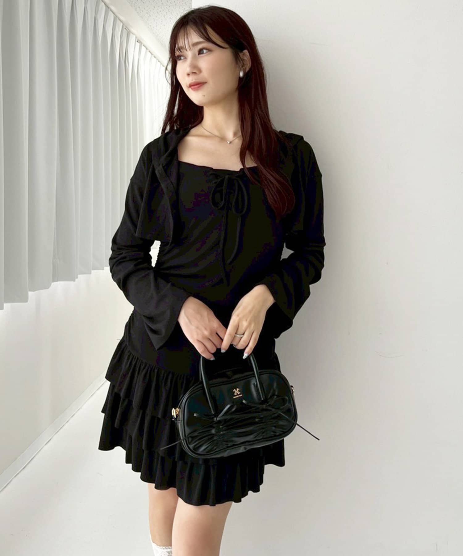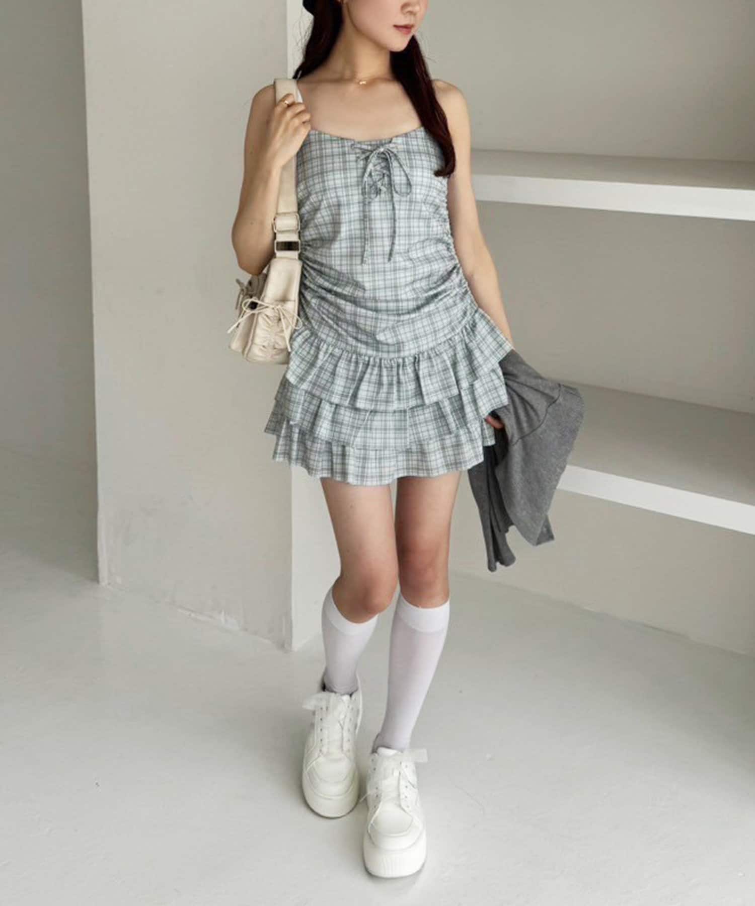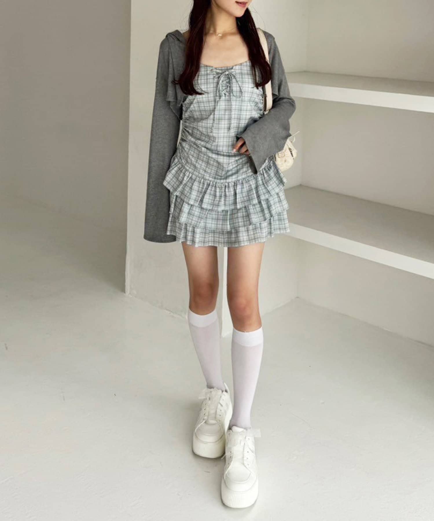 ミニ丈のキャミワンピースと、コンパクトなシルエットで華奢見えするパーカーの嬉しい2点セット