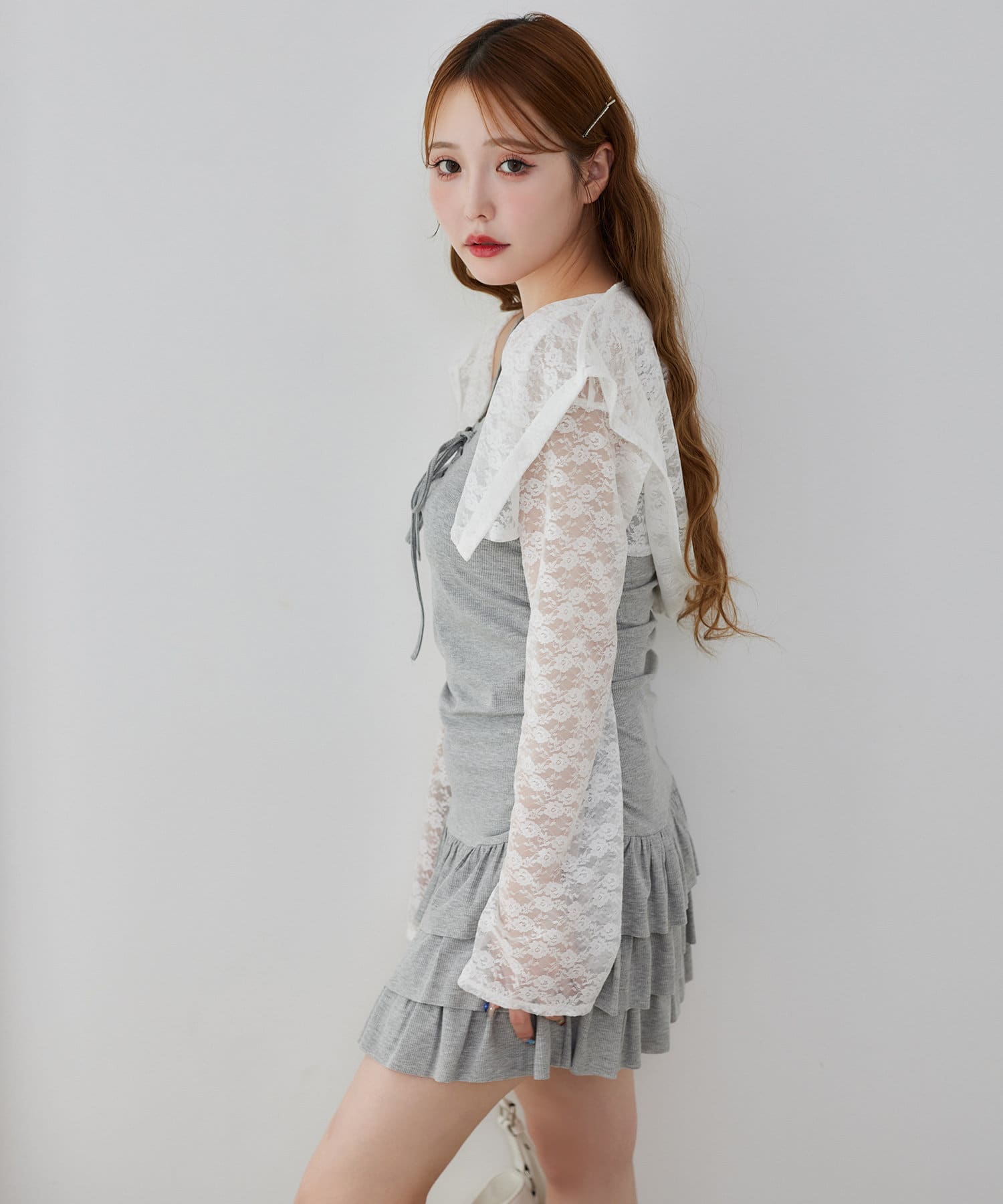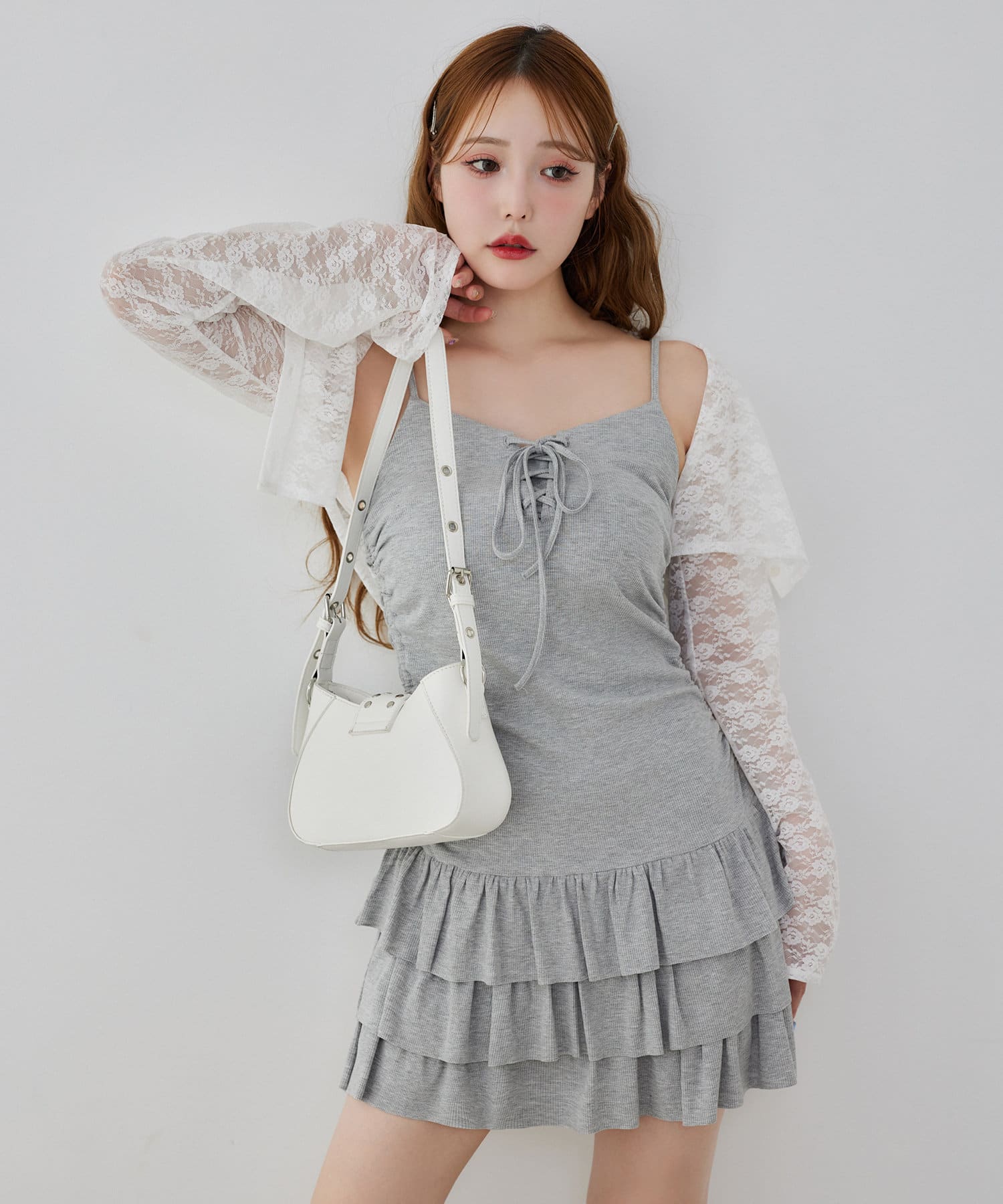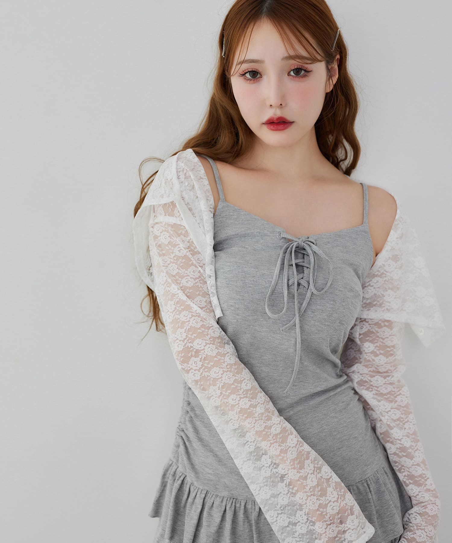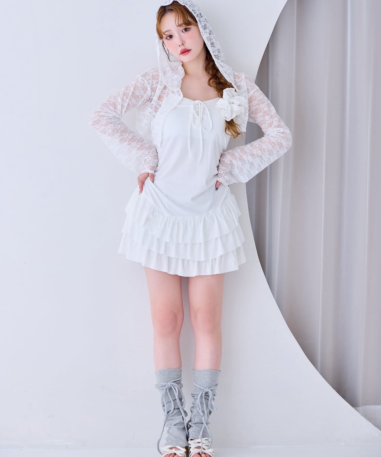 ミニ丈のキャミワンピースと、コンパクトなシルエットで華奢見えするパーカーの嬉しい2点セット