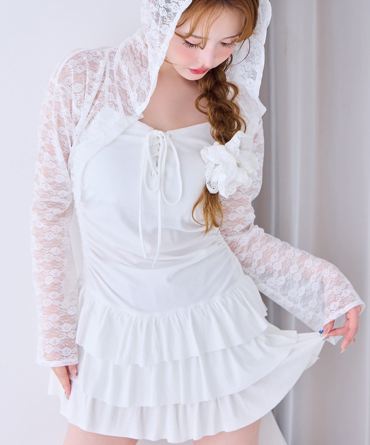 パーカーはカップ付きインナーや他のワンピースに羽織っても可愛い!