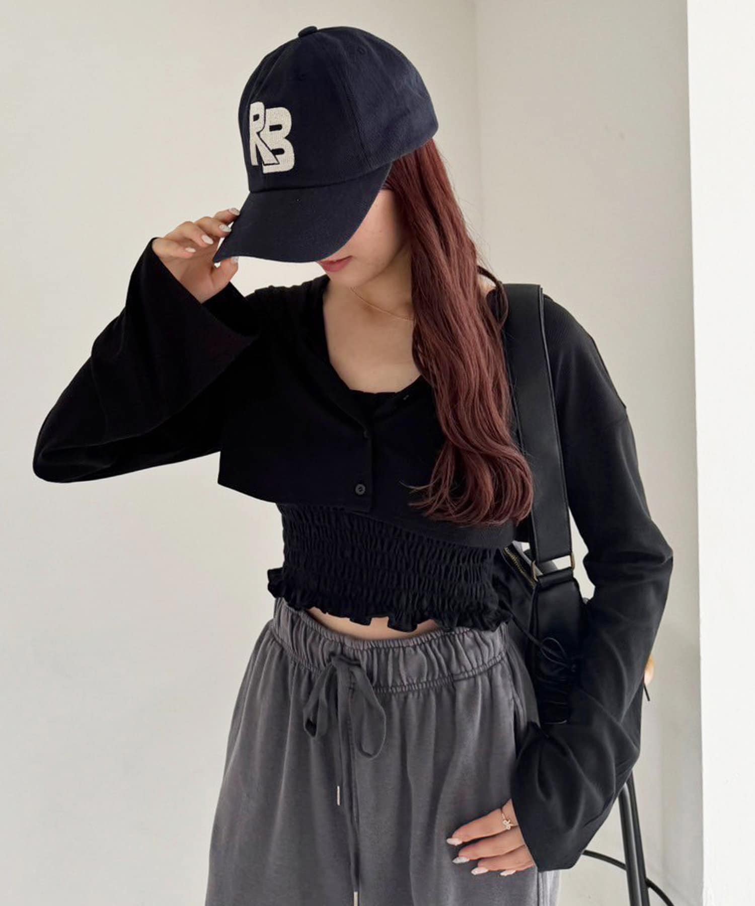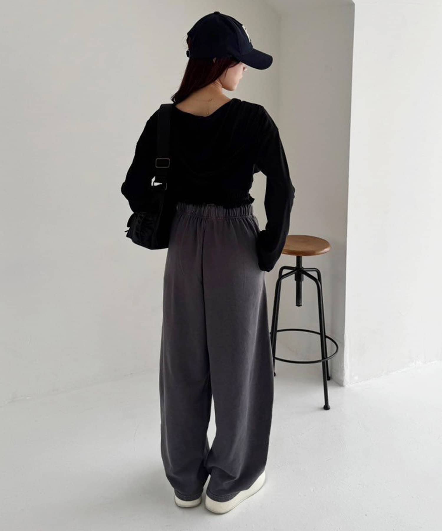 厚底スニーカーやキャップを合わせて、カジュアルな着こなしに。