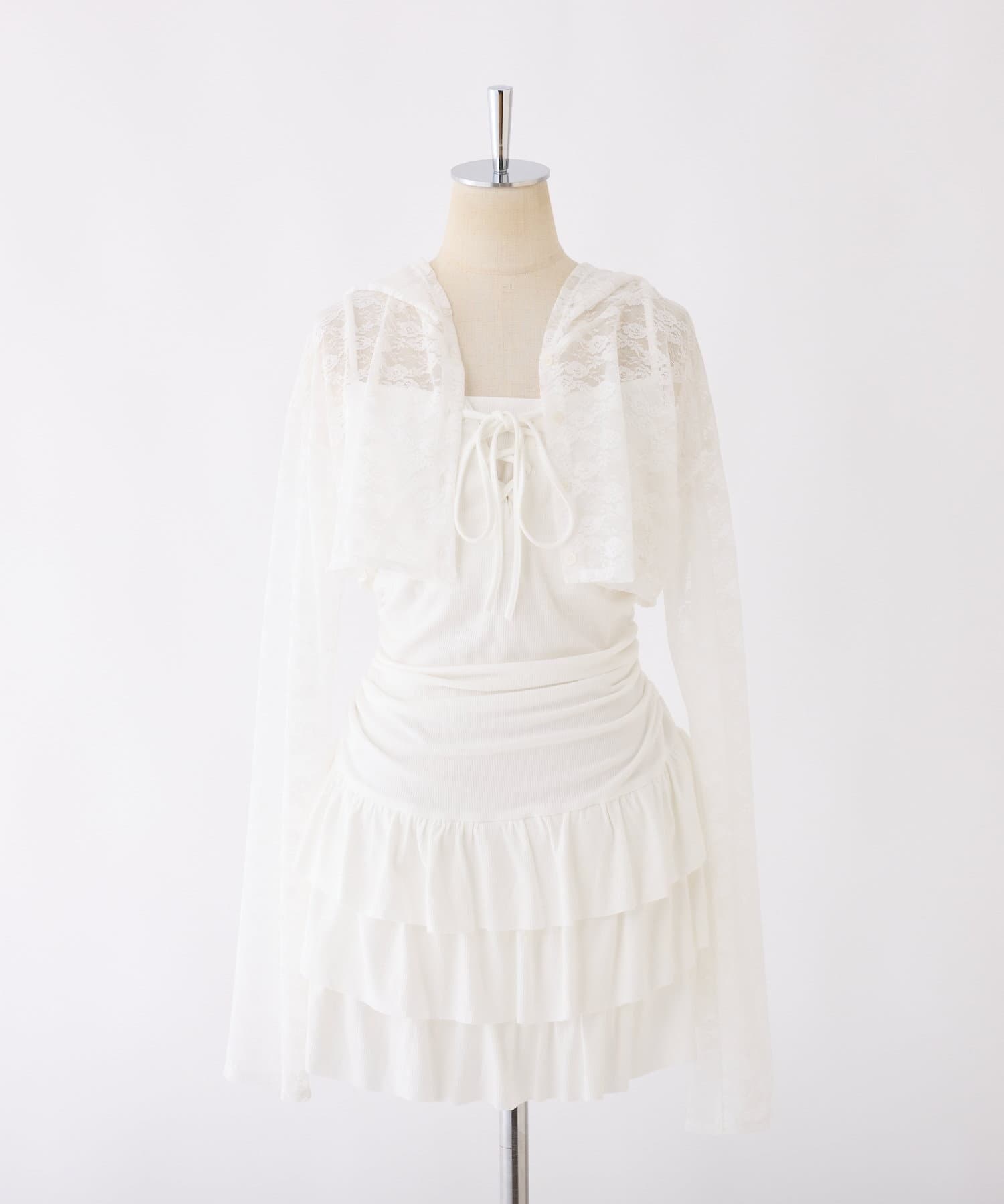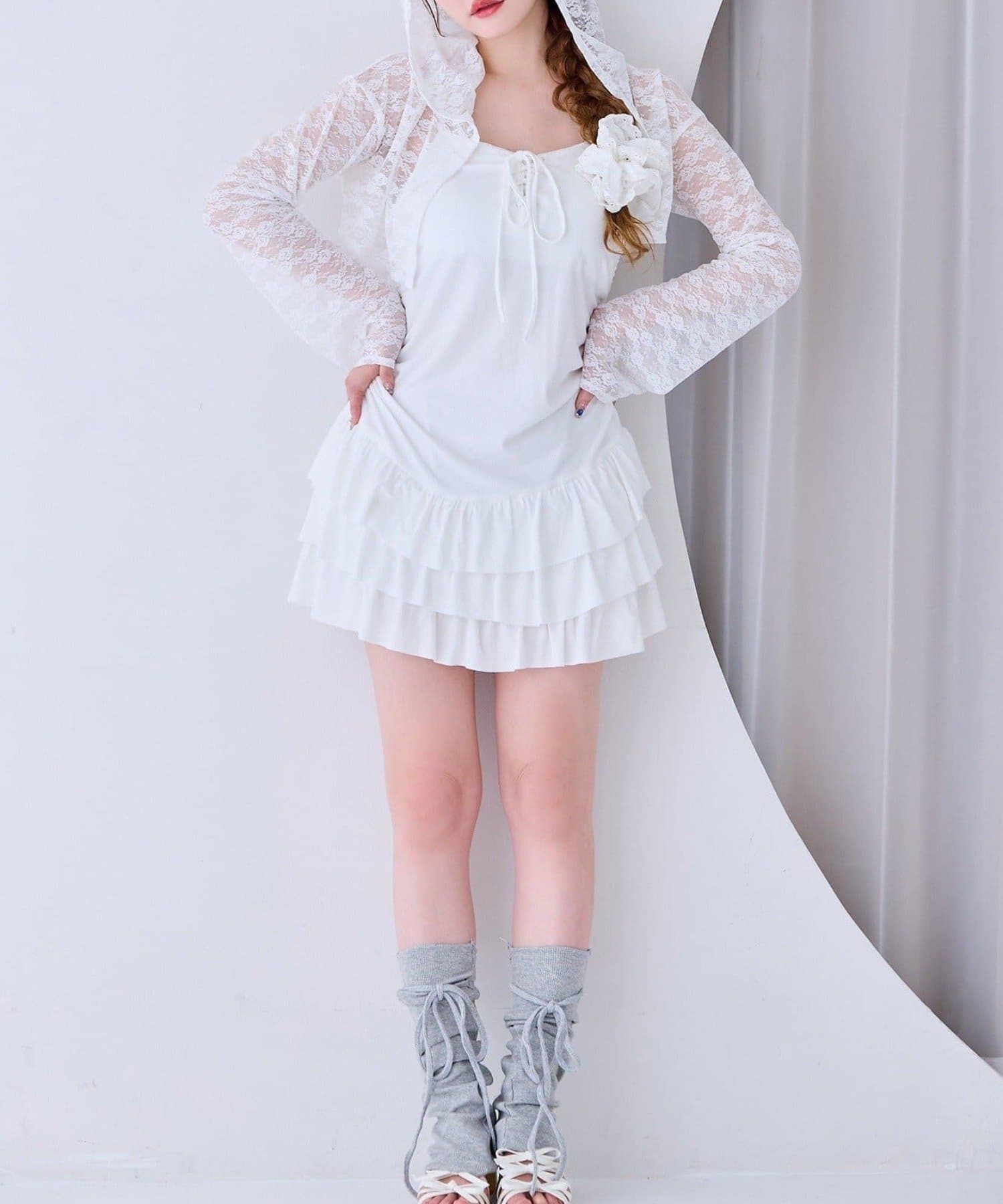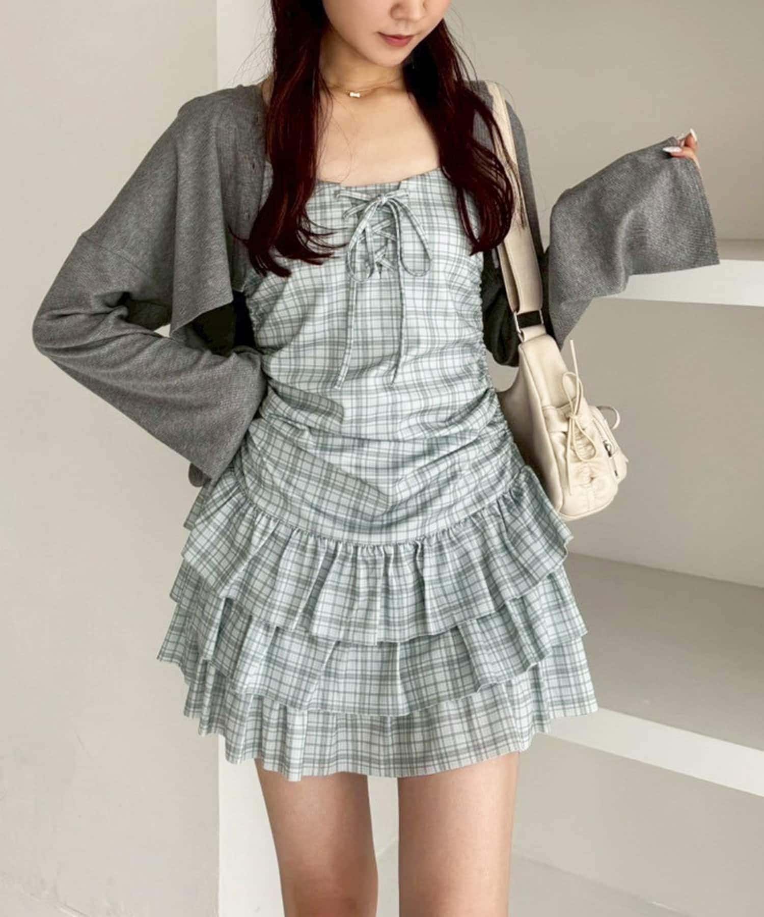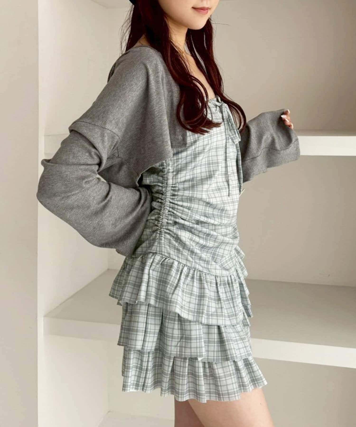 ミニ丈のキャミワンピースと、コンパクトなシルエットで華奢見えするパーカーの嬉しい2点セット