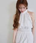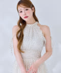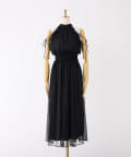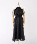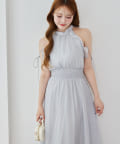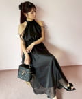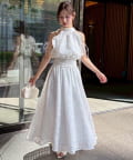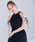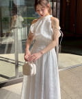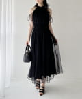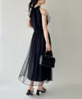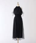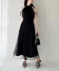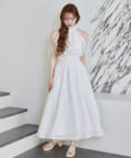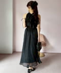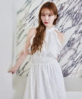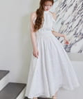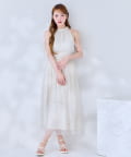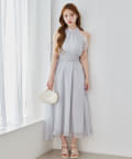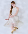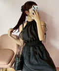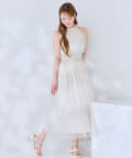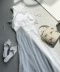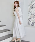 可愛らしさとフェミニンな印象を与えるノースリーブロングワンピース。