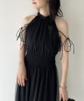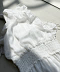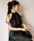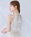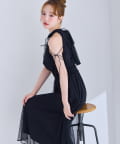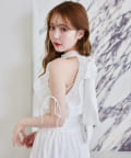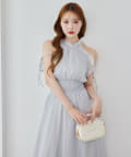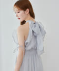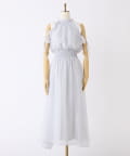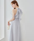肩にあしらったフリルとリボンがポイントになり、