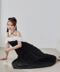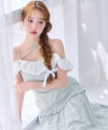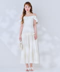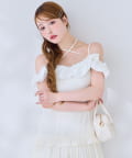 オフショルダー風の立体的なフリルが華やかさをプラス。