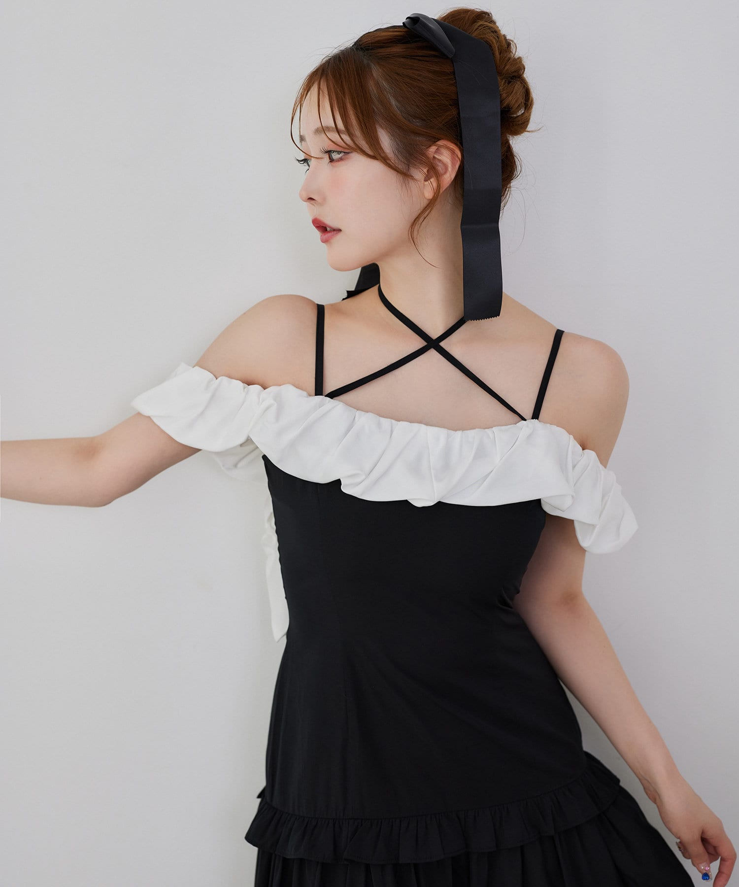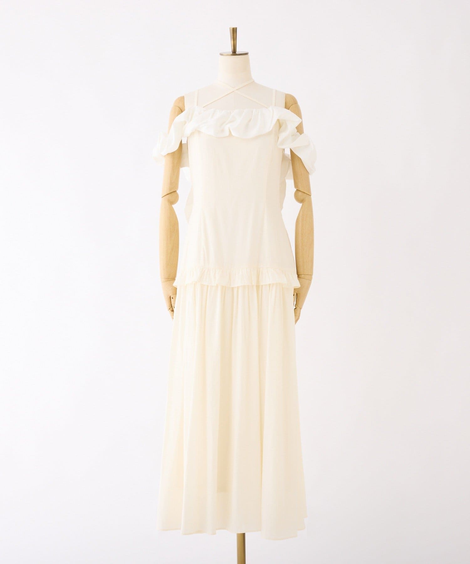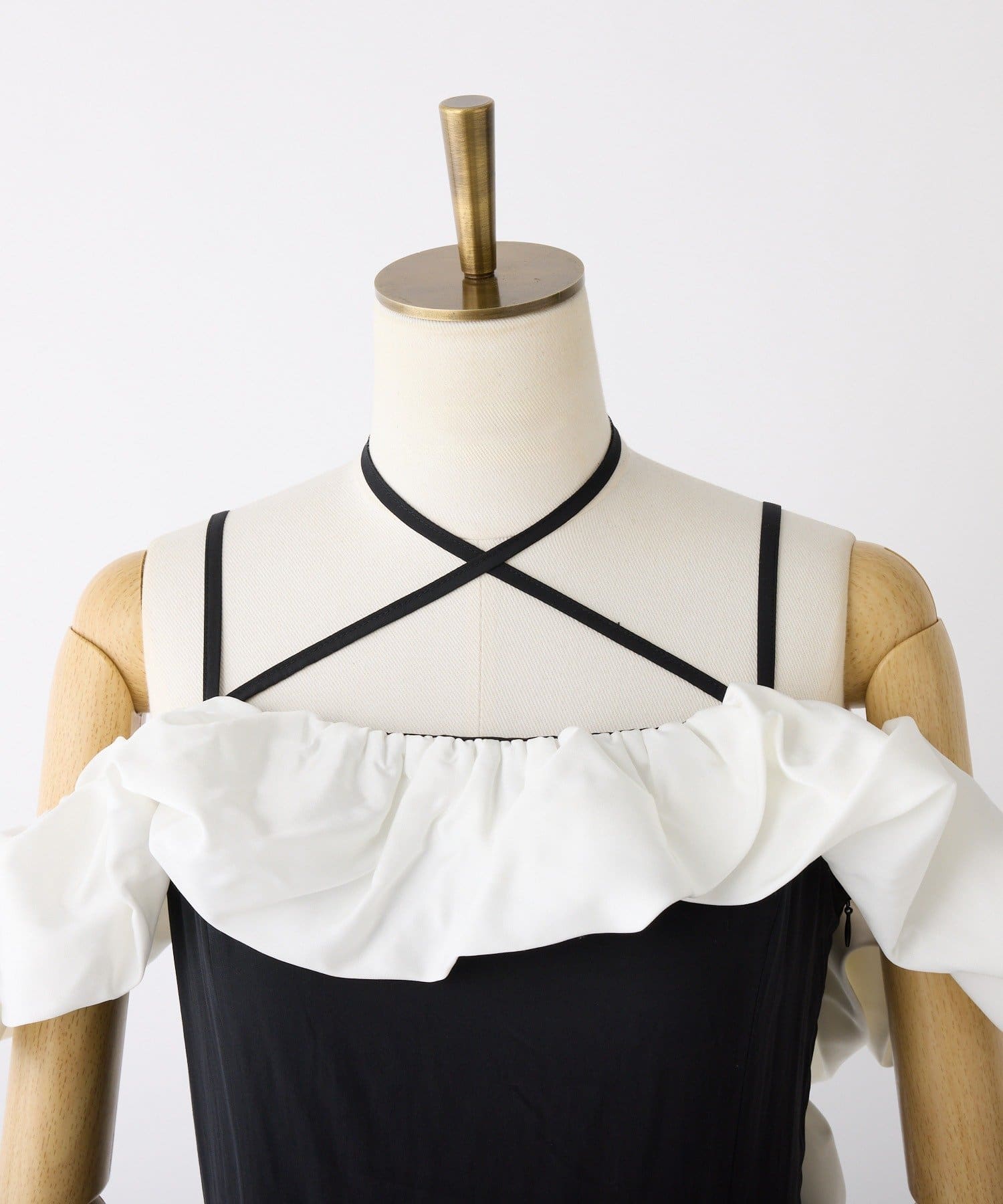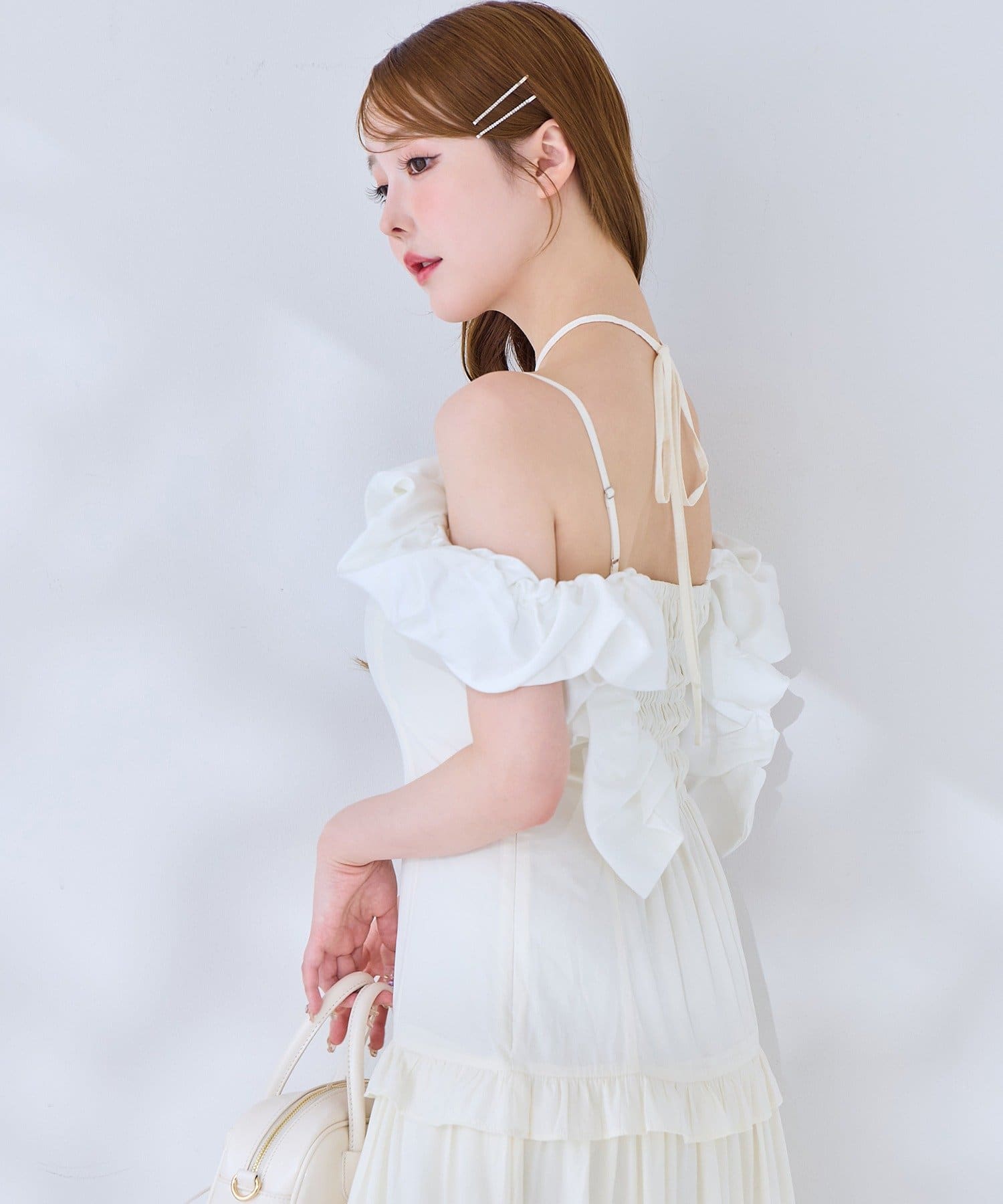 オフショルダー風の立体的なフリルが華やかさをプラス。