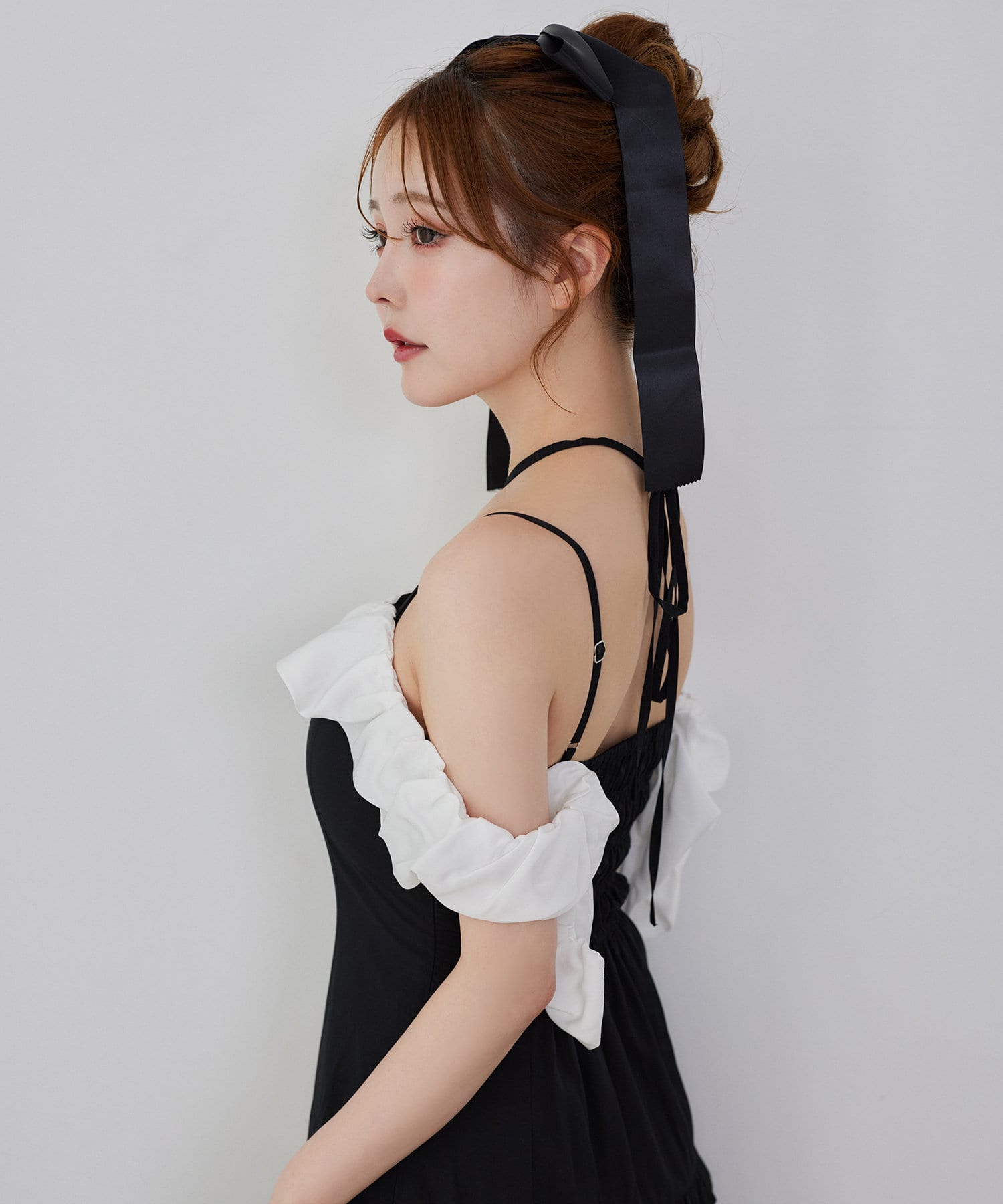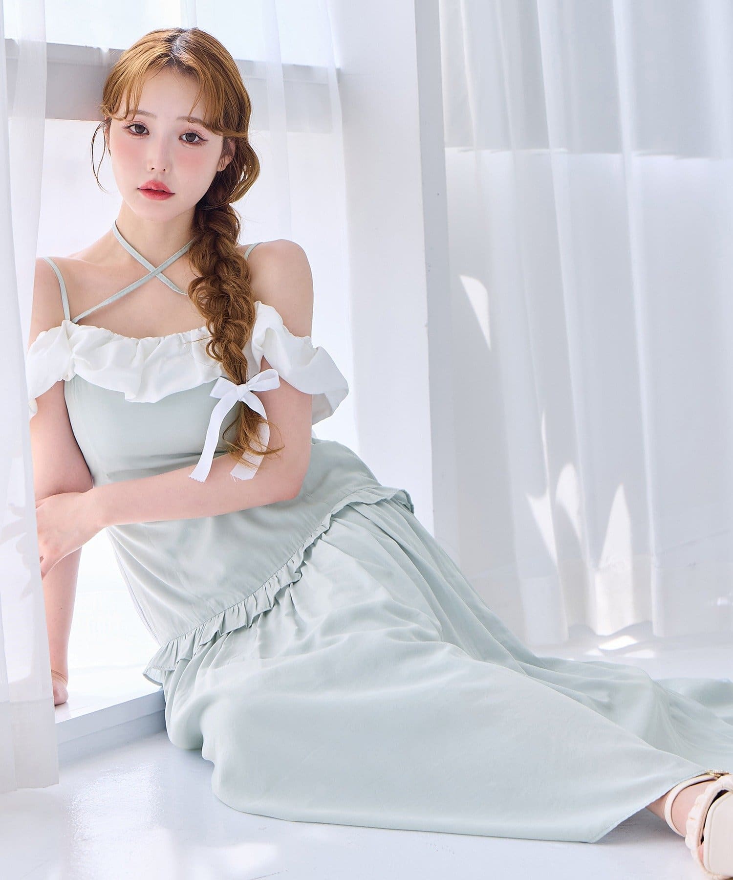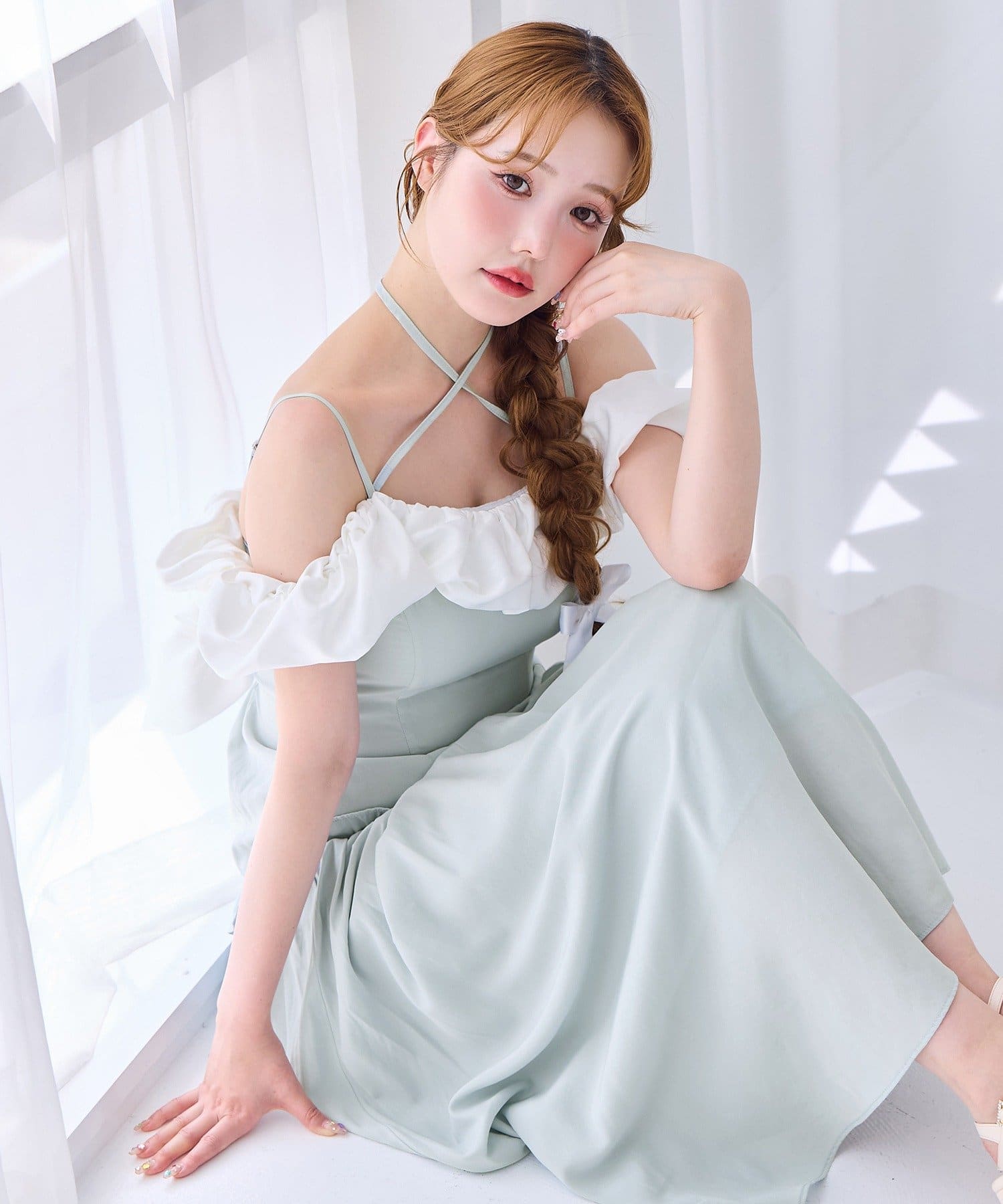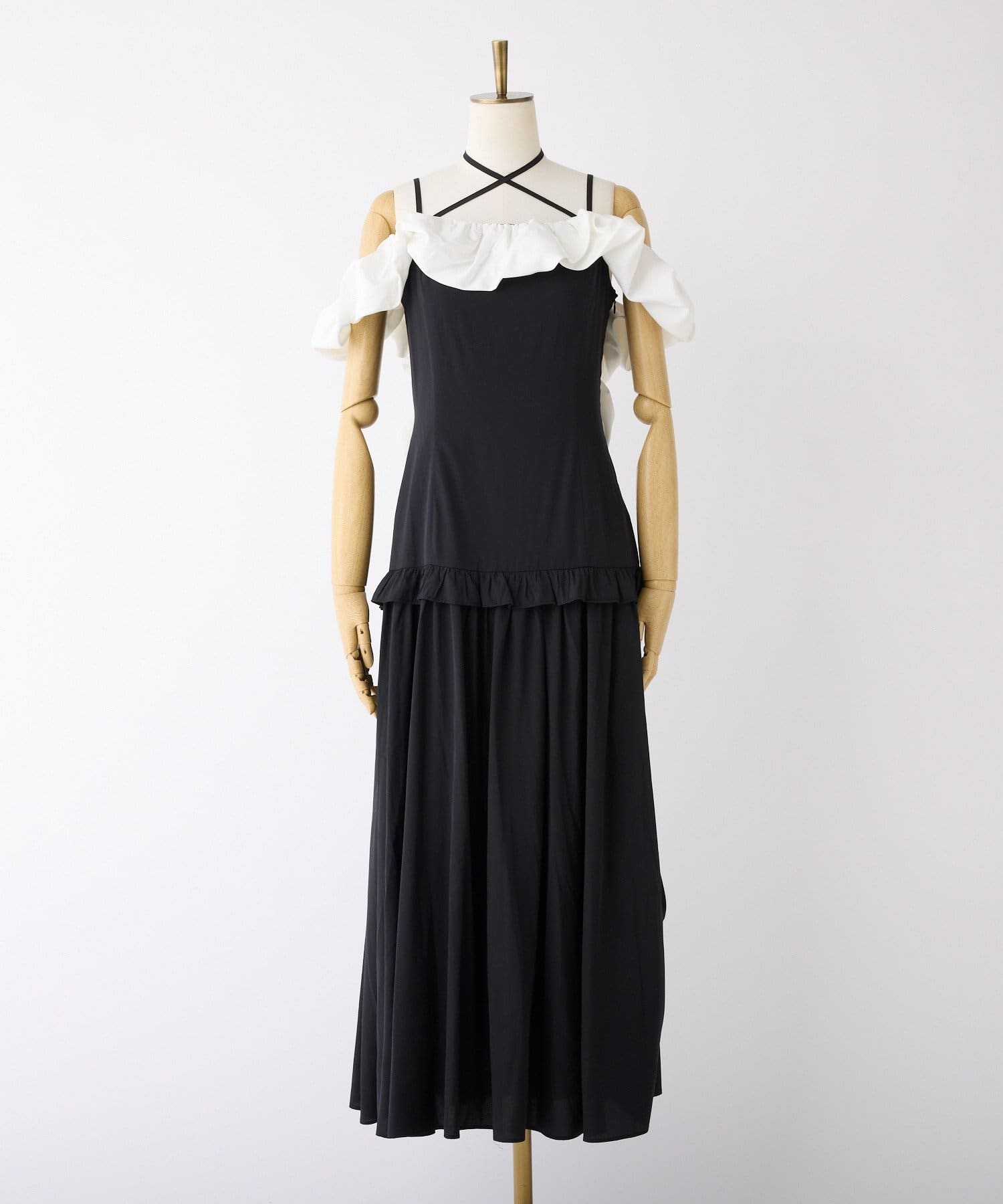 オフショルダー風の立体的なフリルが華やかさをプラス。