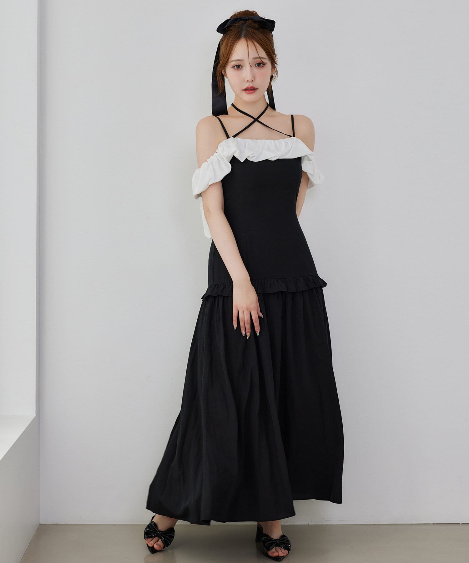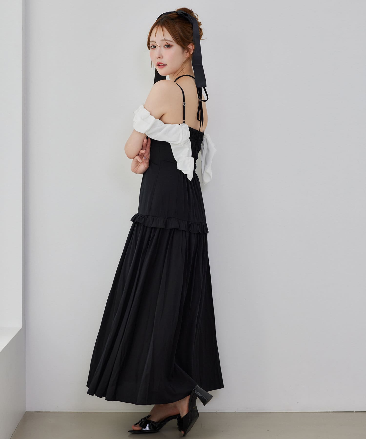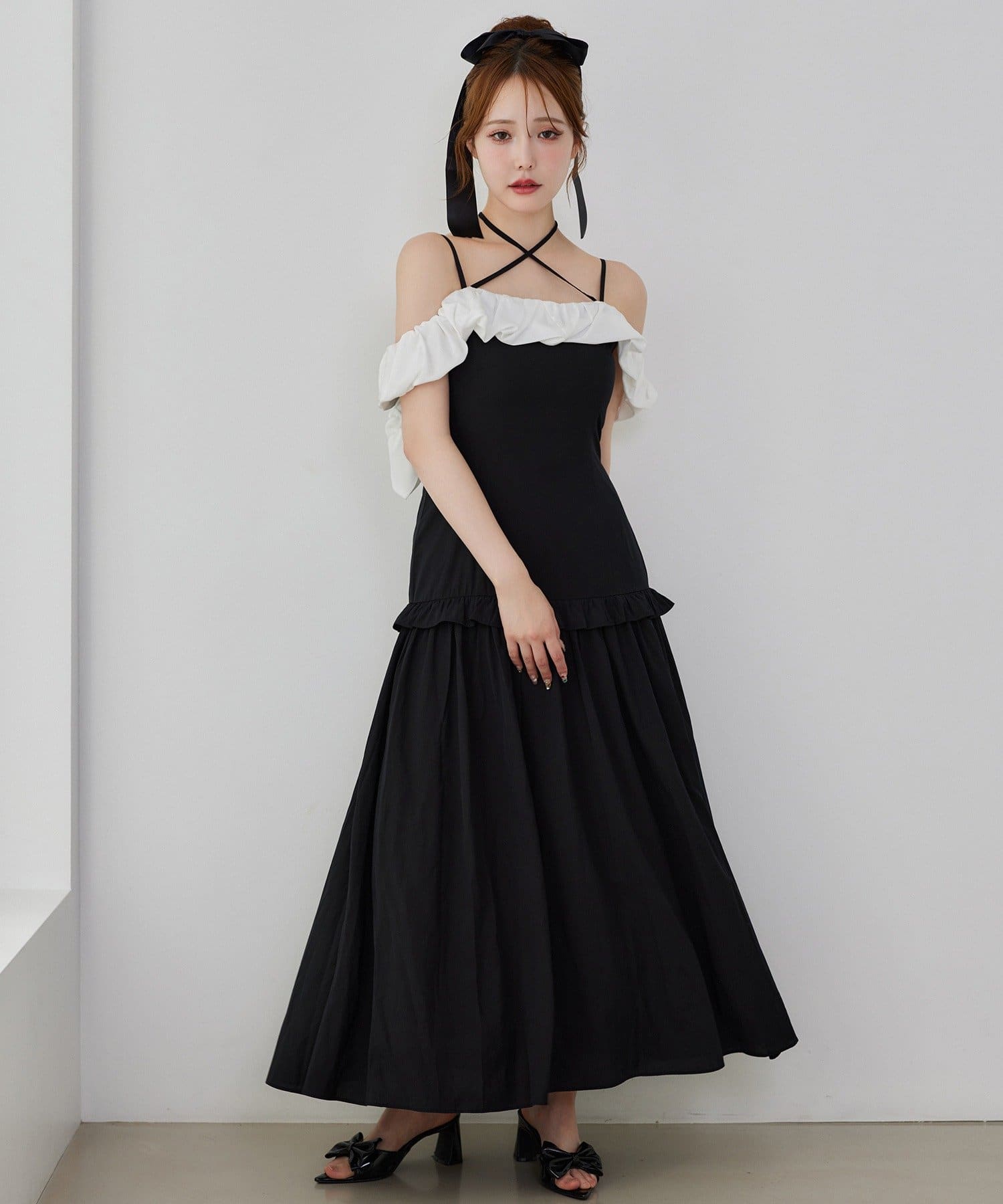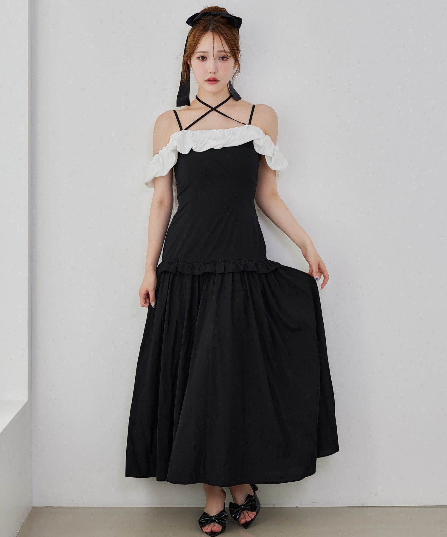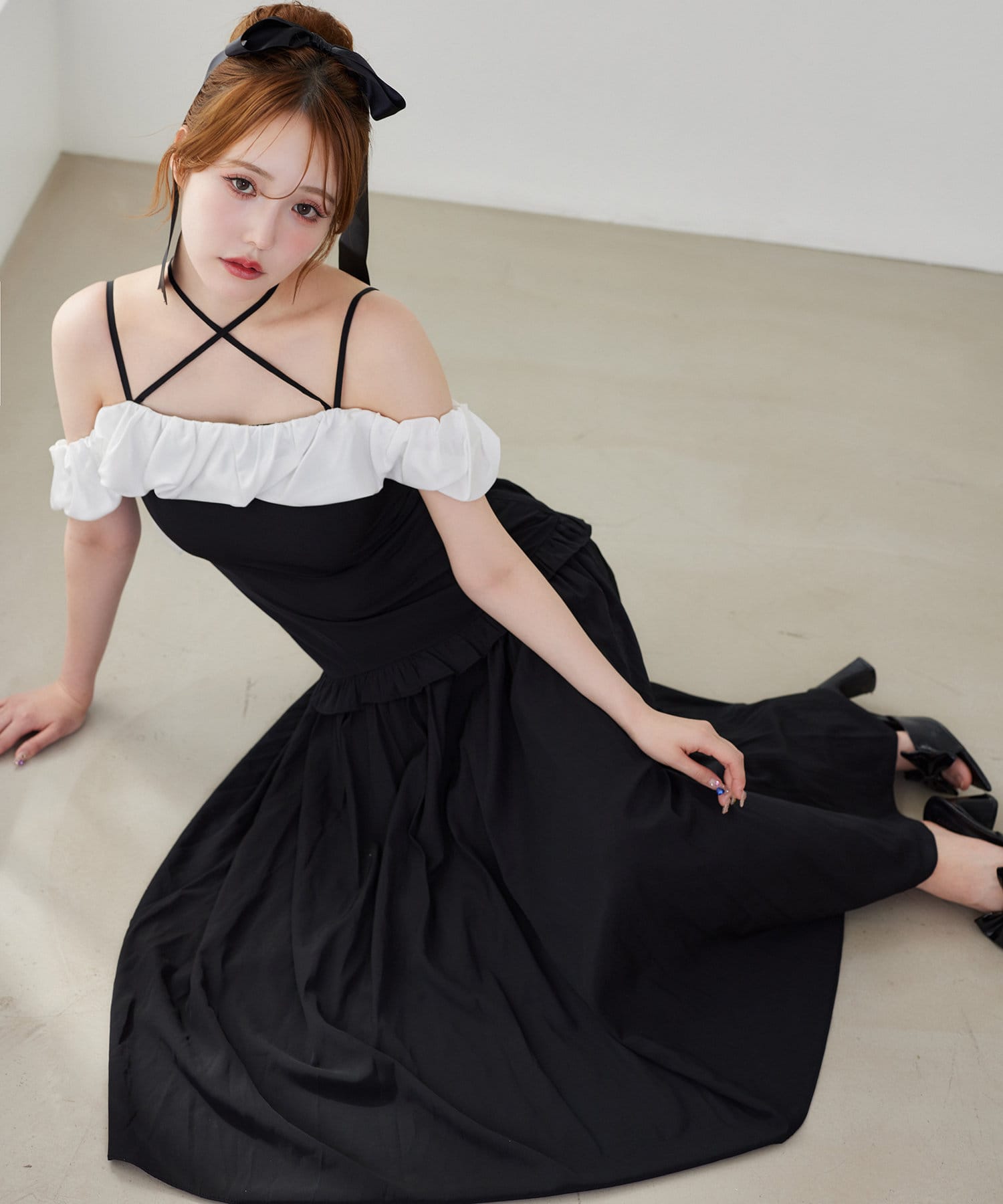 オフショルダー風の立体的なフリルが華やかさをプラス。