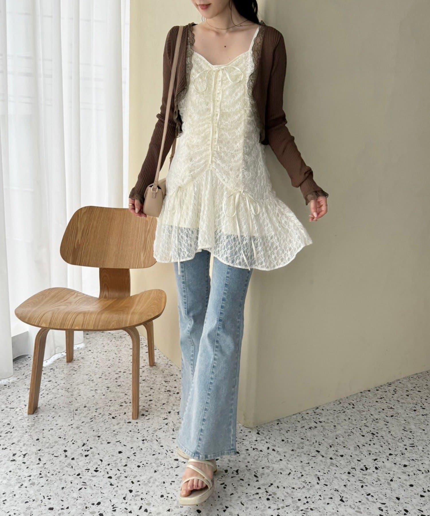 デニムパンツやスラックスと合わせて、大人可愛く着ていただいても◎
