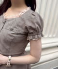 ブラウスはウエストが細見えするシルエットで、メリハリのある着こなしに。