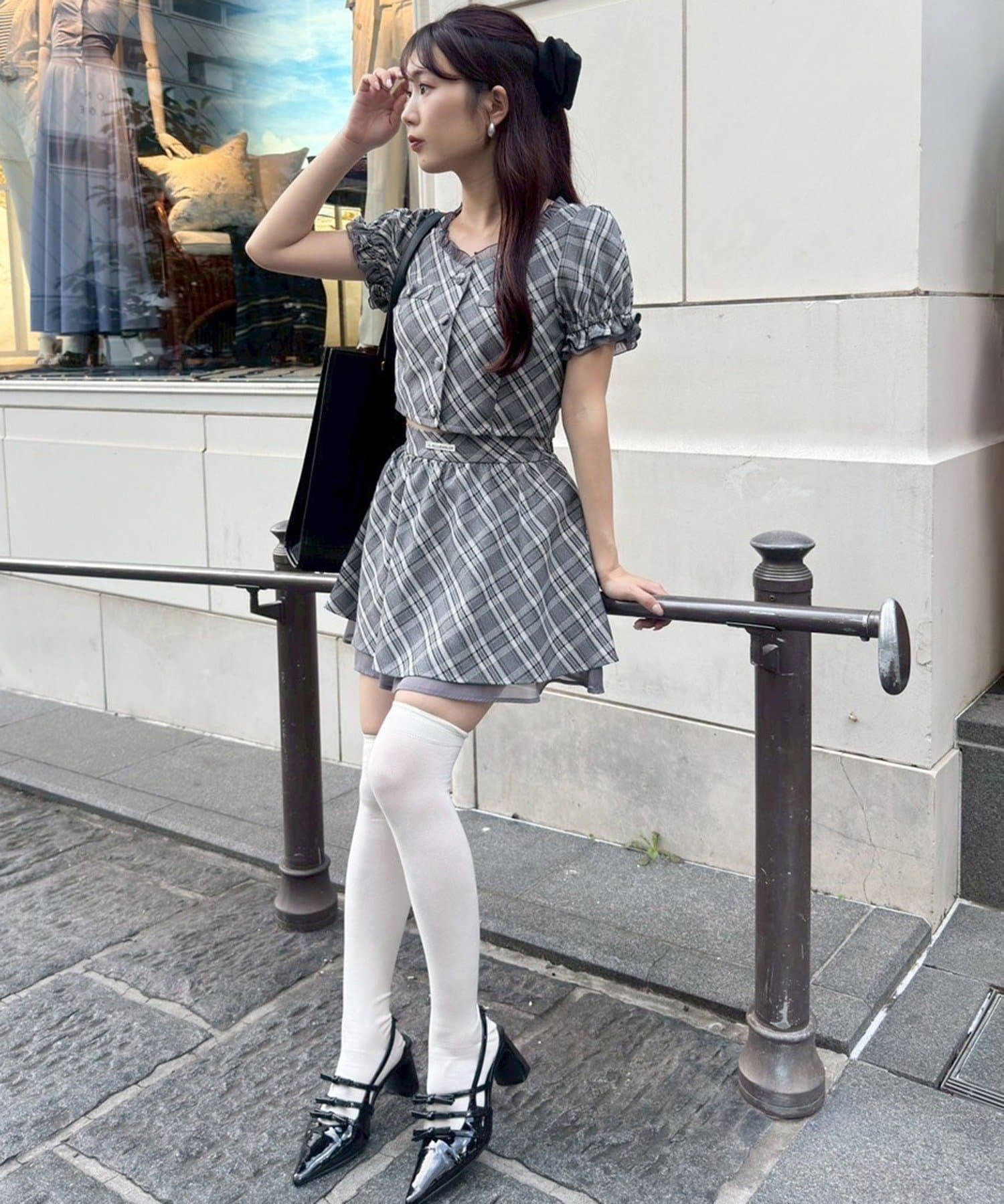 足元はミュール×シアーハイソックス合わせがおすすめ◎