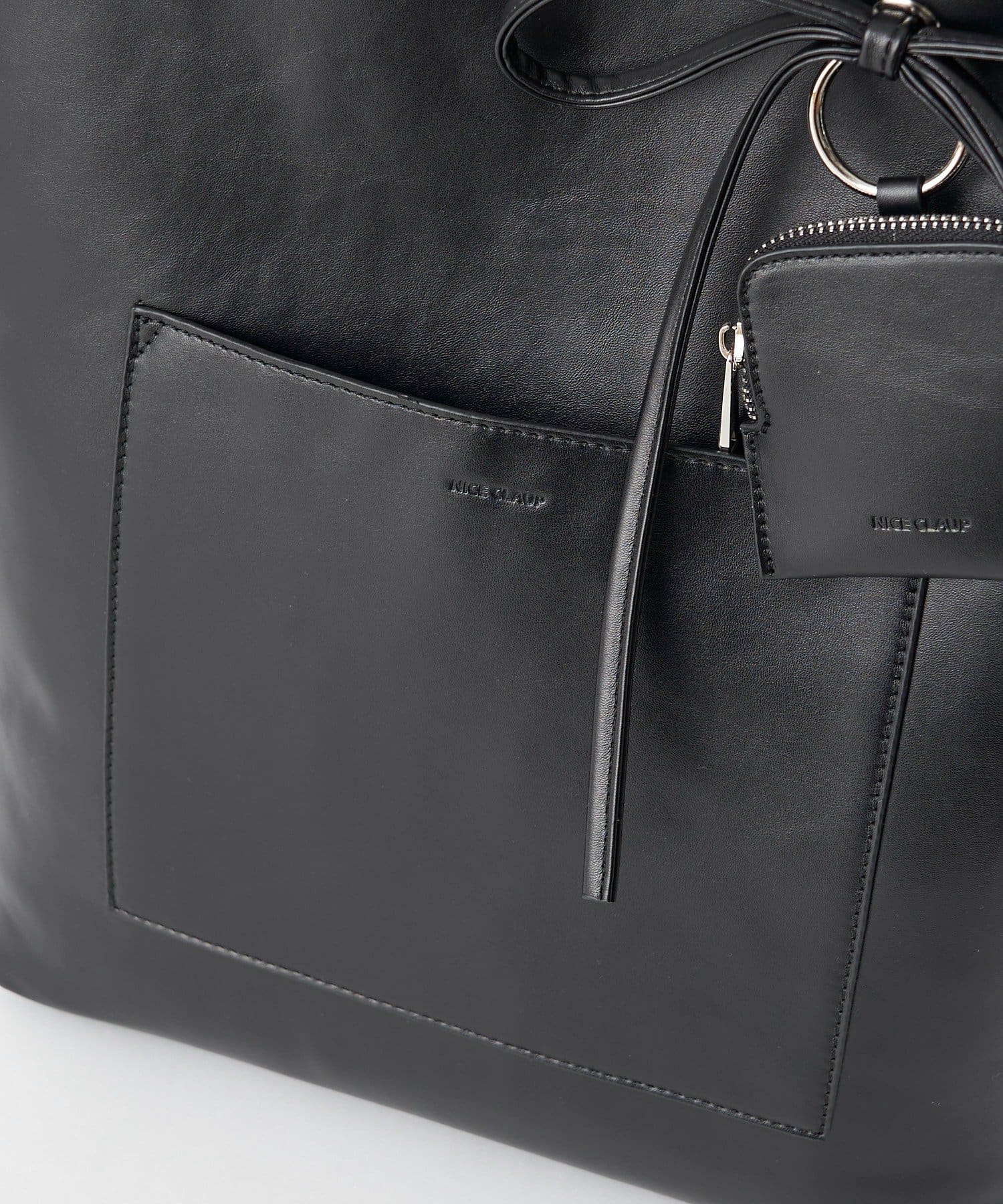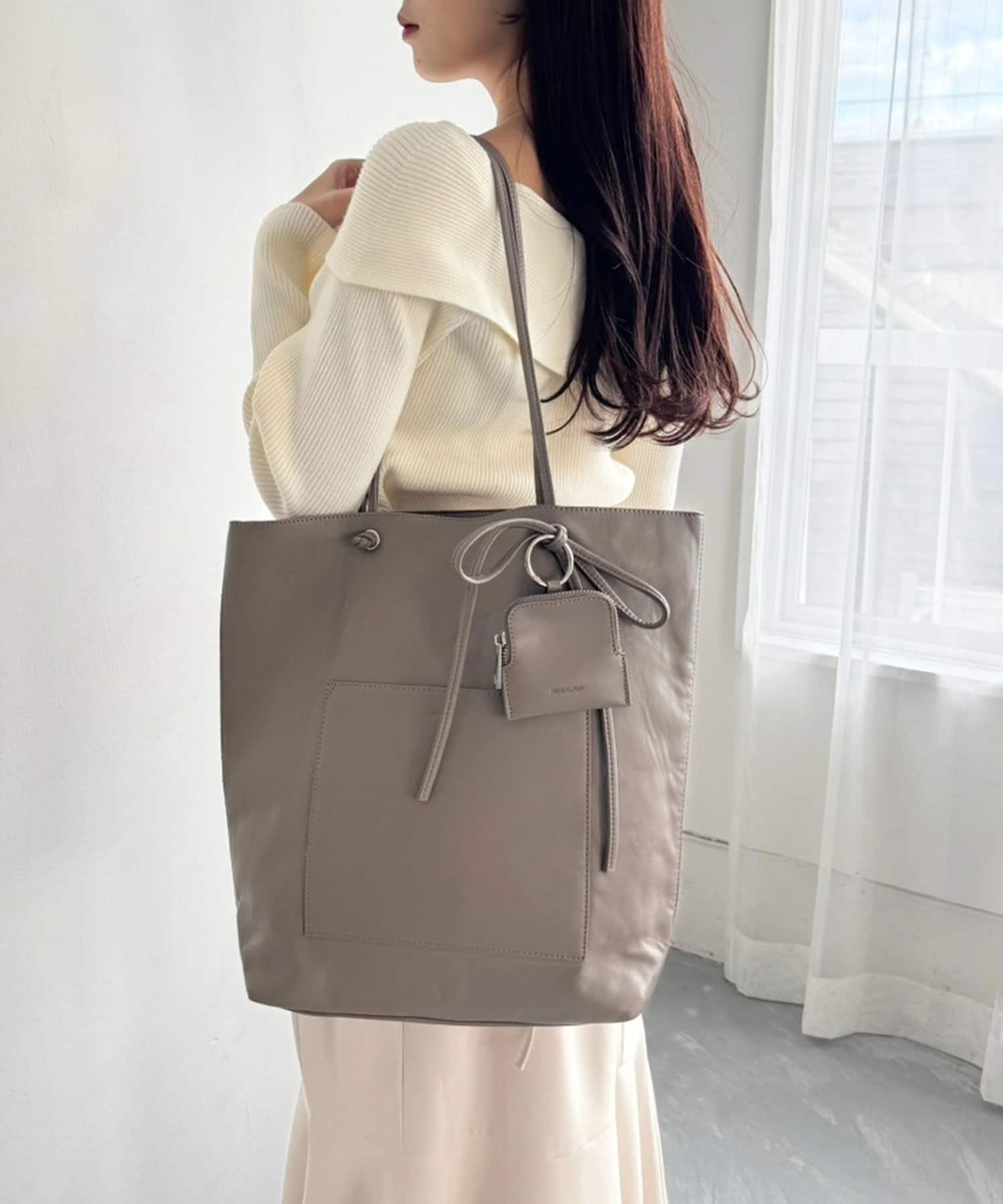 上質感漂うフェイクレザー素材を使用したスクエアトートバッグなので