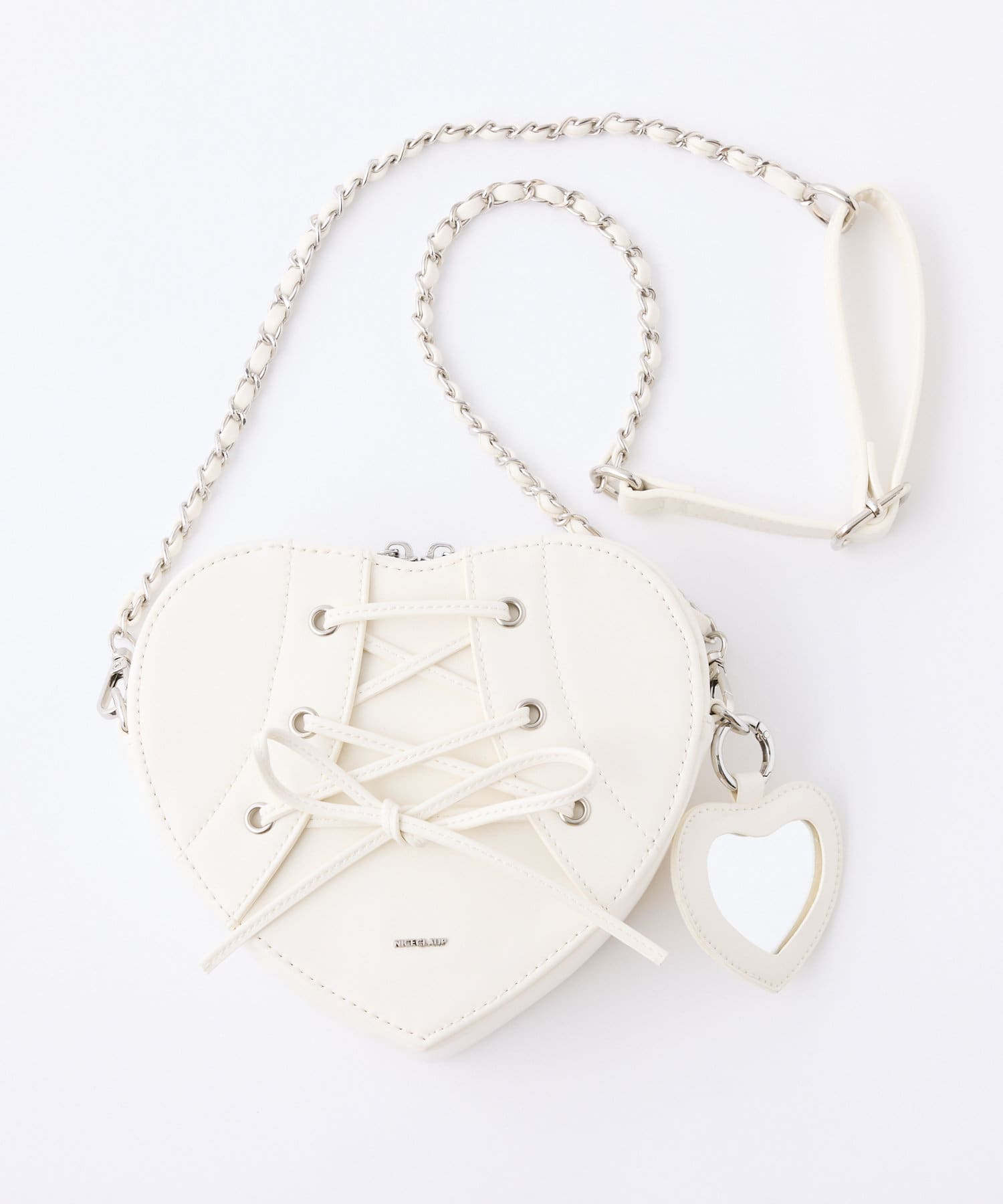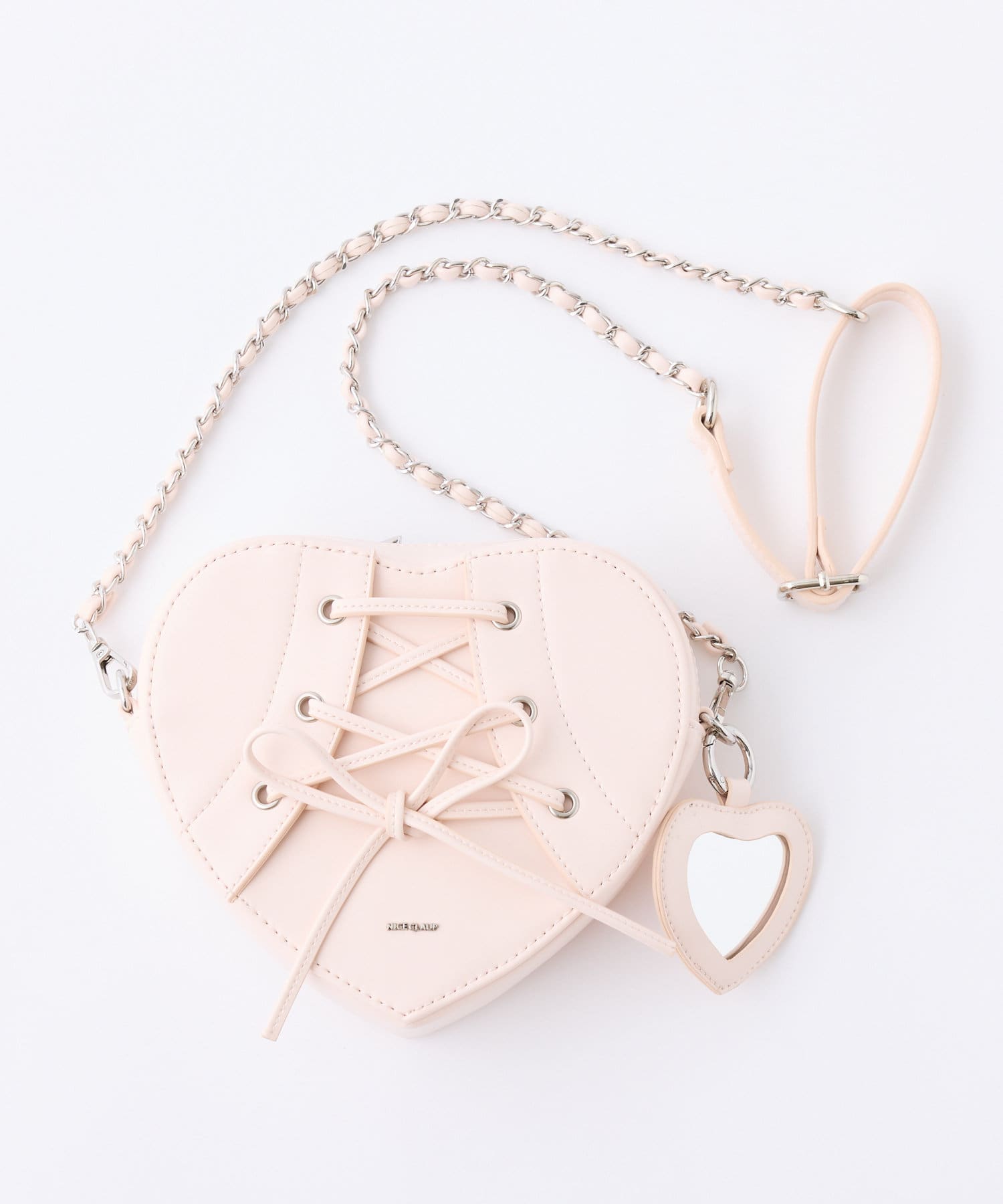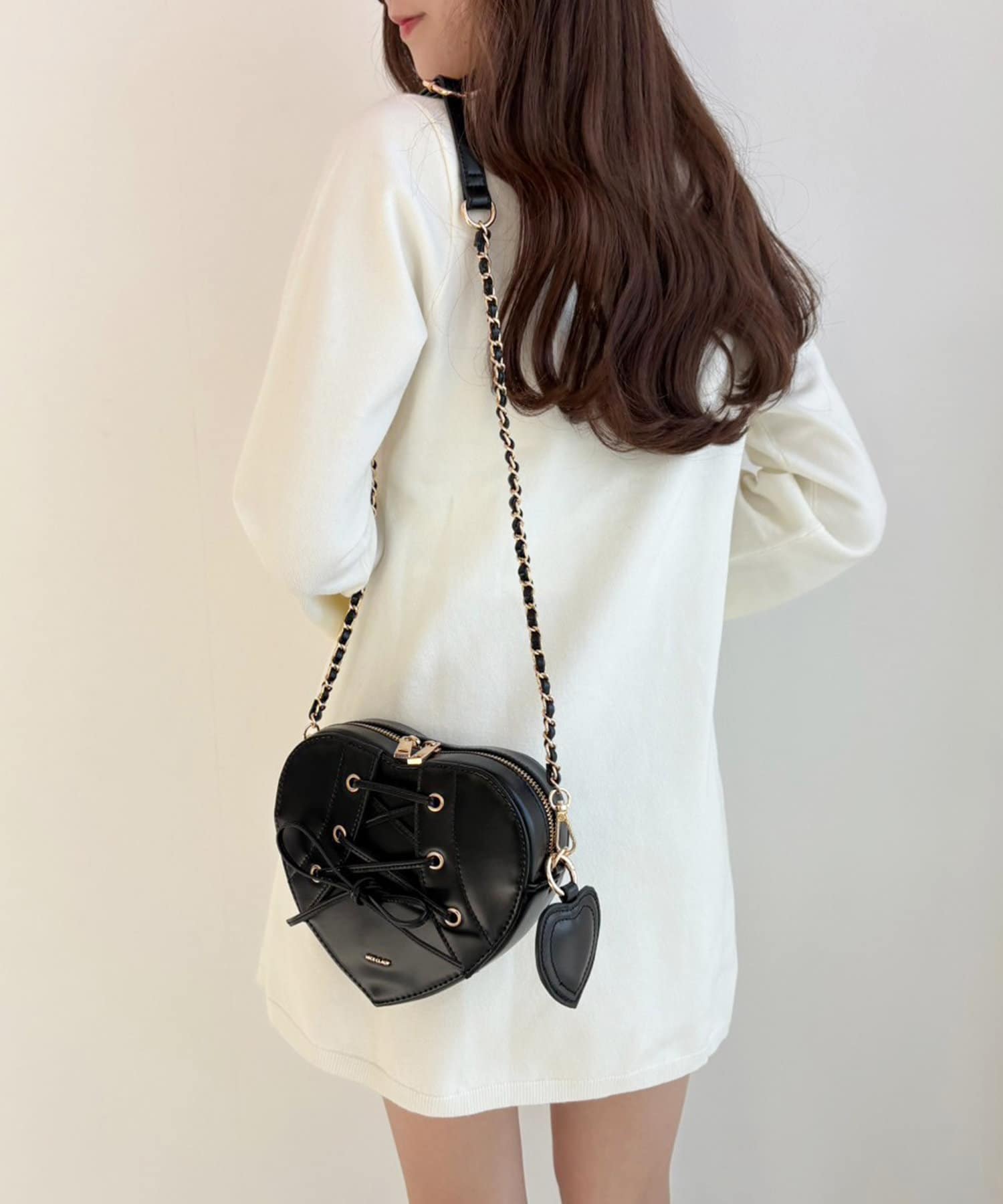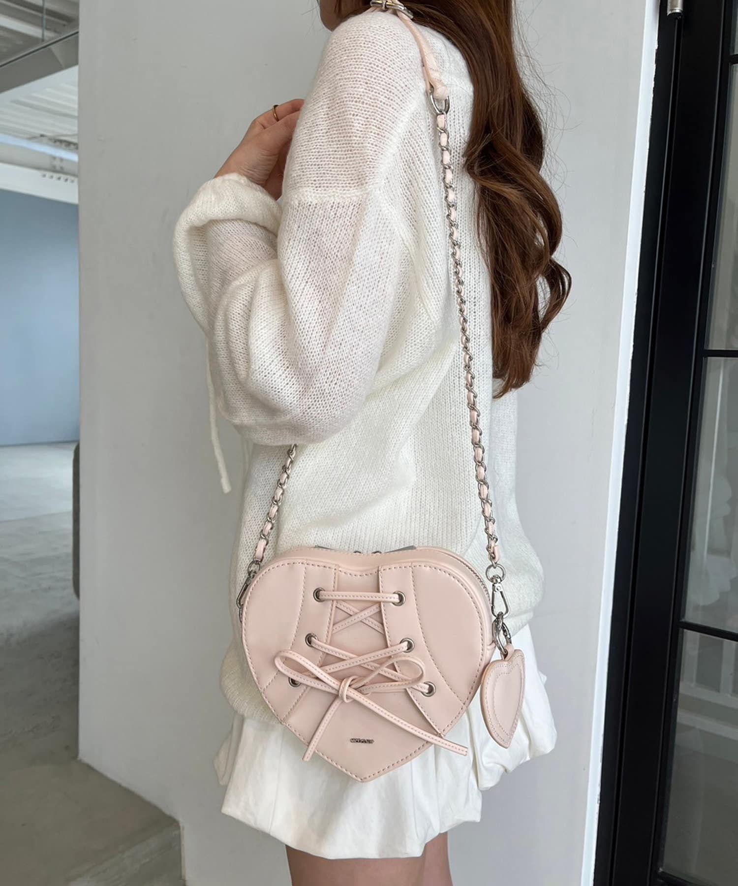 ハートの形とレースアップがフェミニンなショルダーバッグ