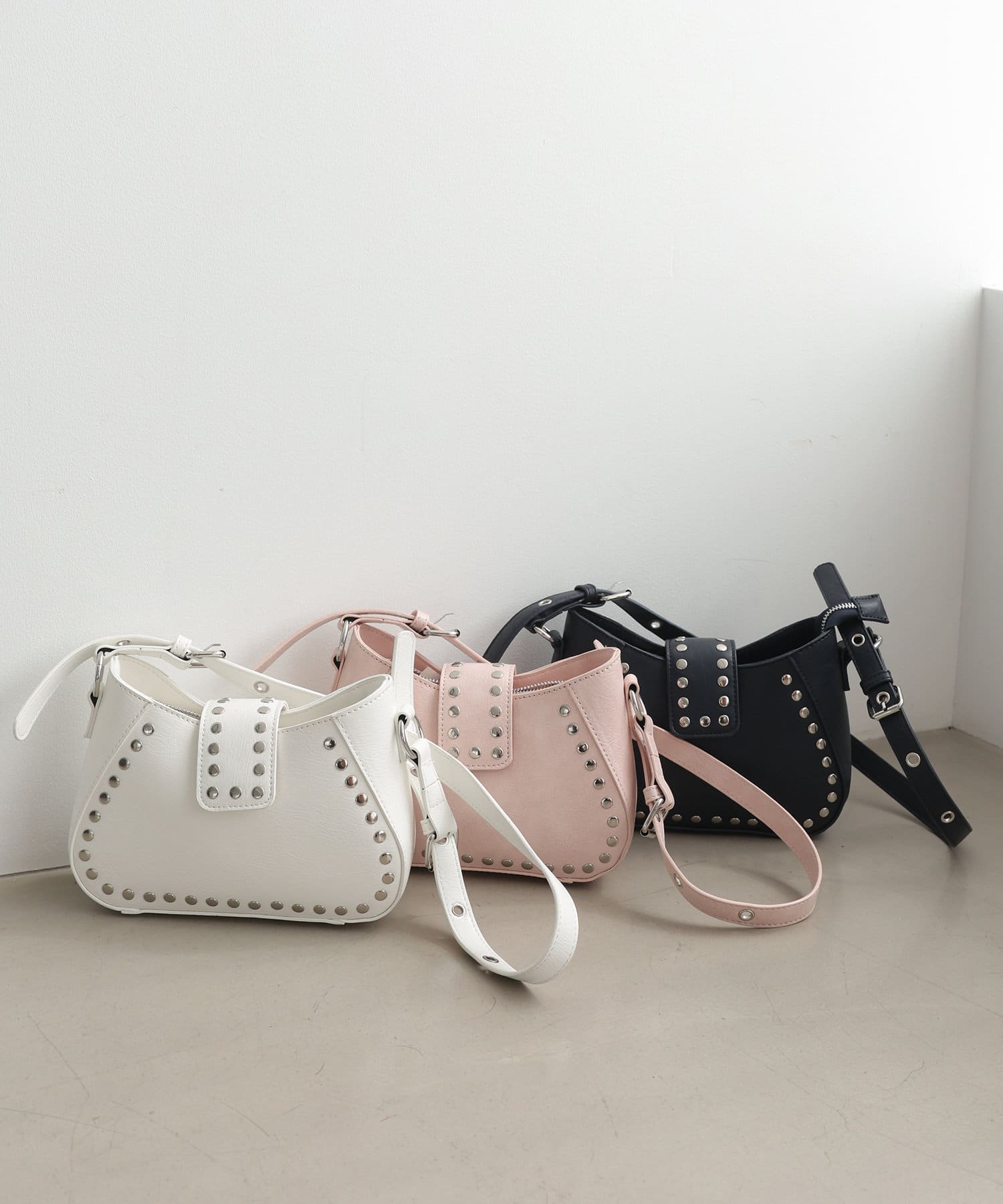 存在感のあるスタッズがアクセントになったミニバッグ。