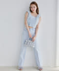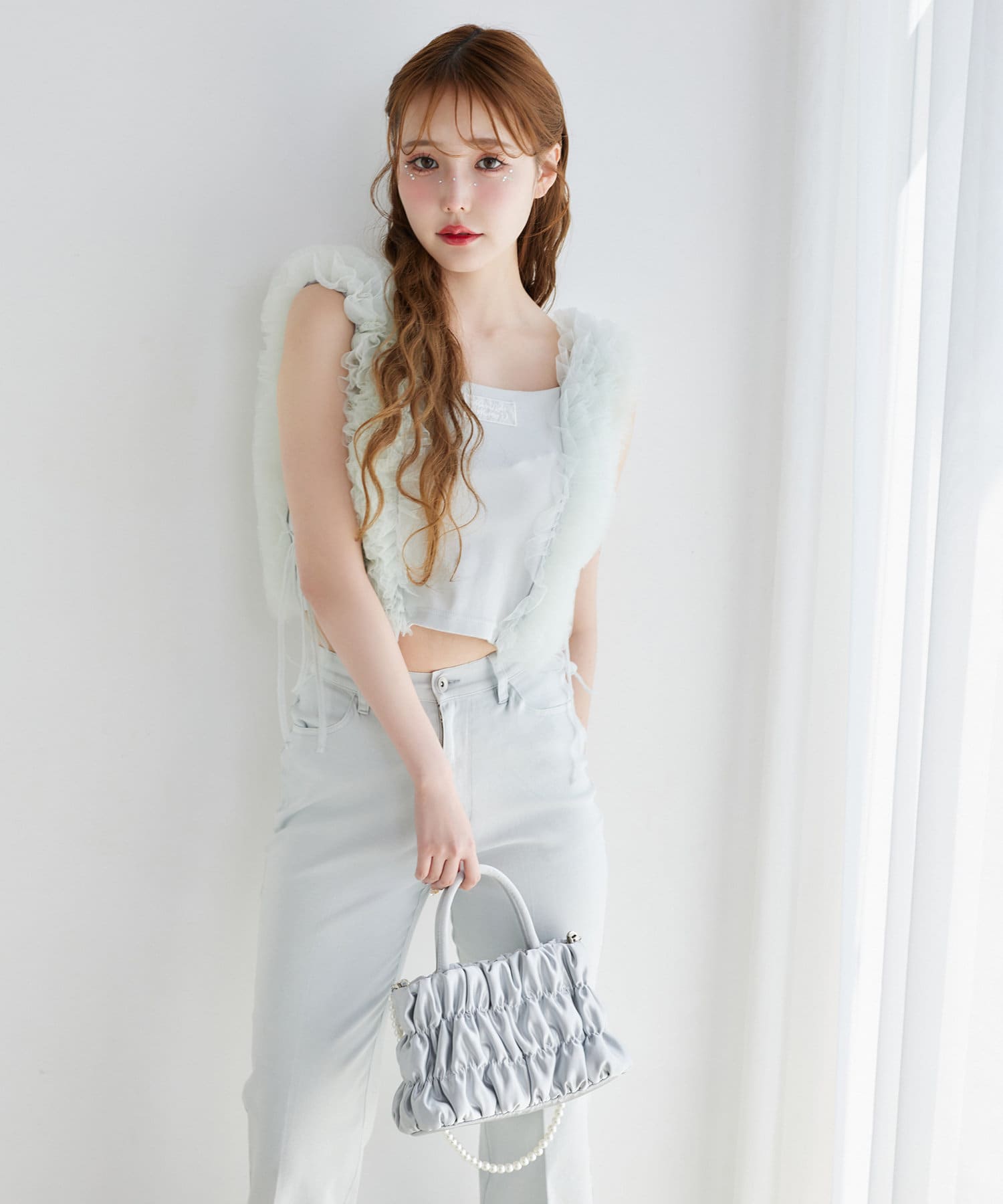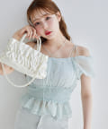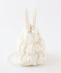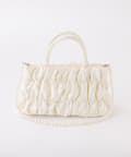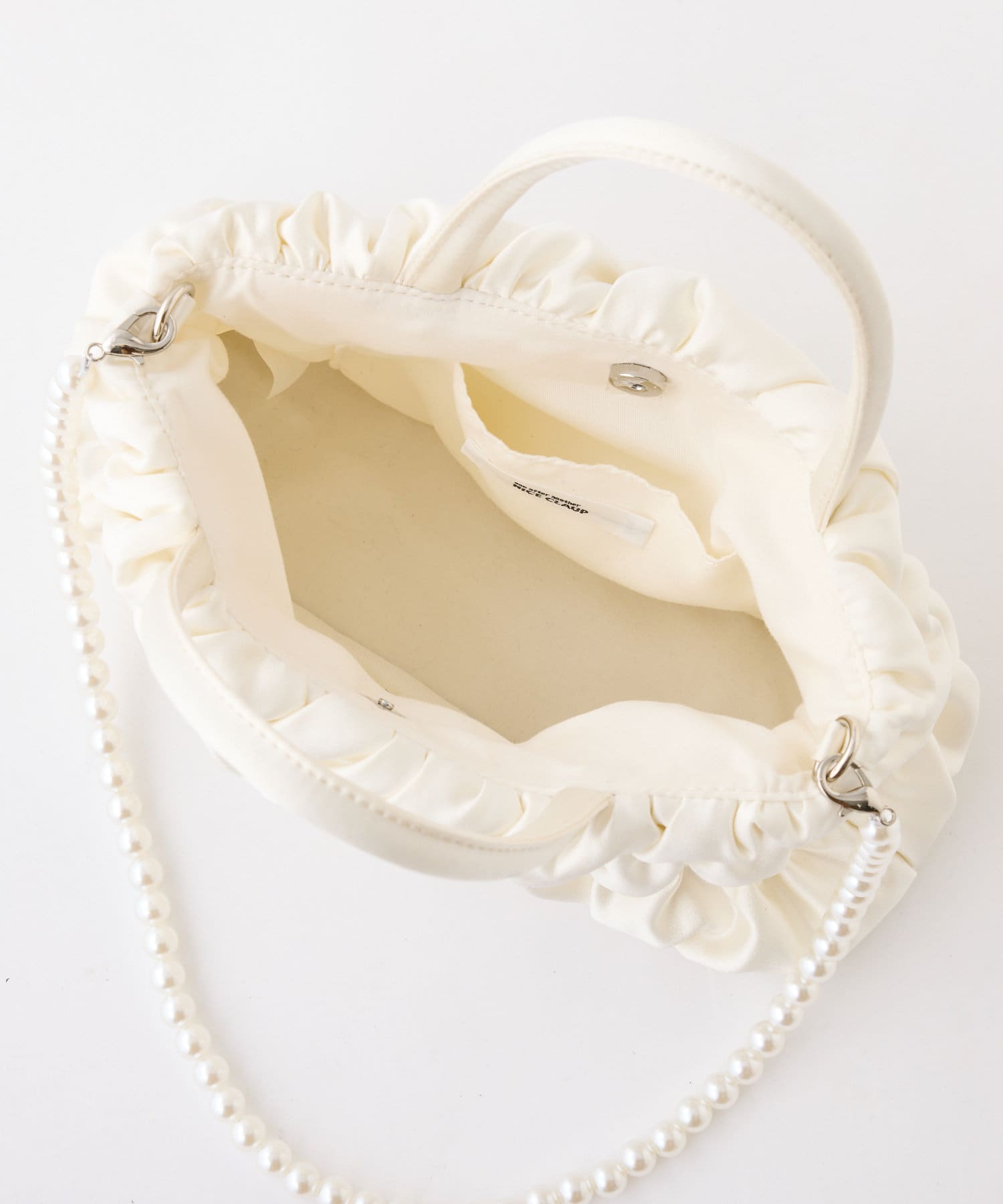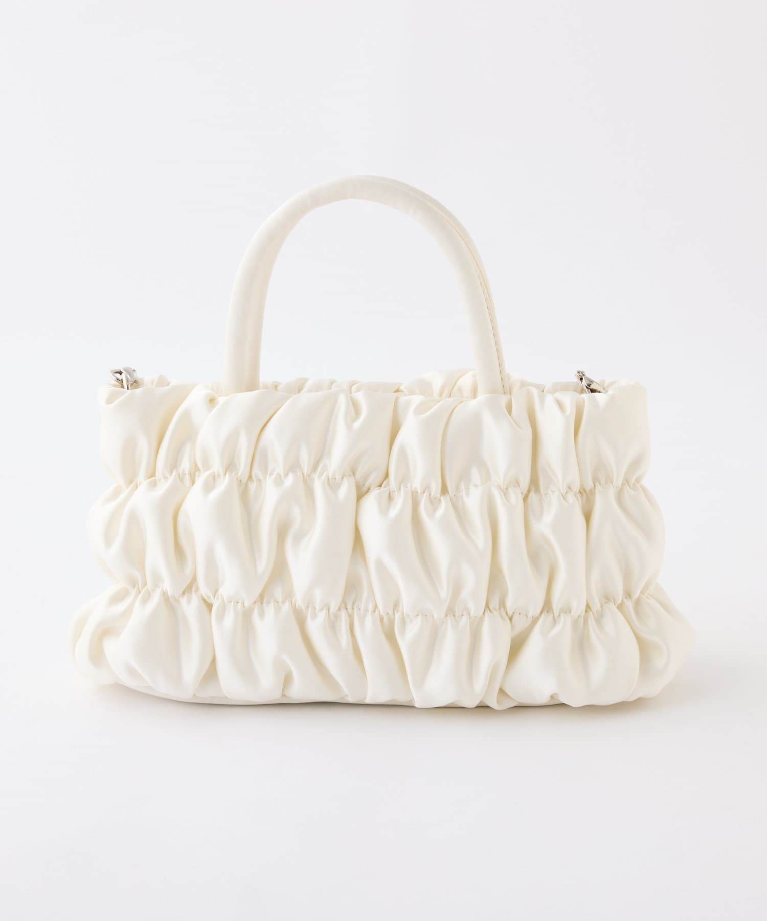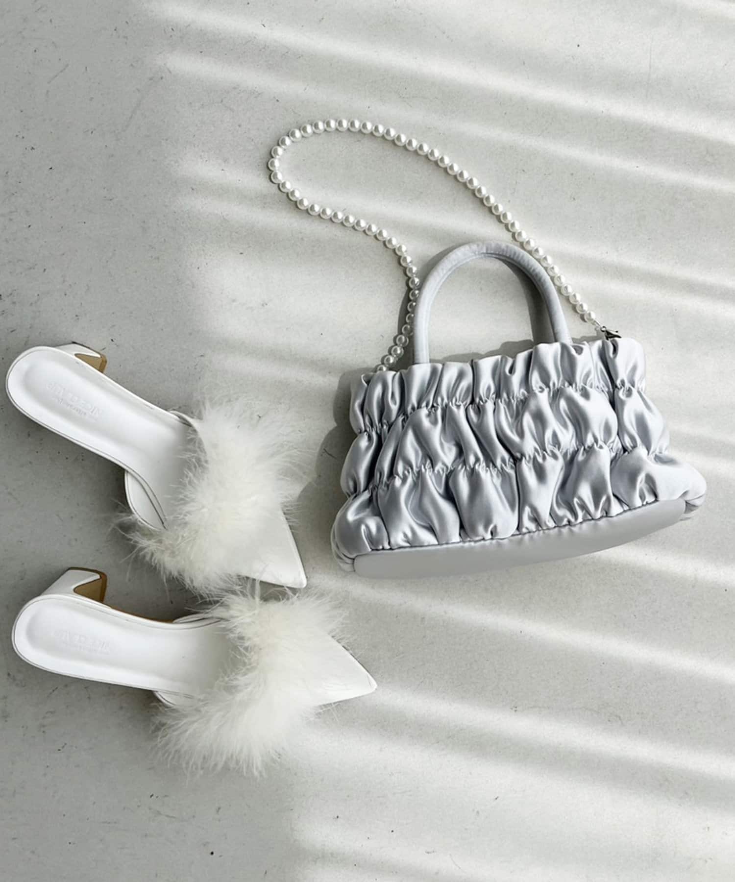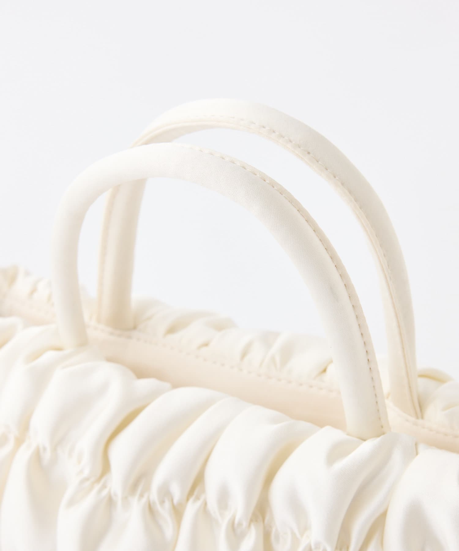柔らかなシャーリングデザインに、華やかなパールショルダーがアクセントのバッグ